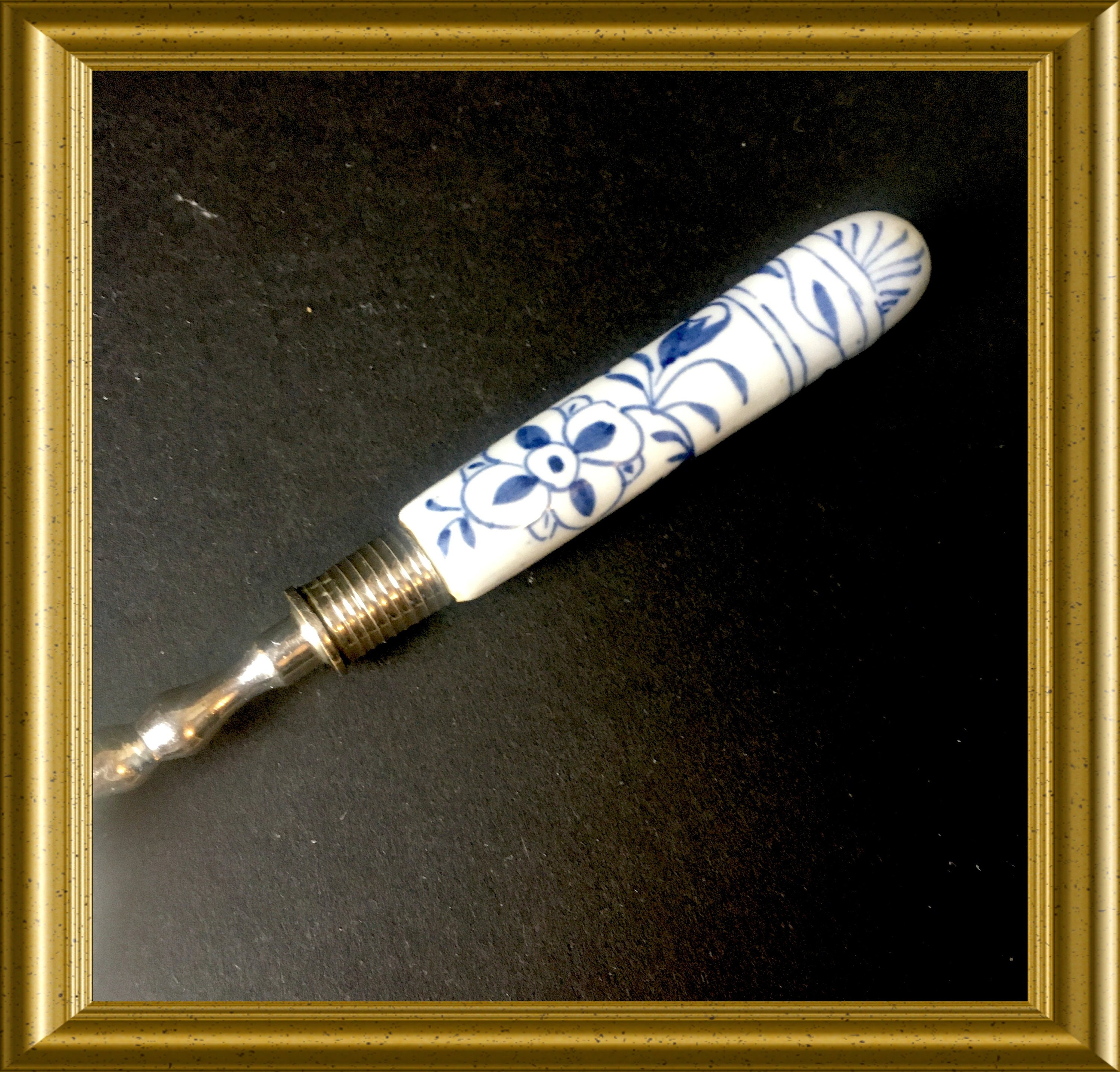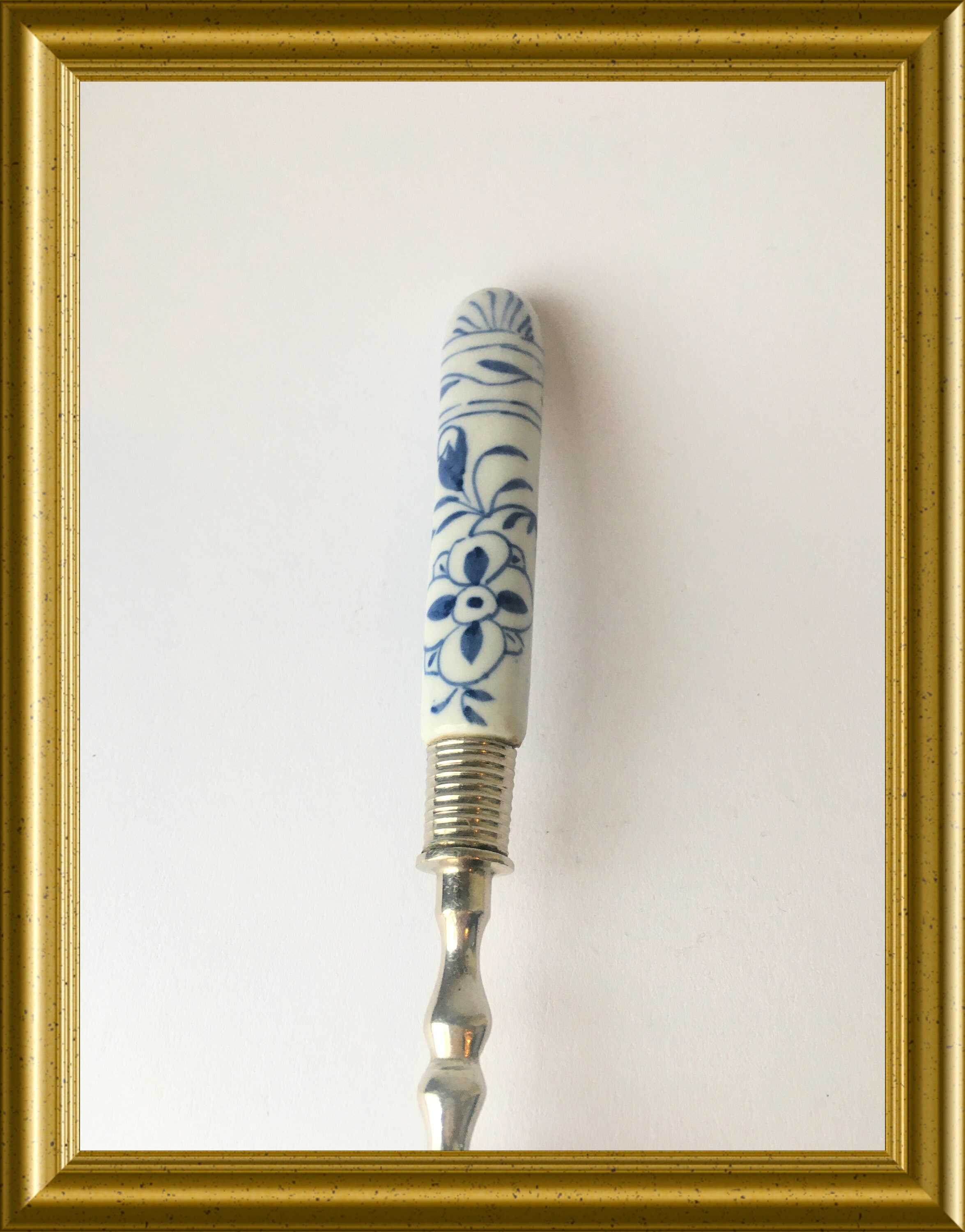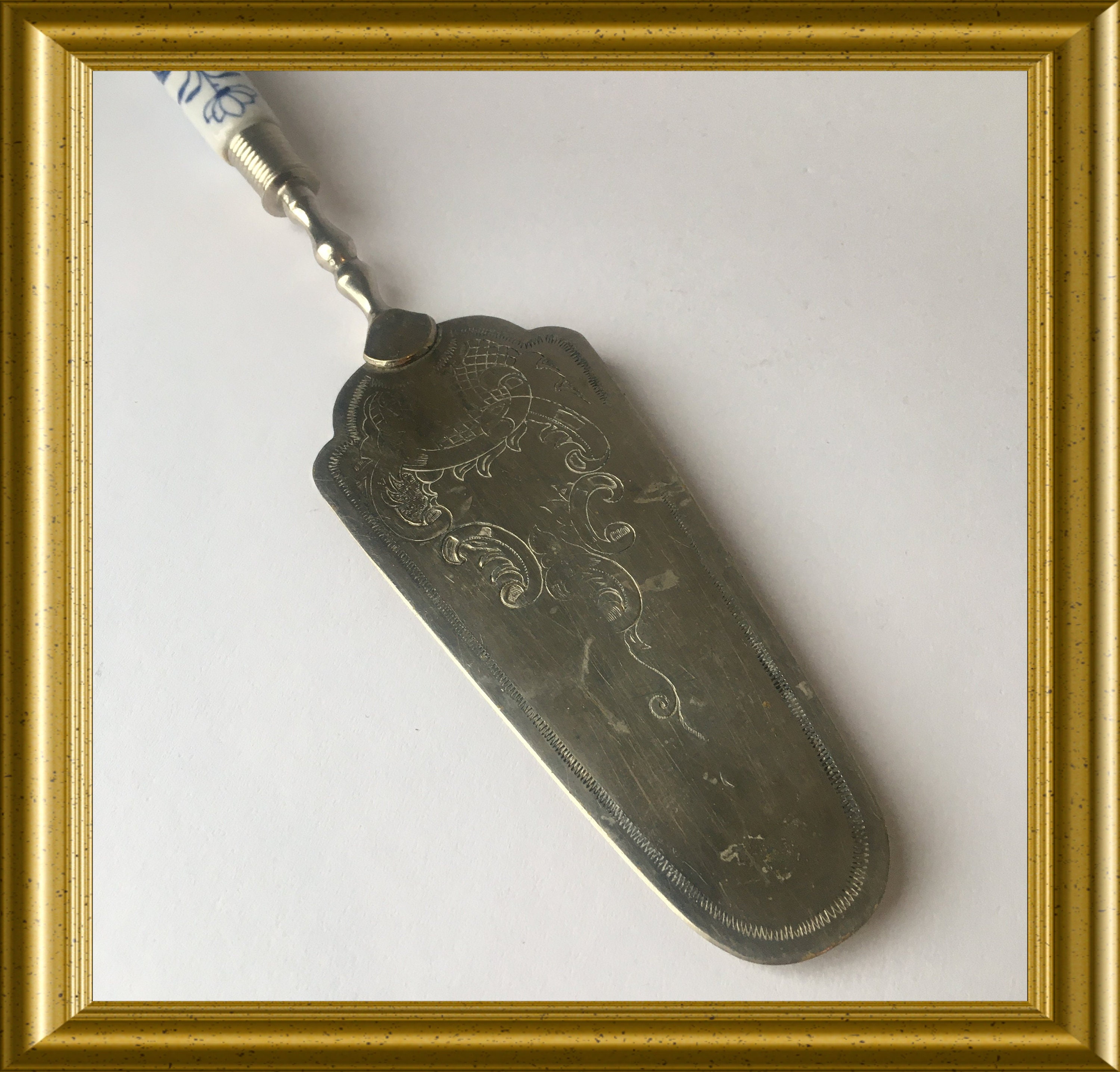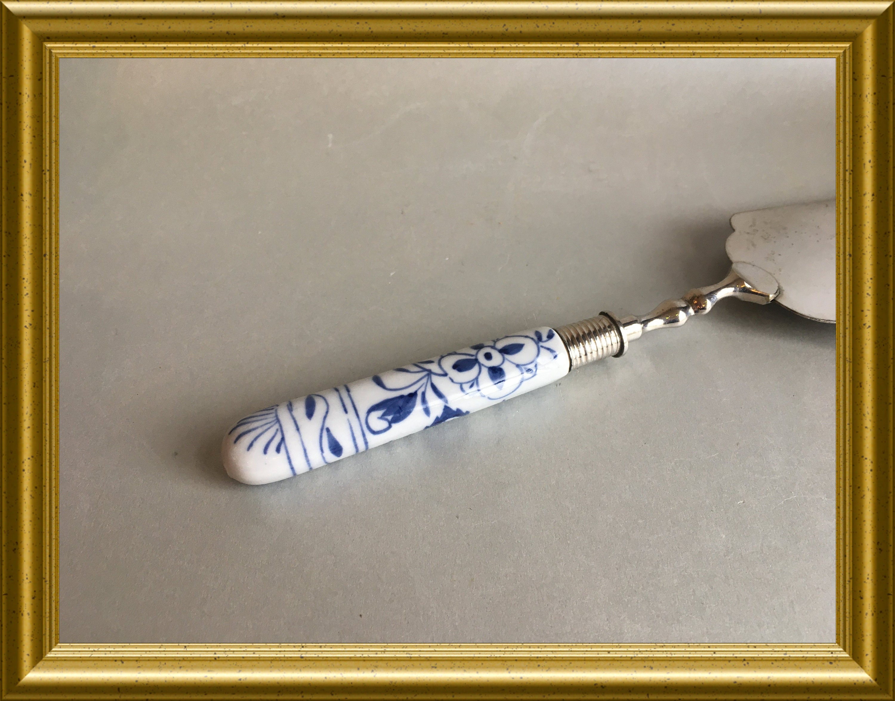 Vintage cake server: blue and white porcelain.