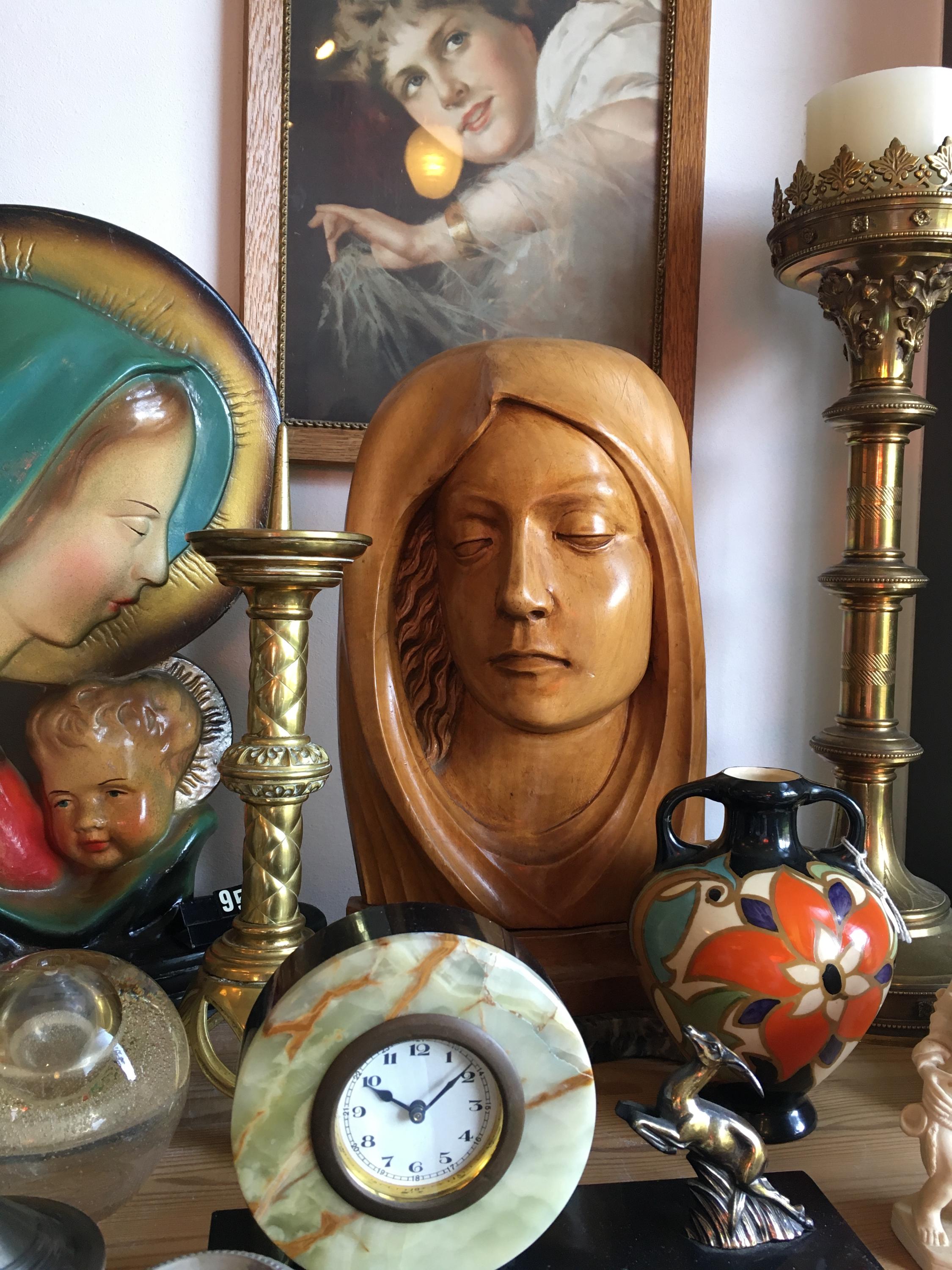Art deco woodcarving: bust, madonna head.