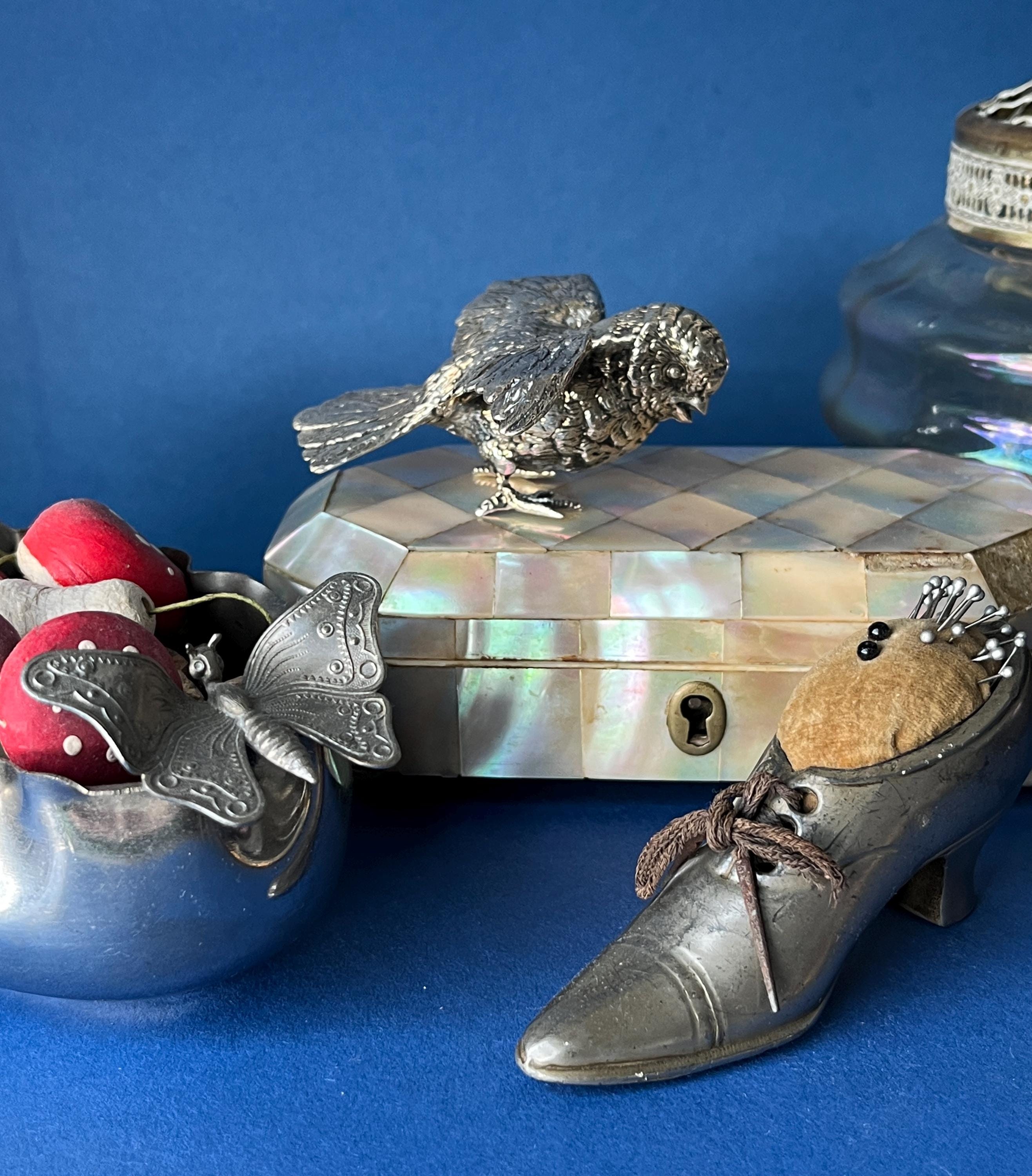 Silver bird figurine.