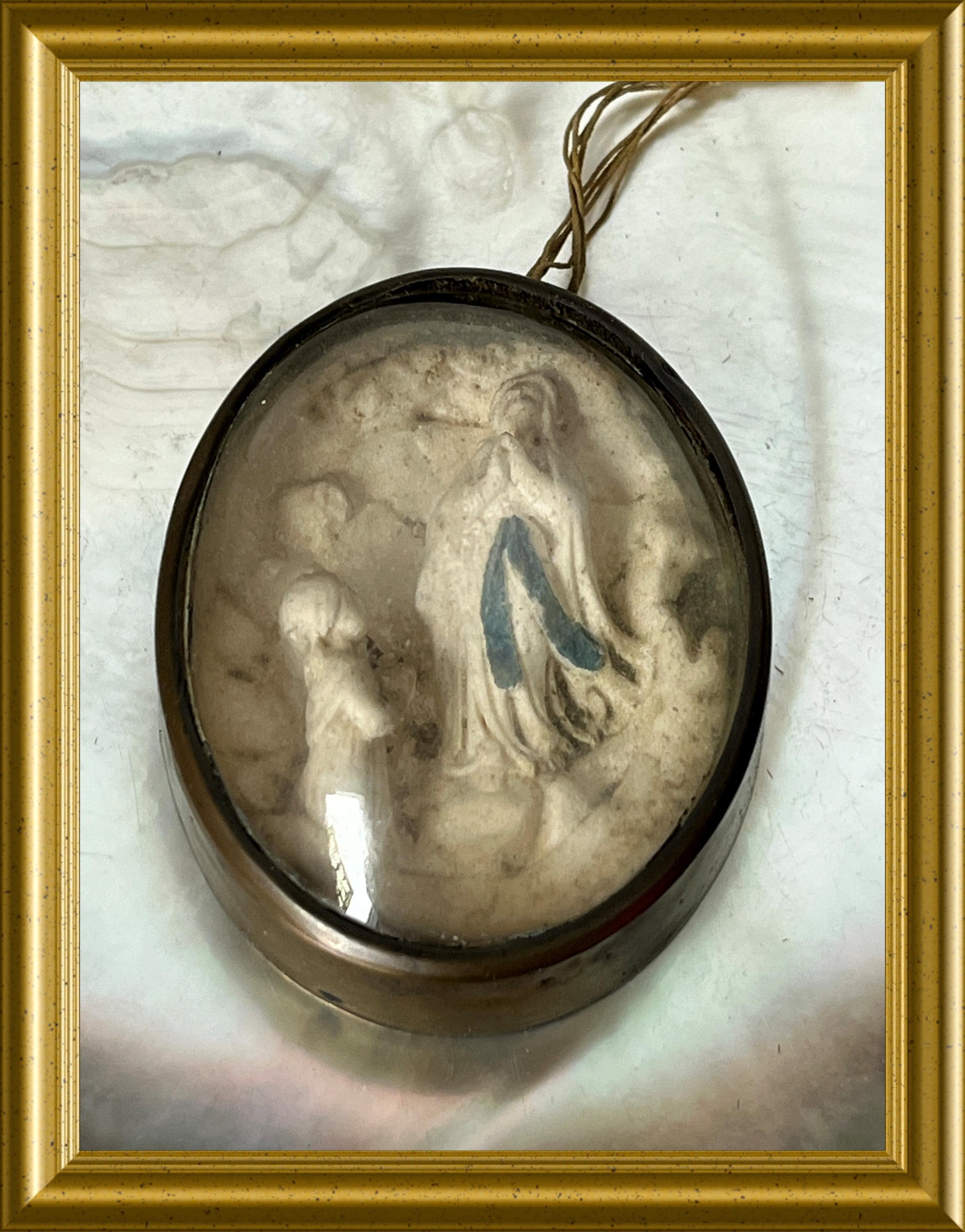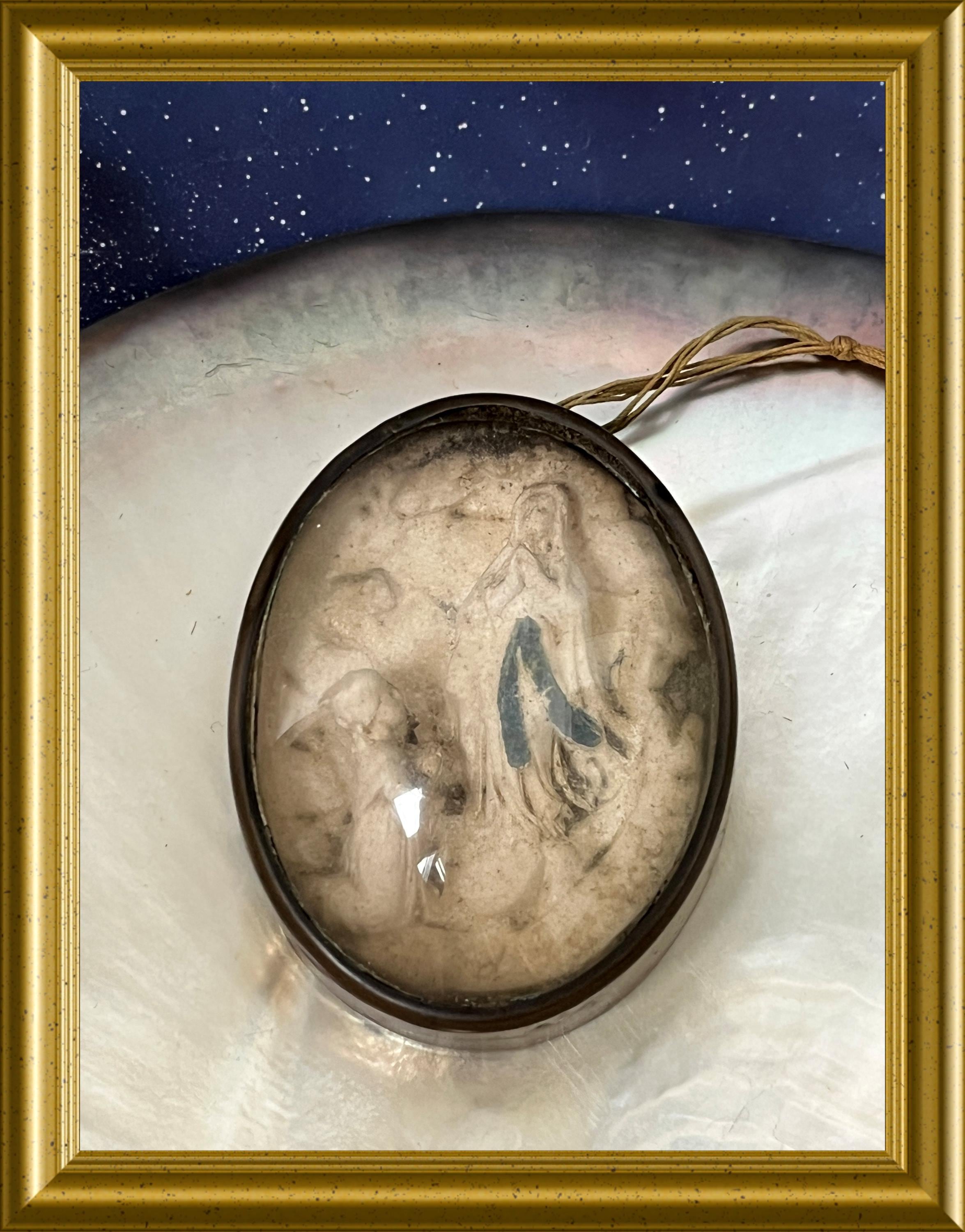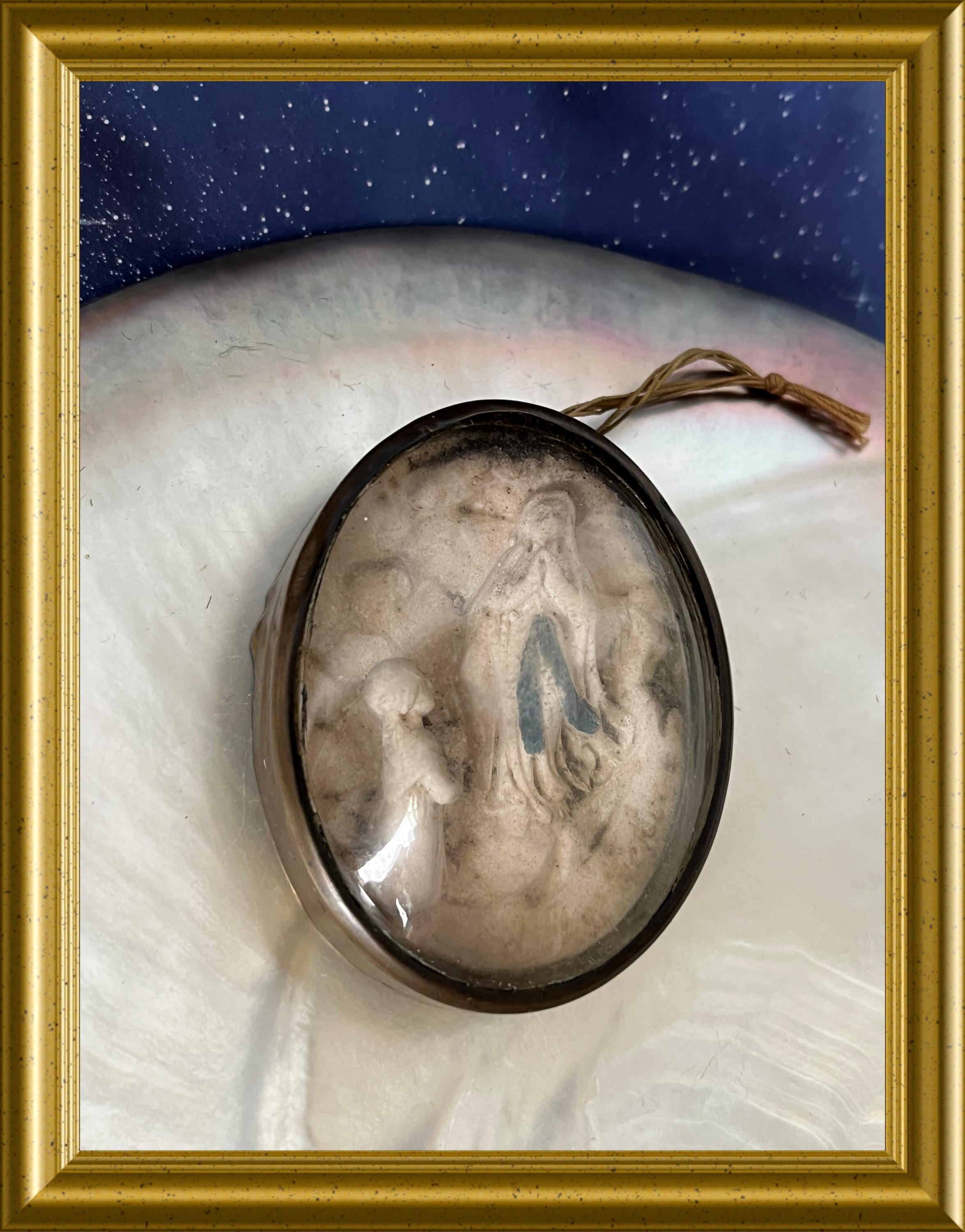 Antique frame with domed glass: meerschaum, our lady of Lourdes.