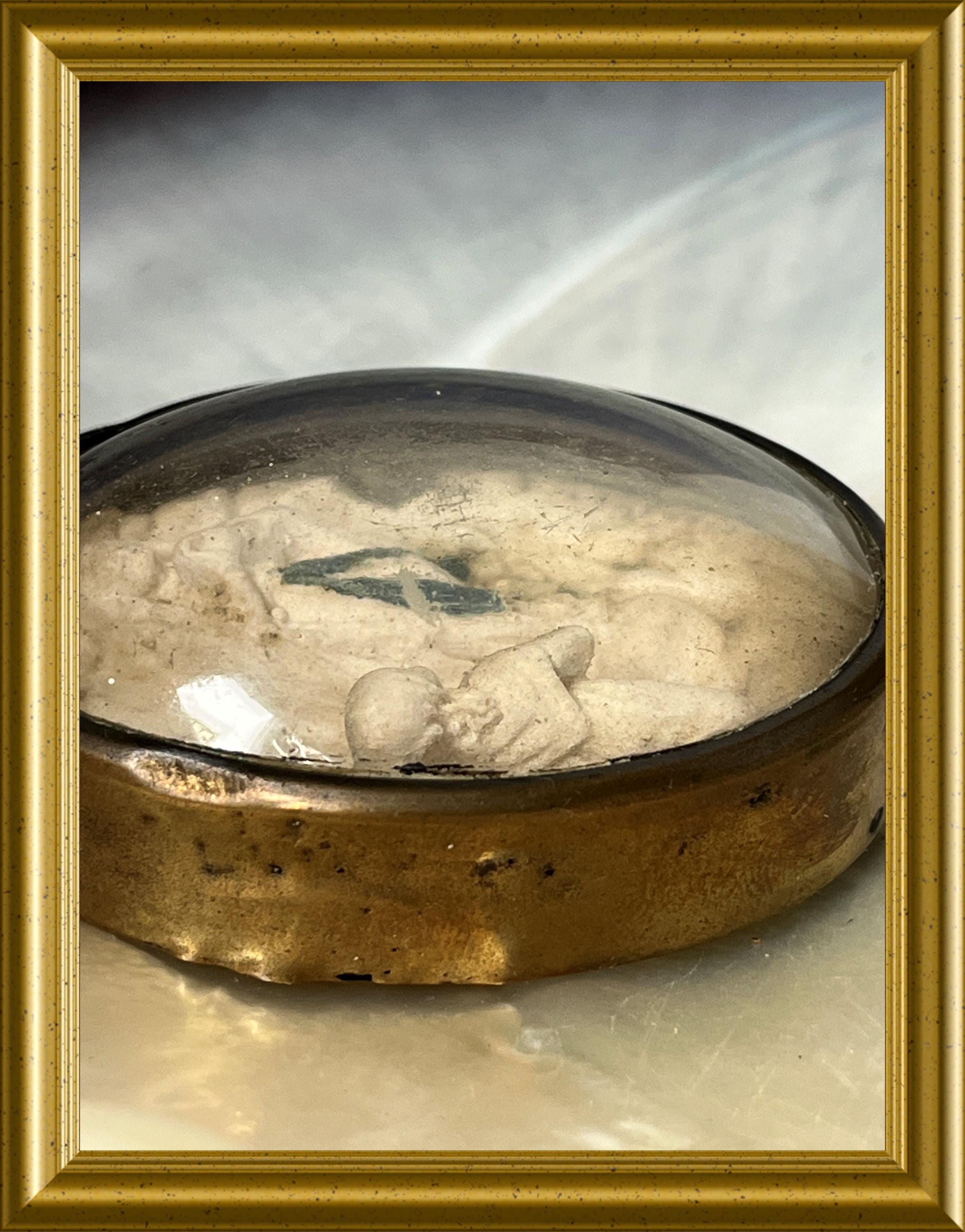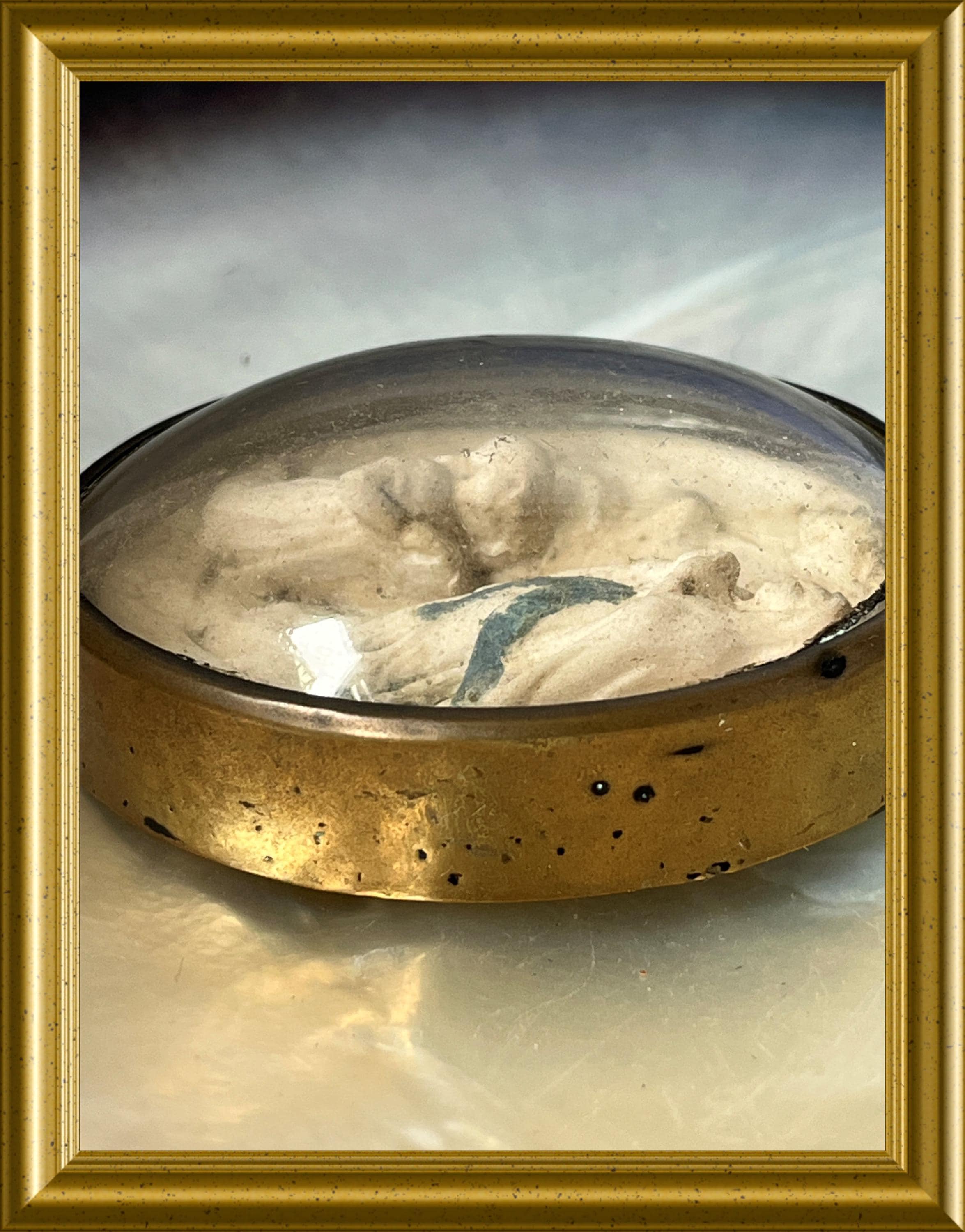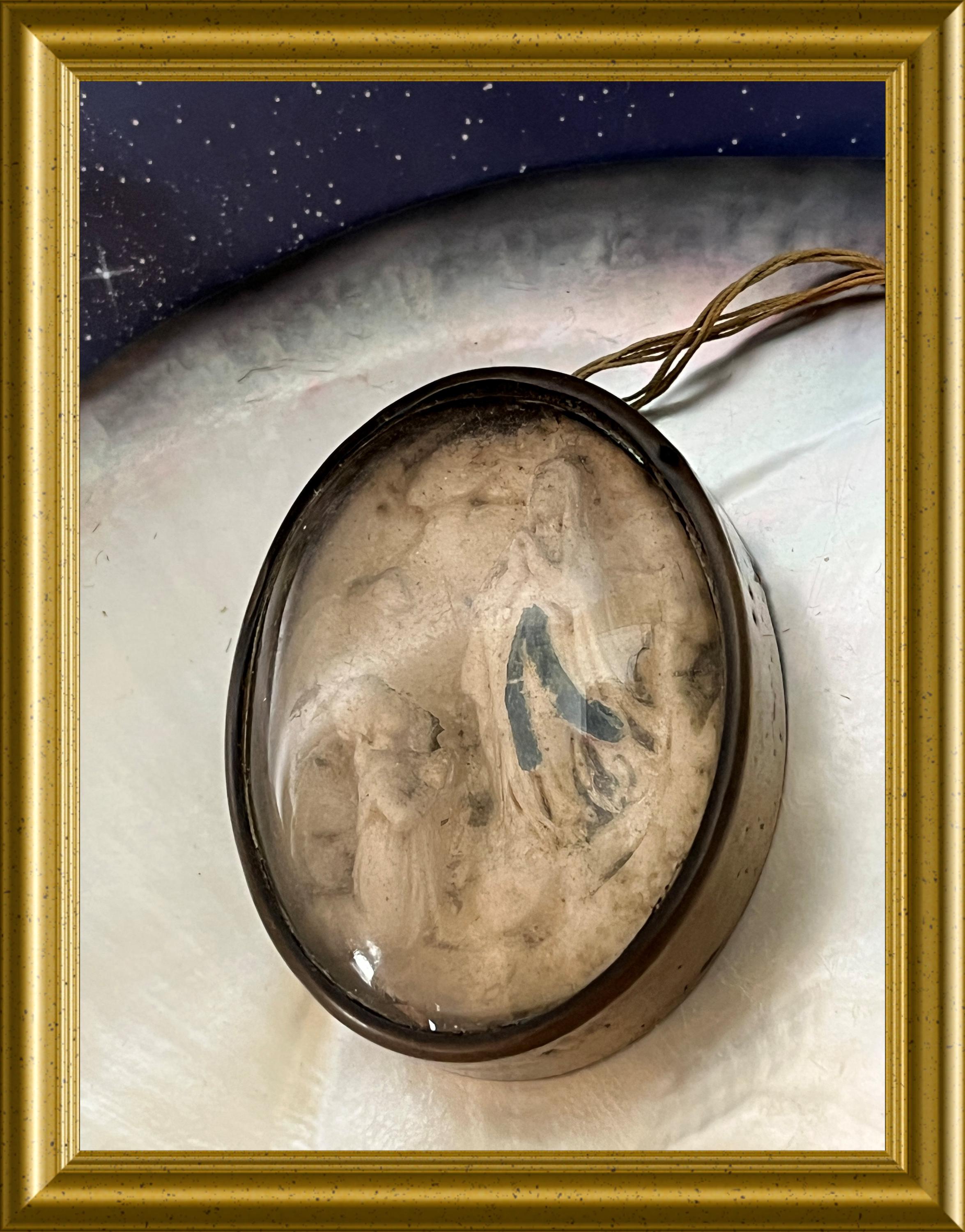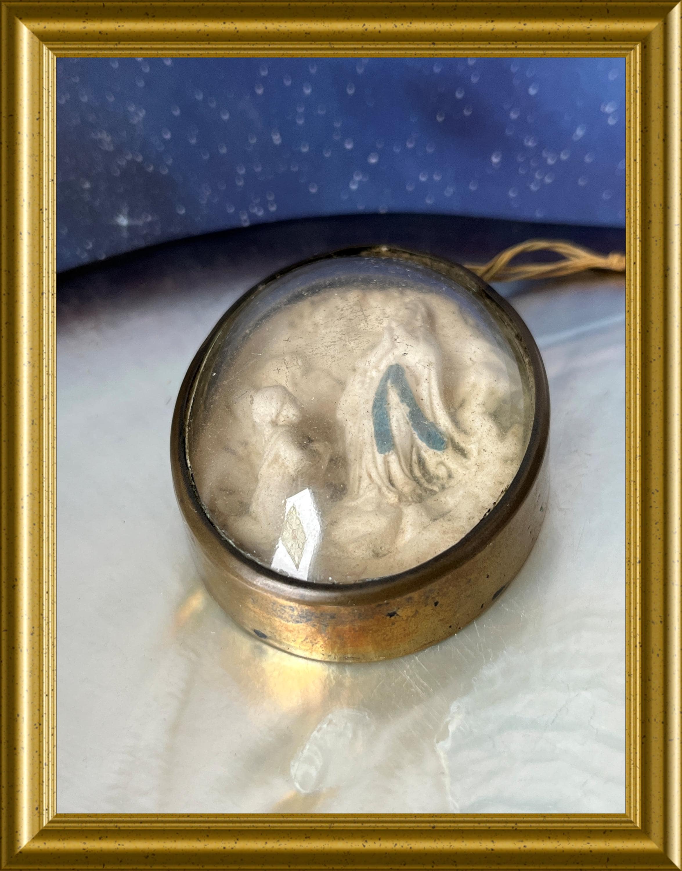 Antique frame with domed glass: meerschaum, our lady of Lourdes.
