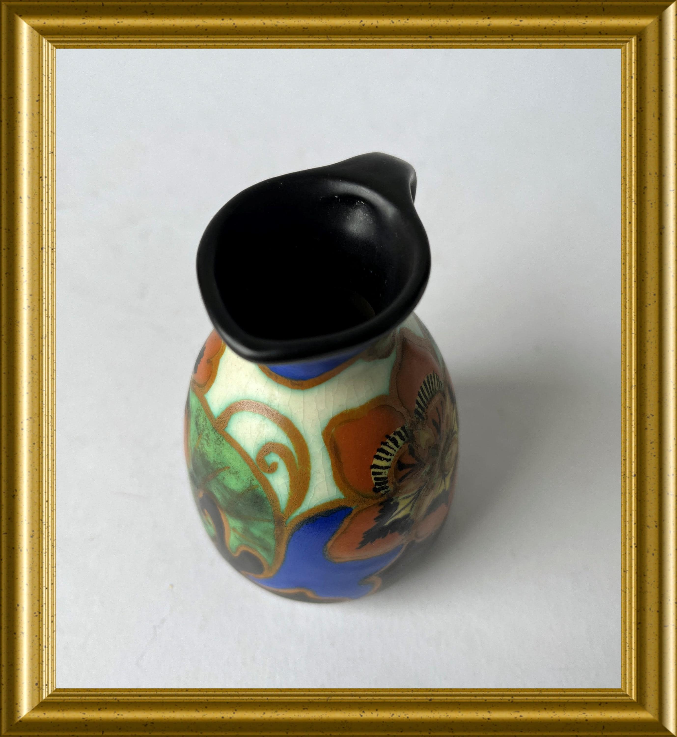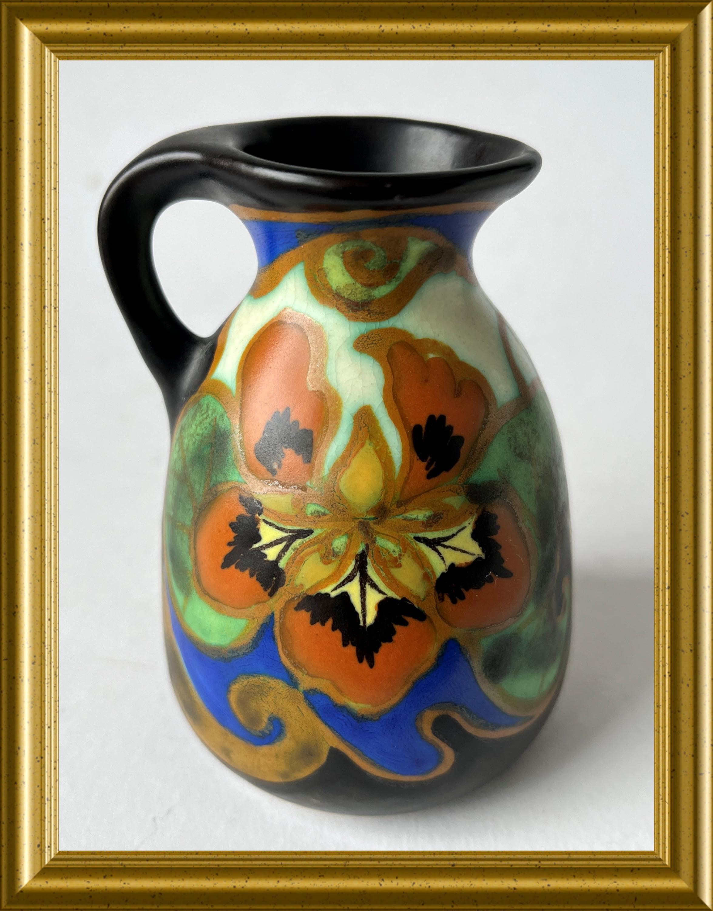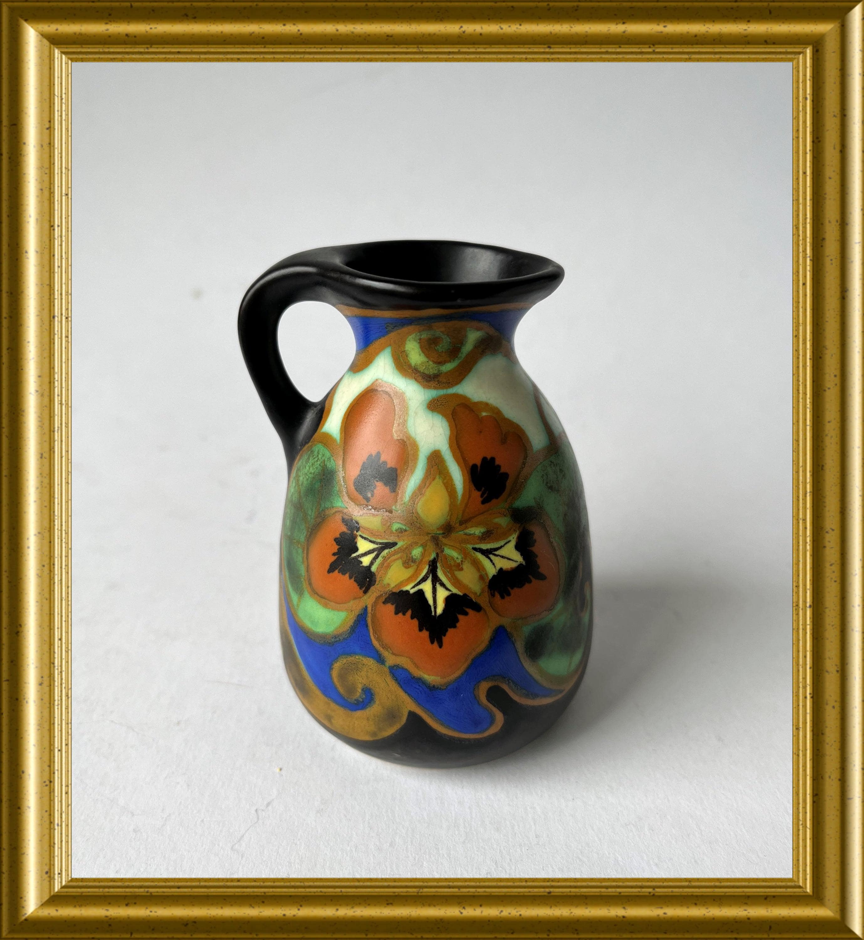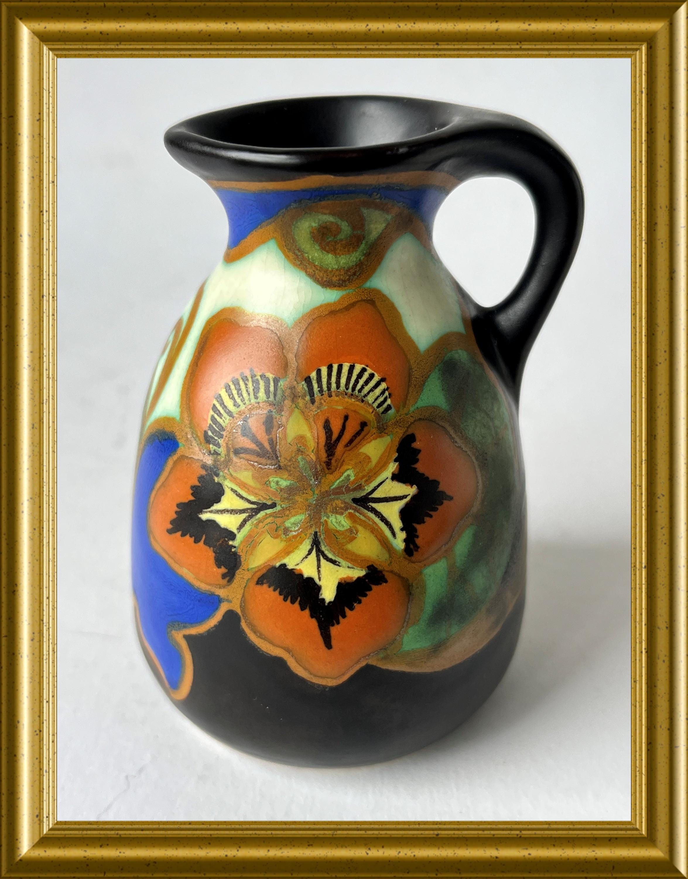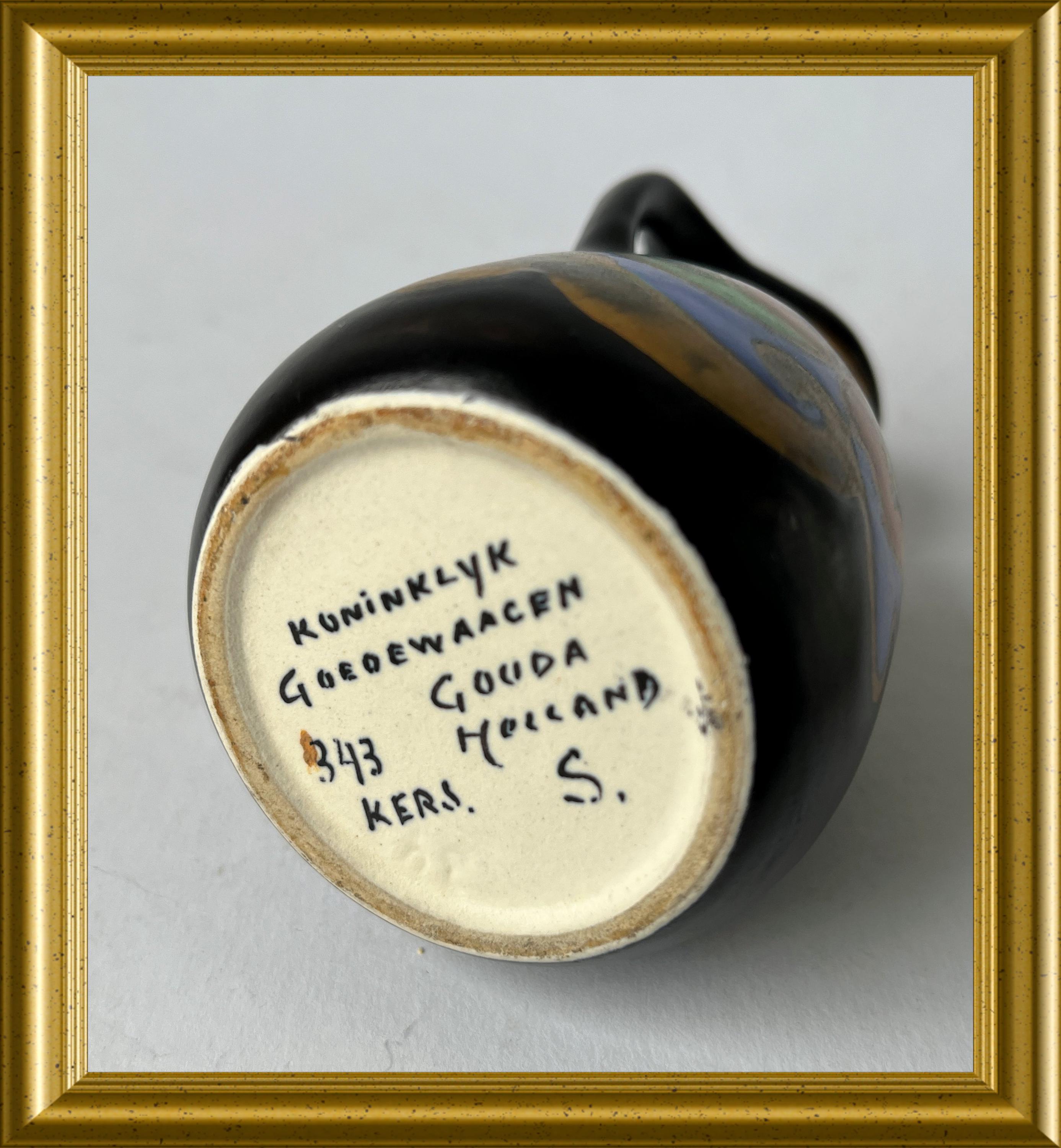 Antique small hand painted jug: Goedewaagen art pottery Gouda.
