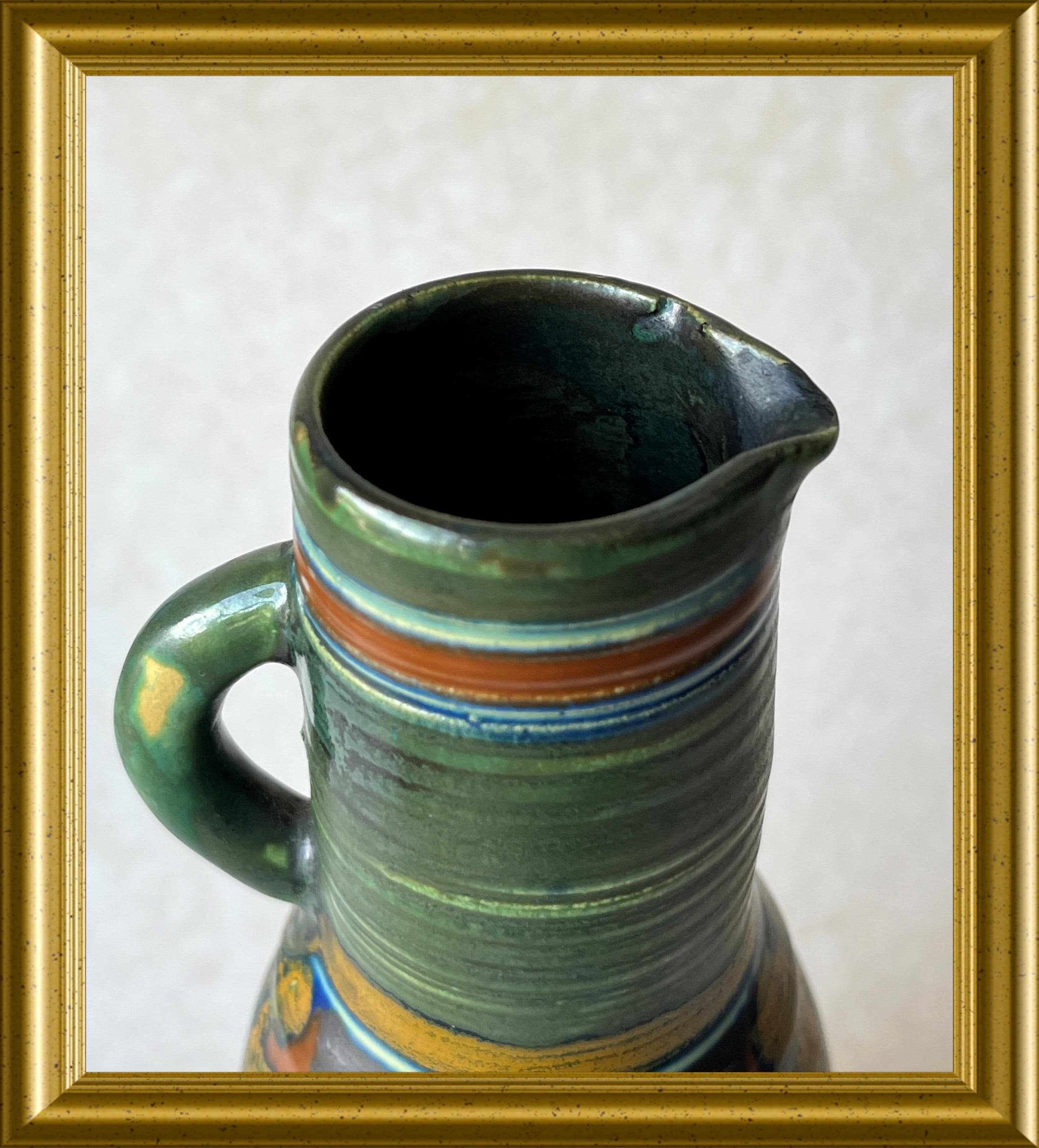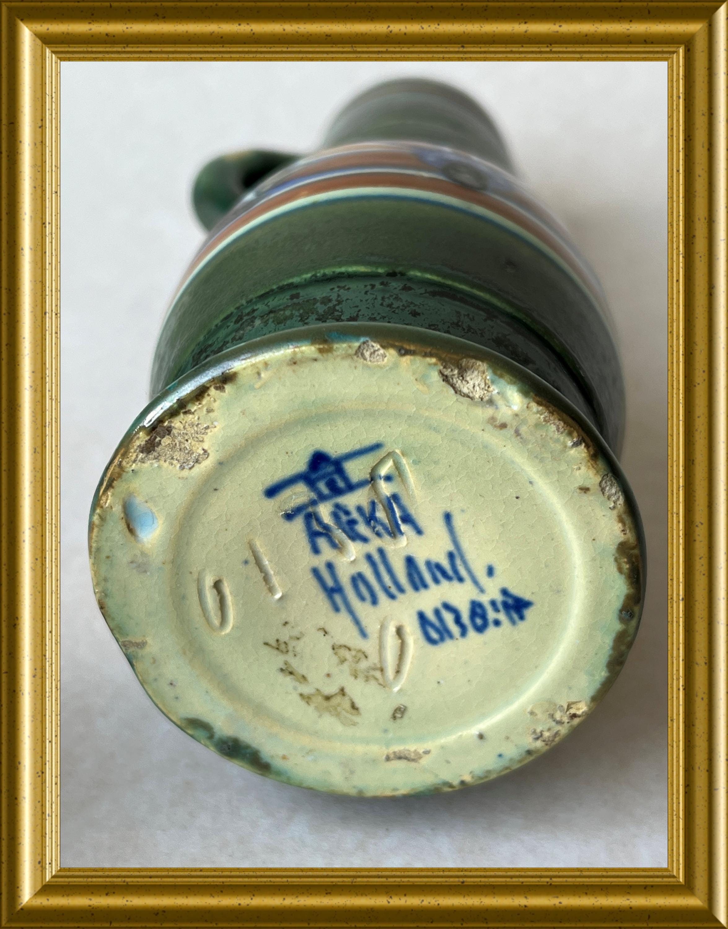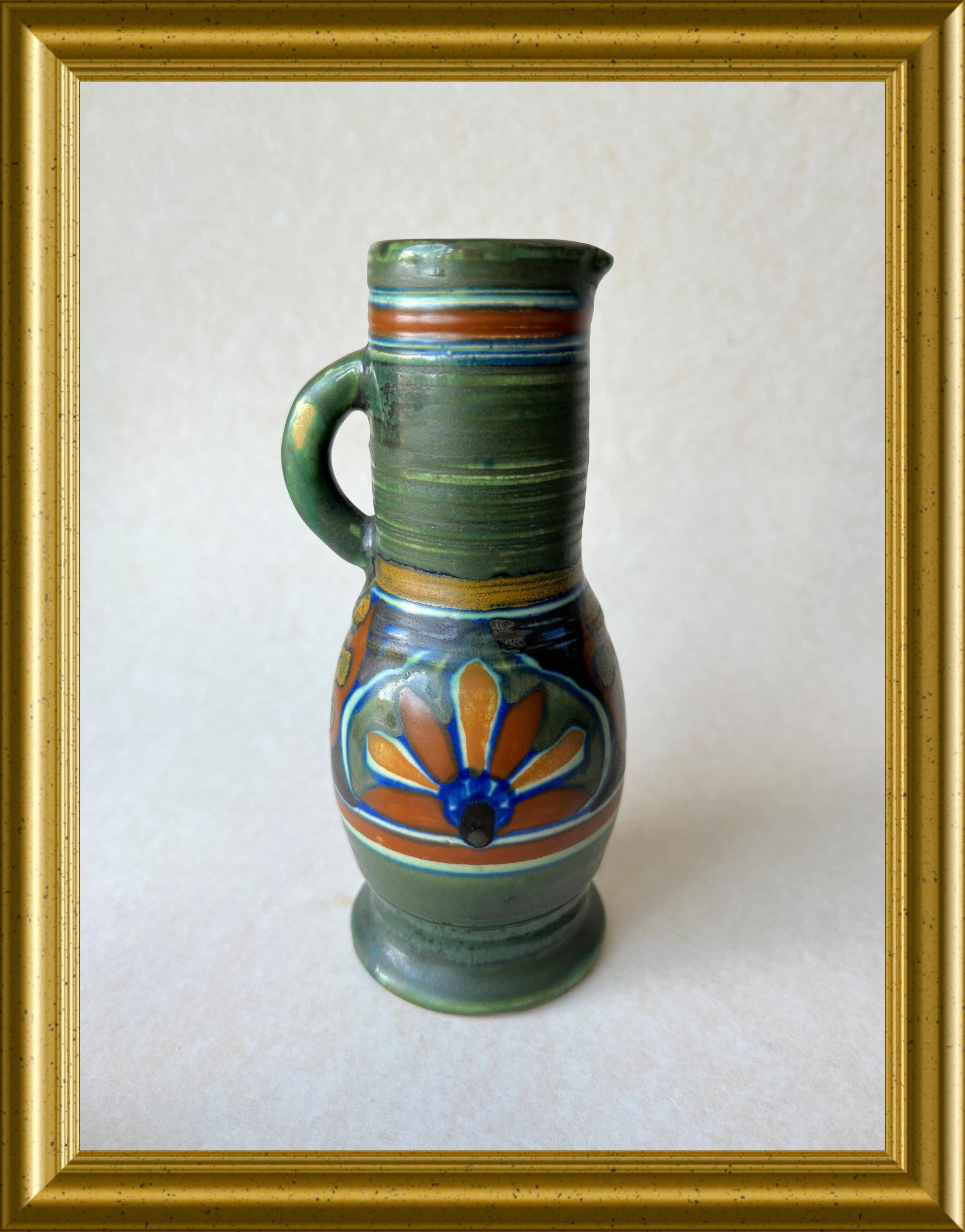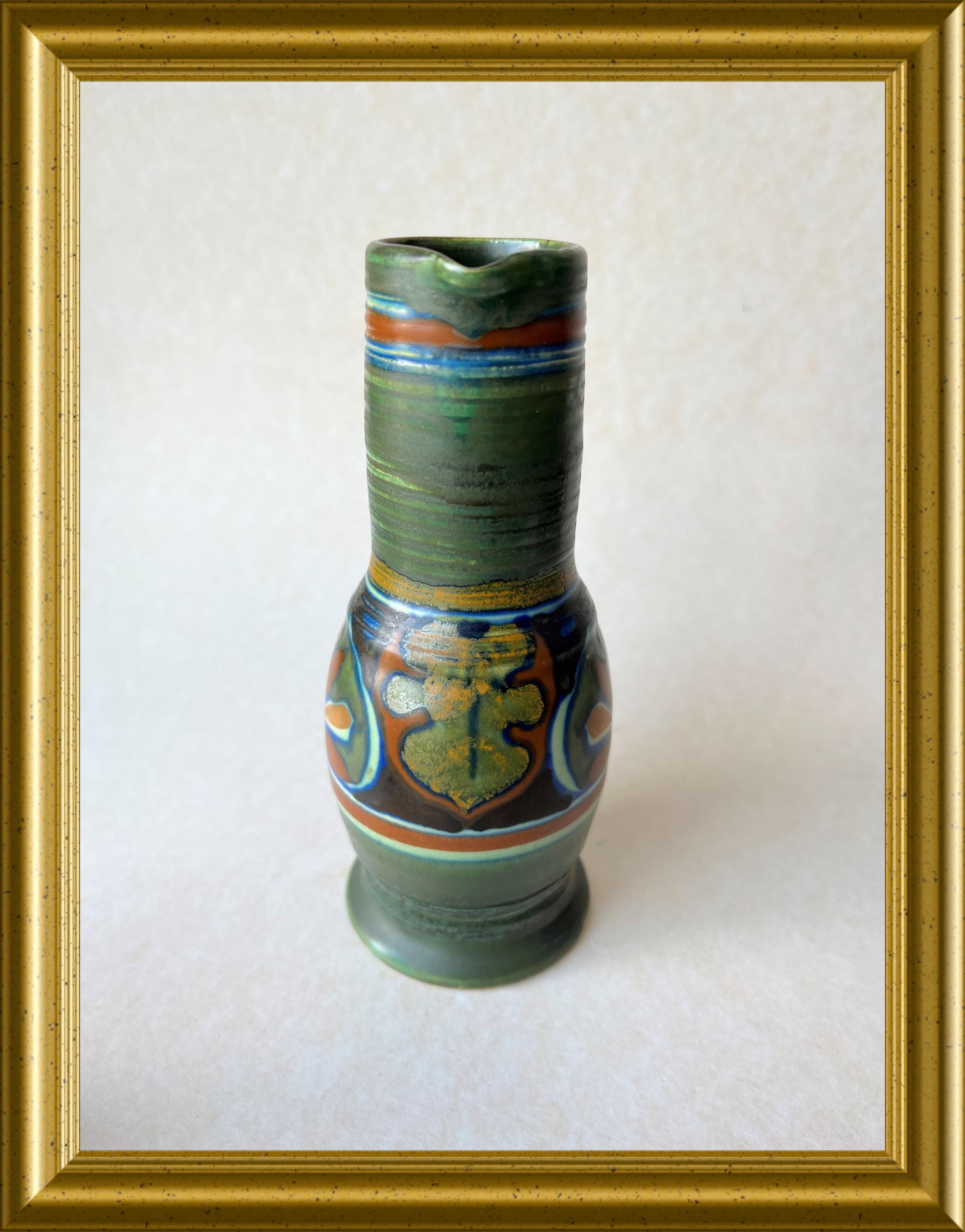 Beautiful vintage hand painted art pottery jug, made bij pottery Zuidholland in Gouda.