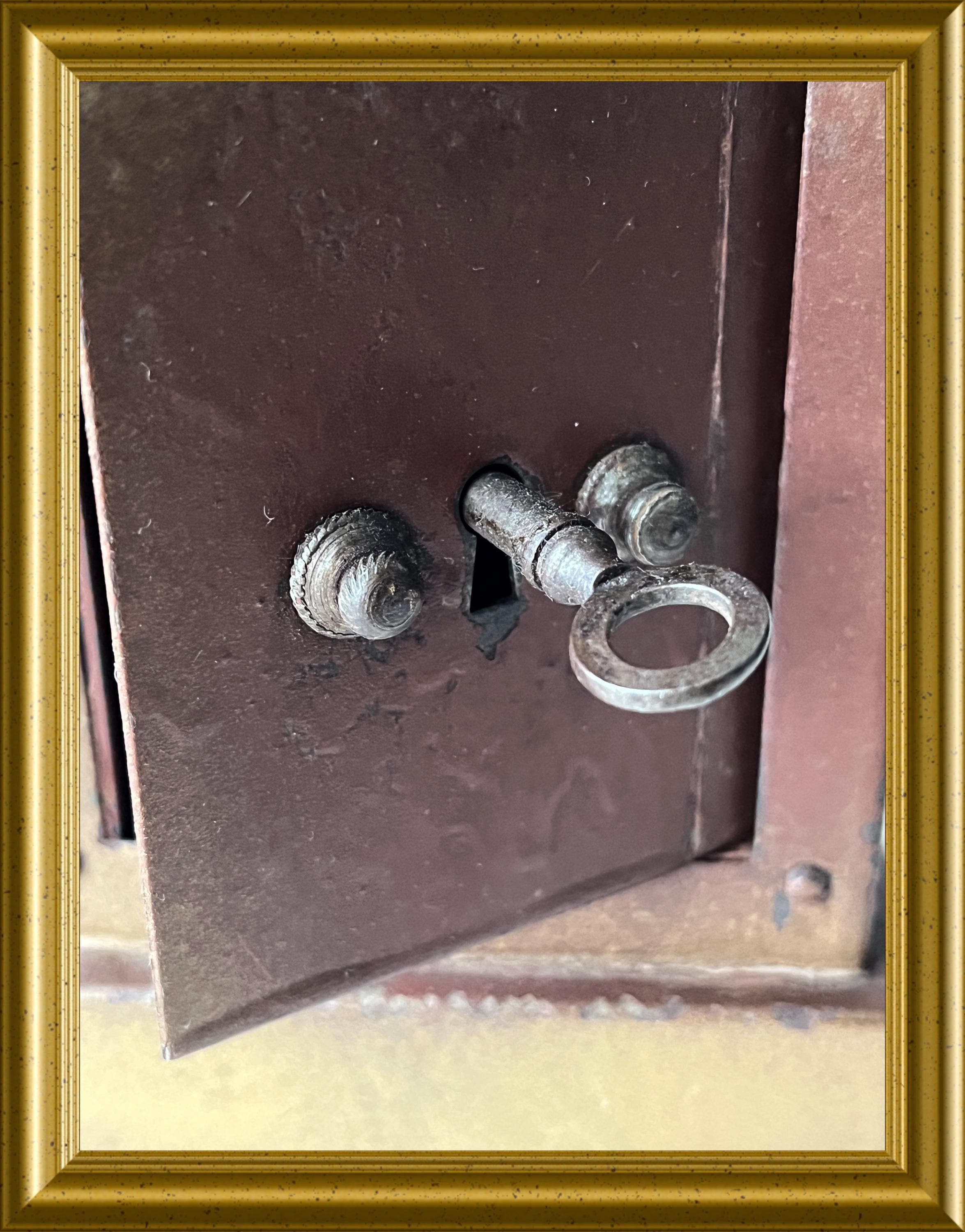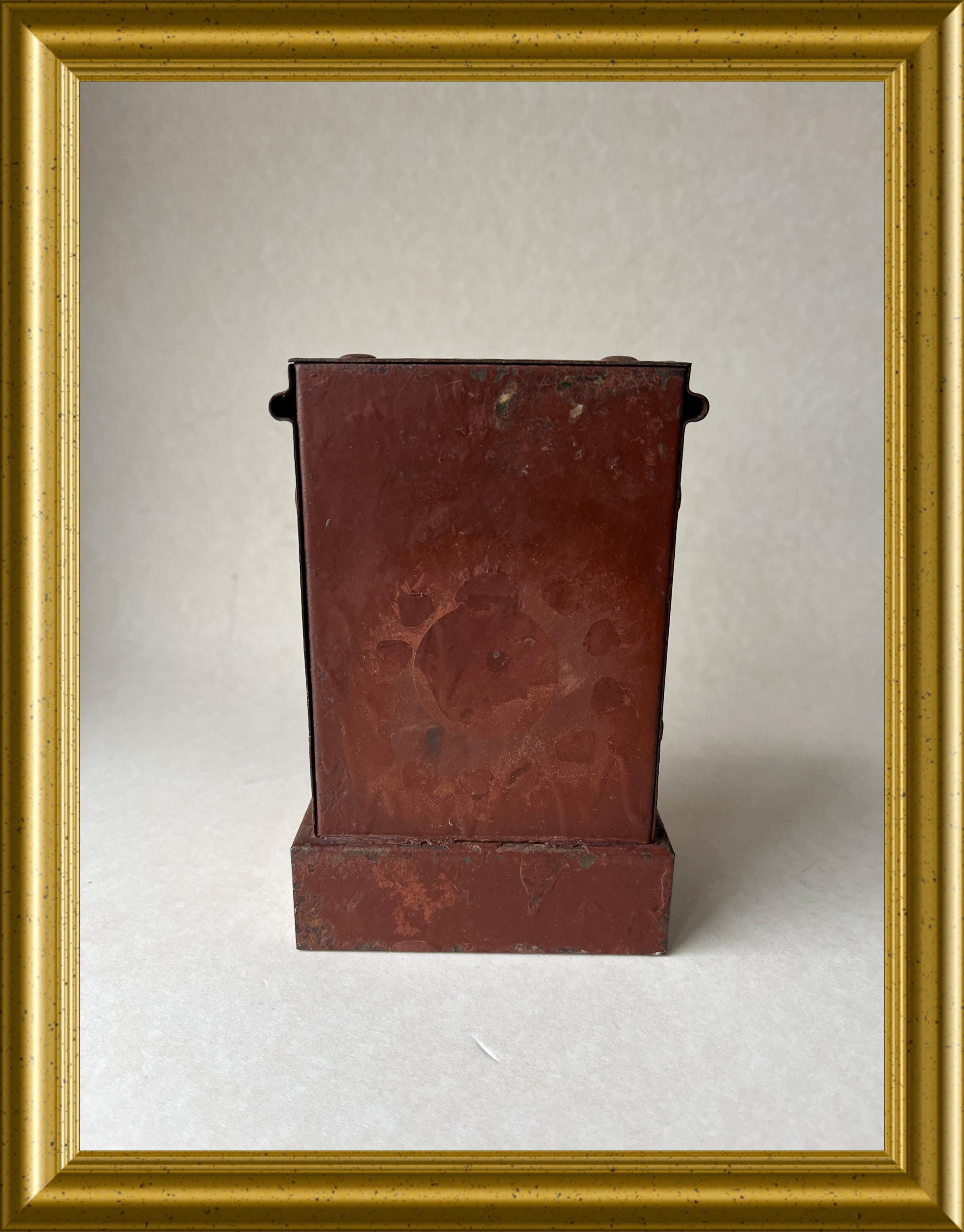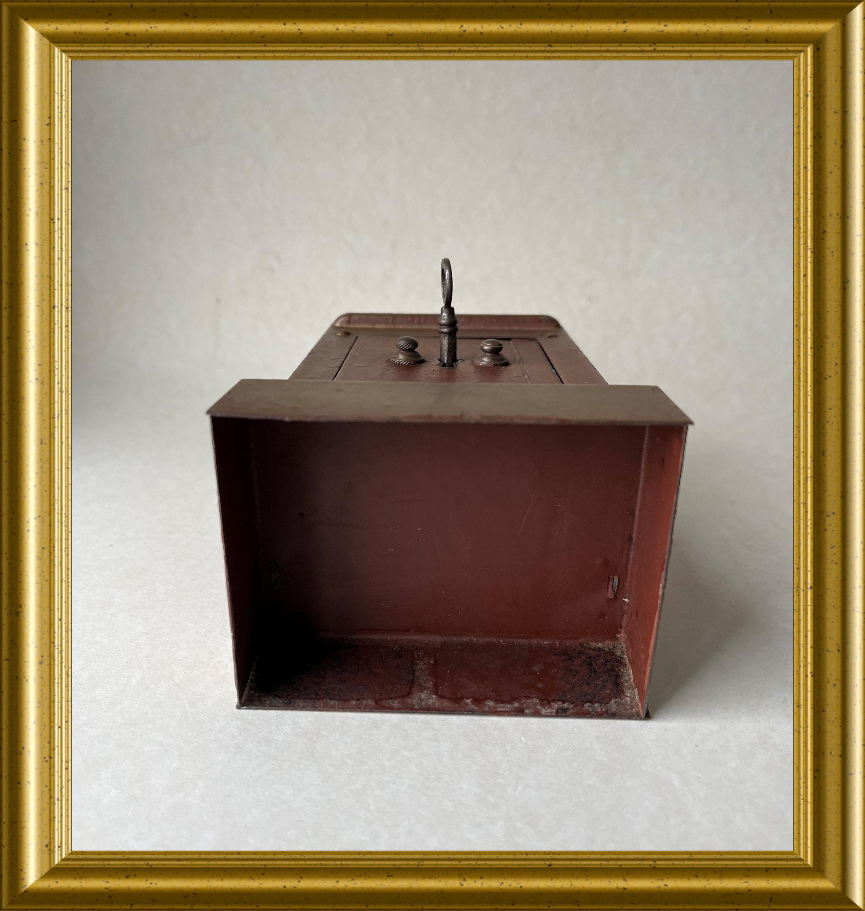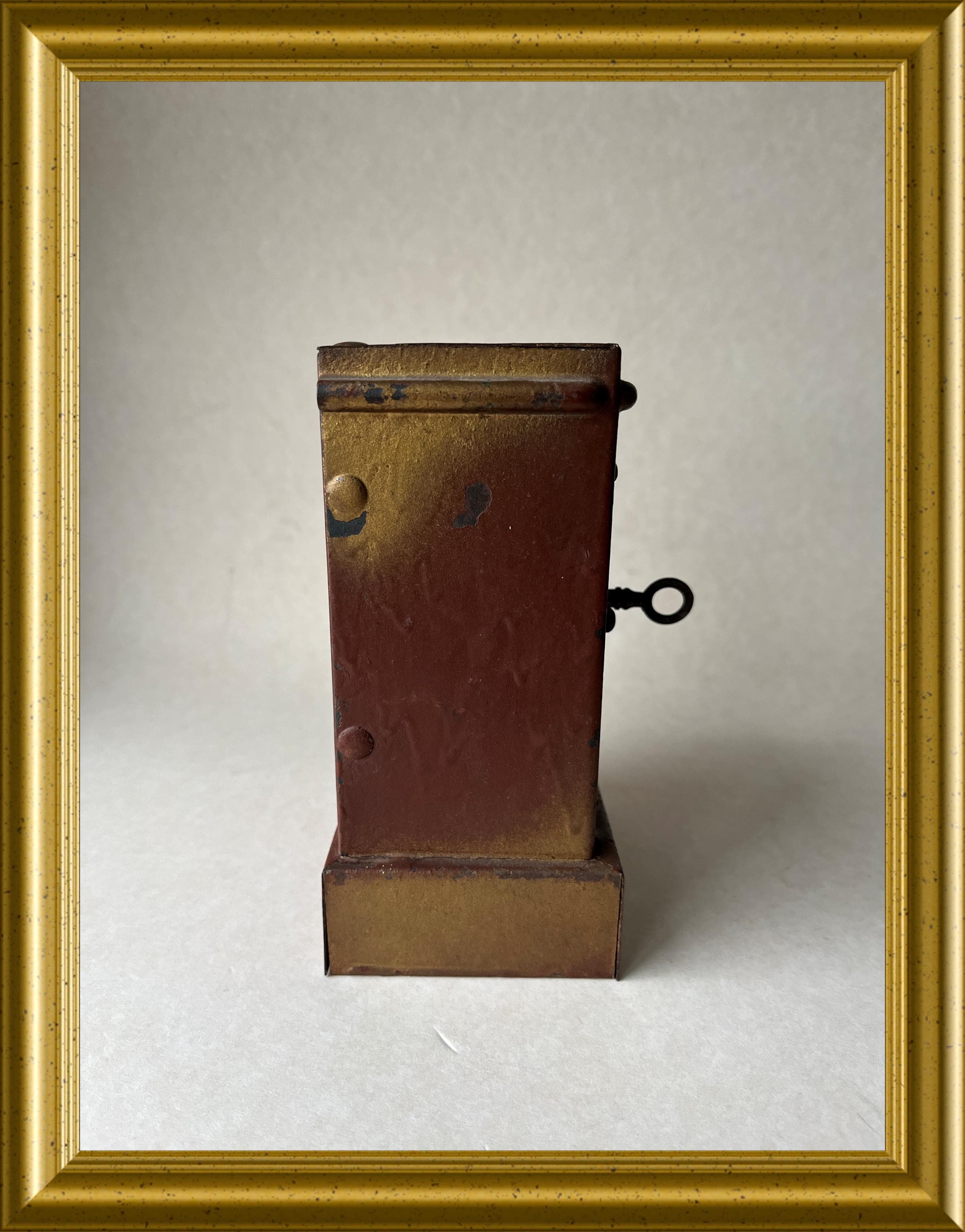 Vintage money box crafted in the shape of a miniature safe.