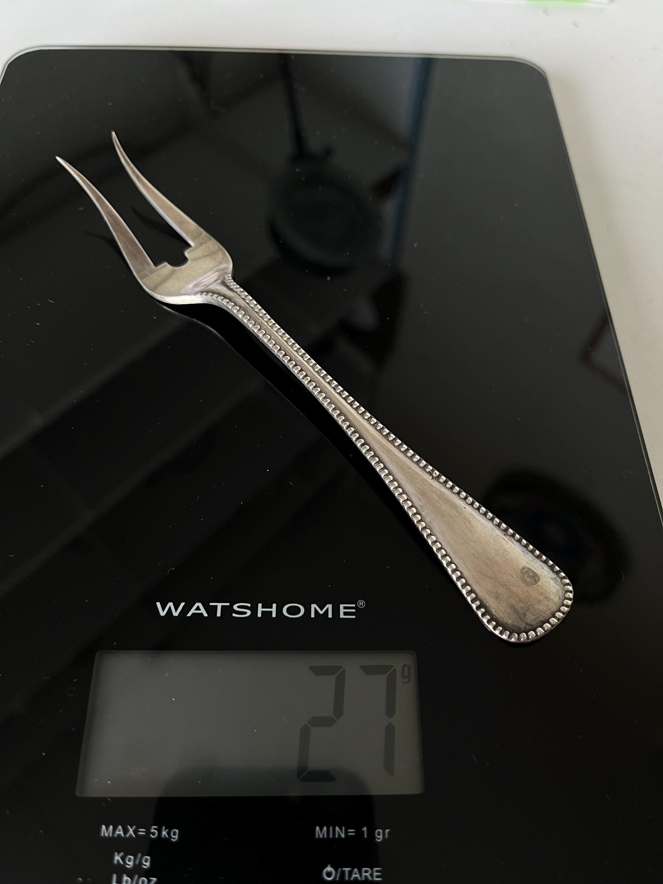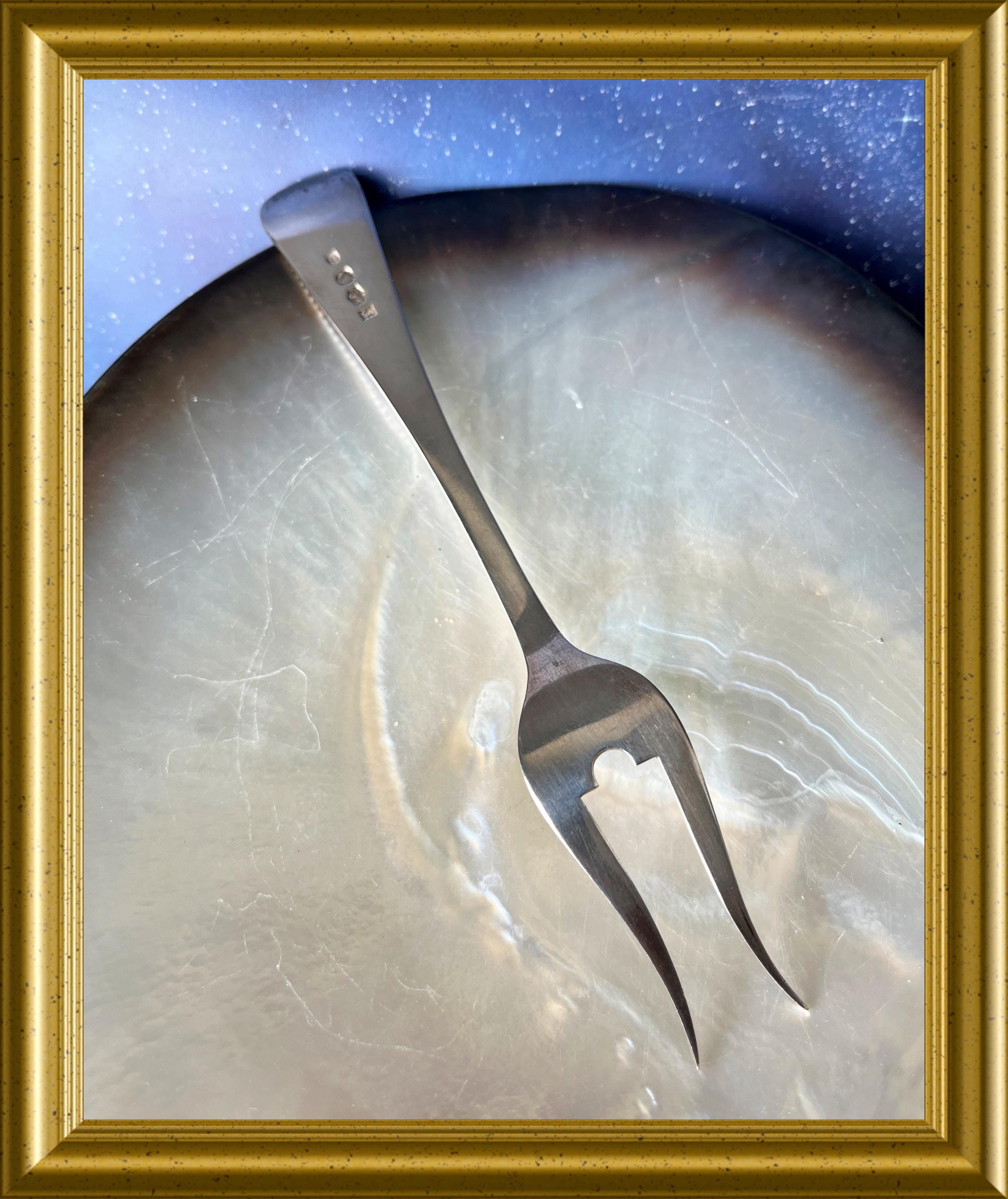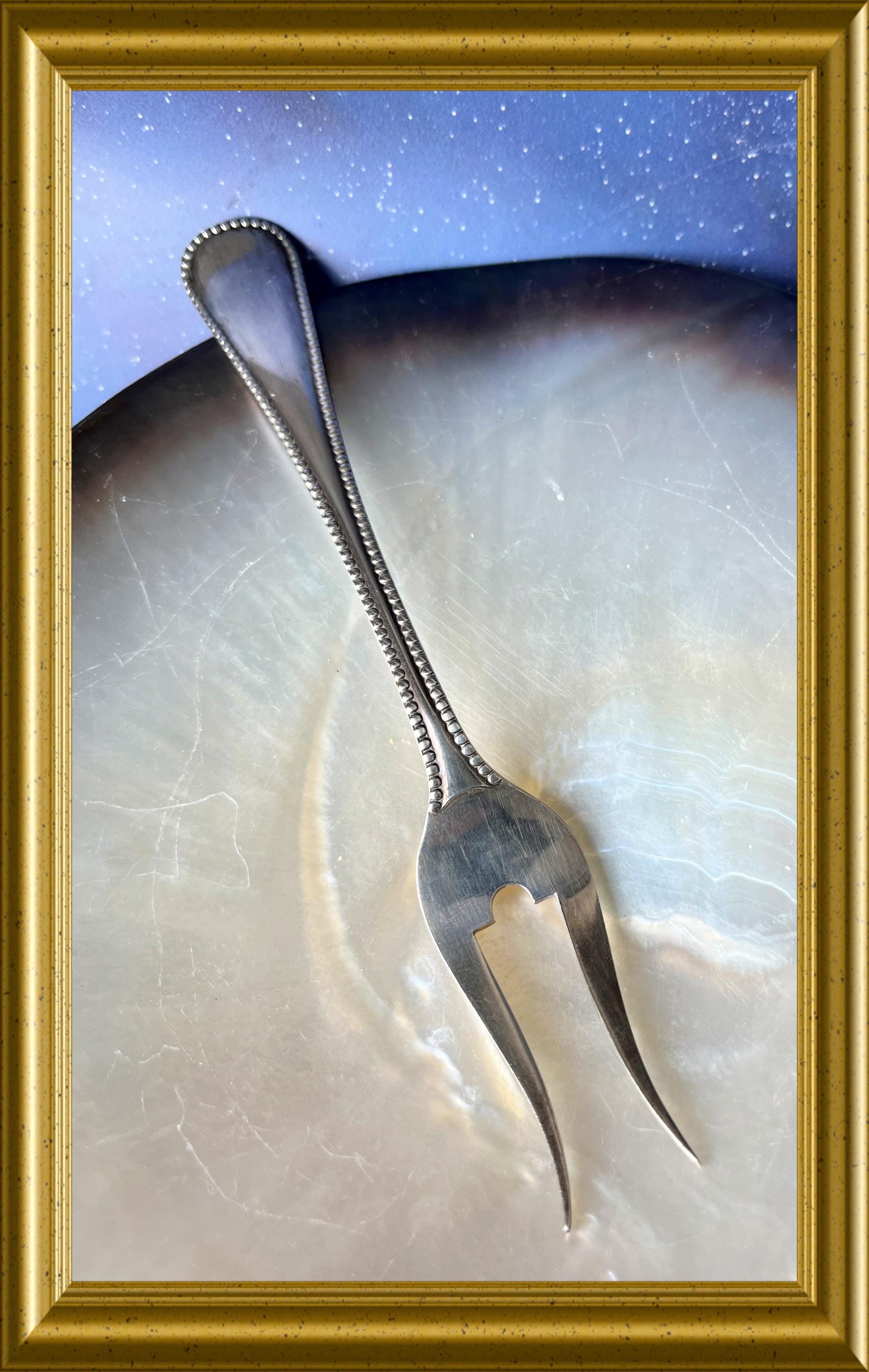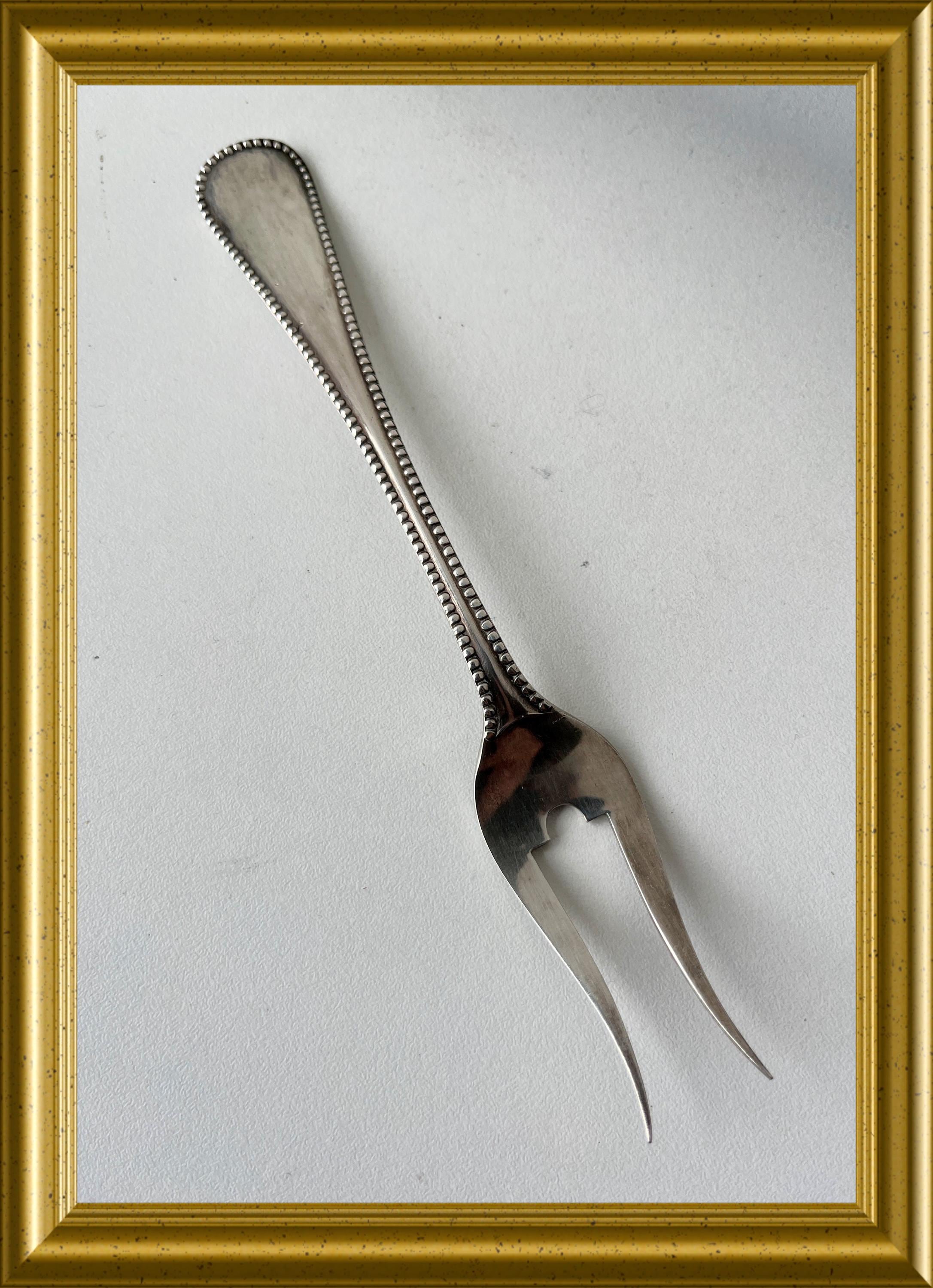 Vintage silver fork with pearl border, small meat fork, serving fork.