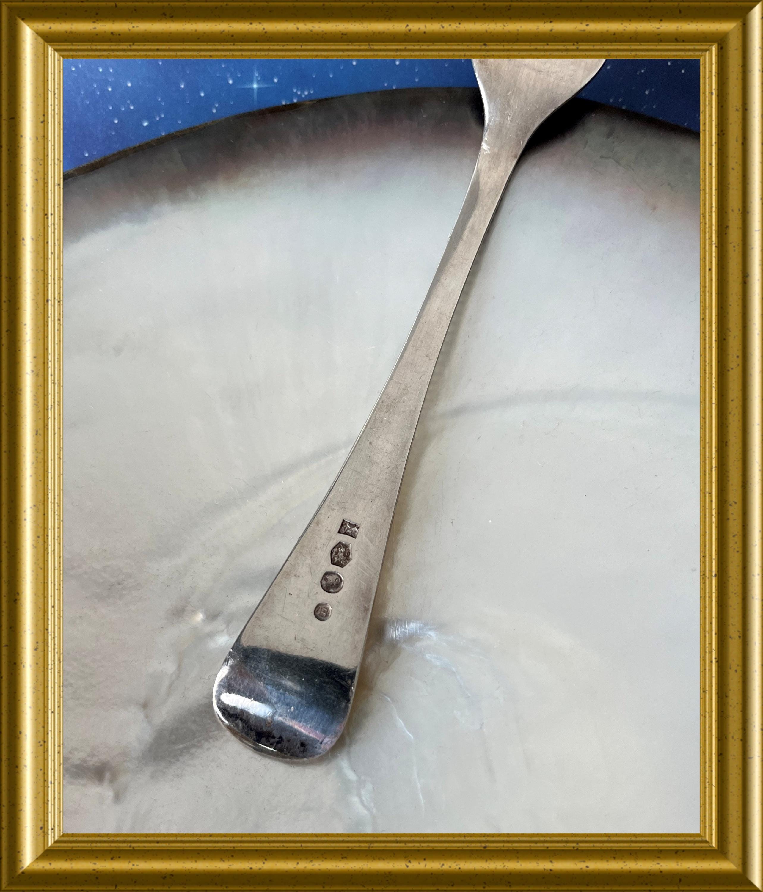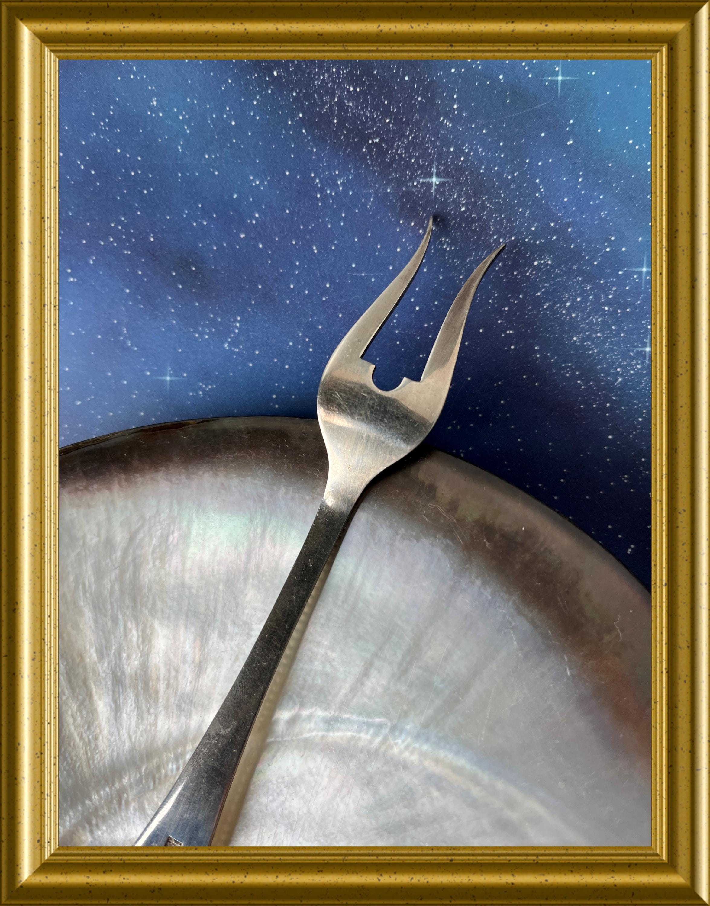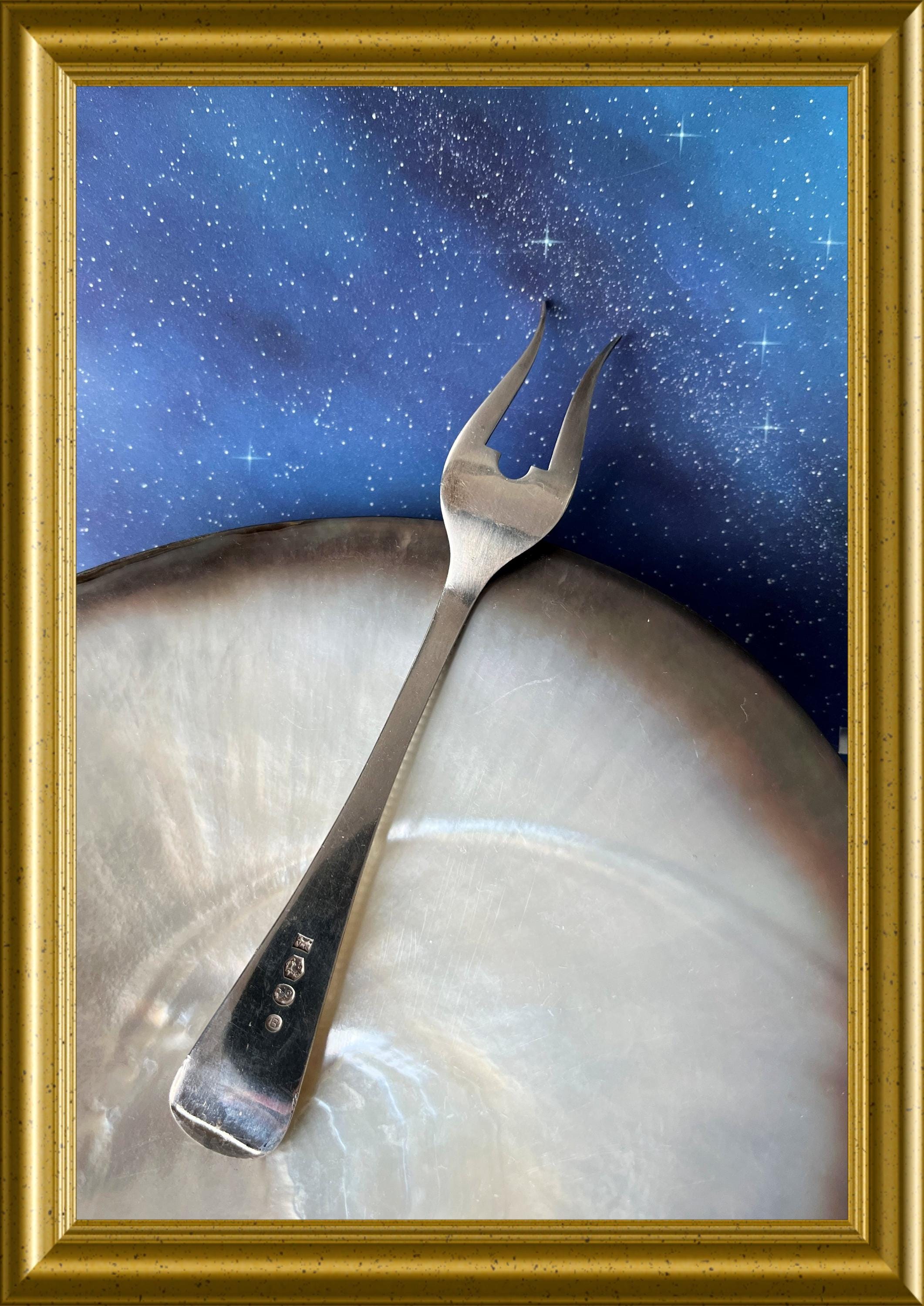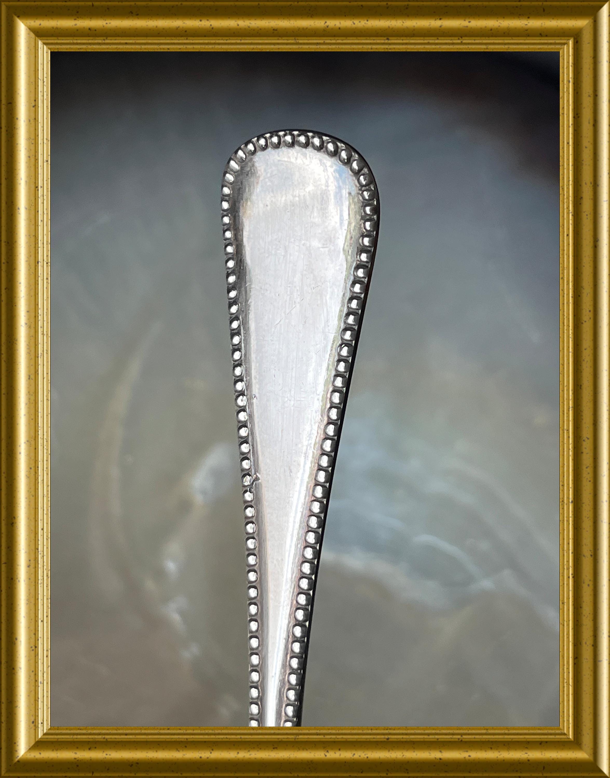 Vintage silver fork with pearl border, small meat fork, serving fork.
