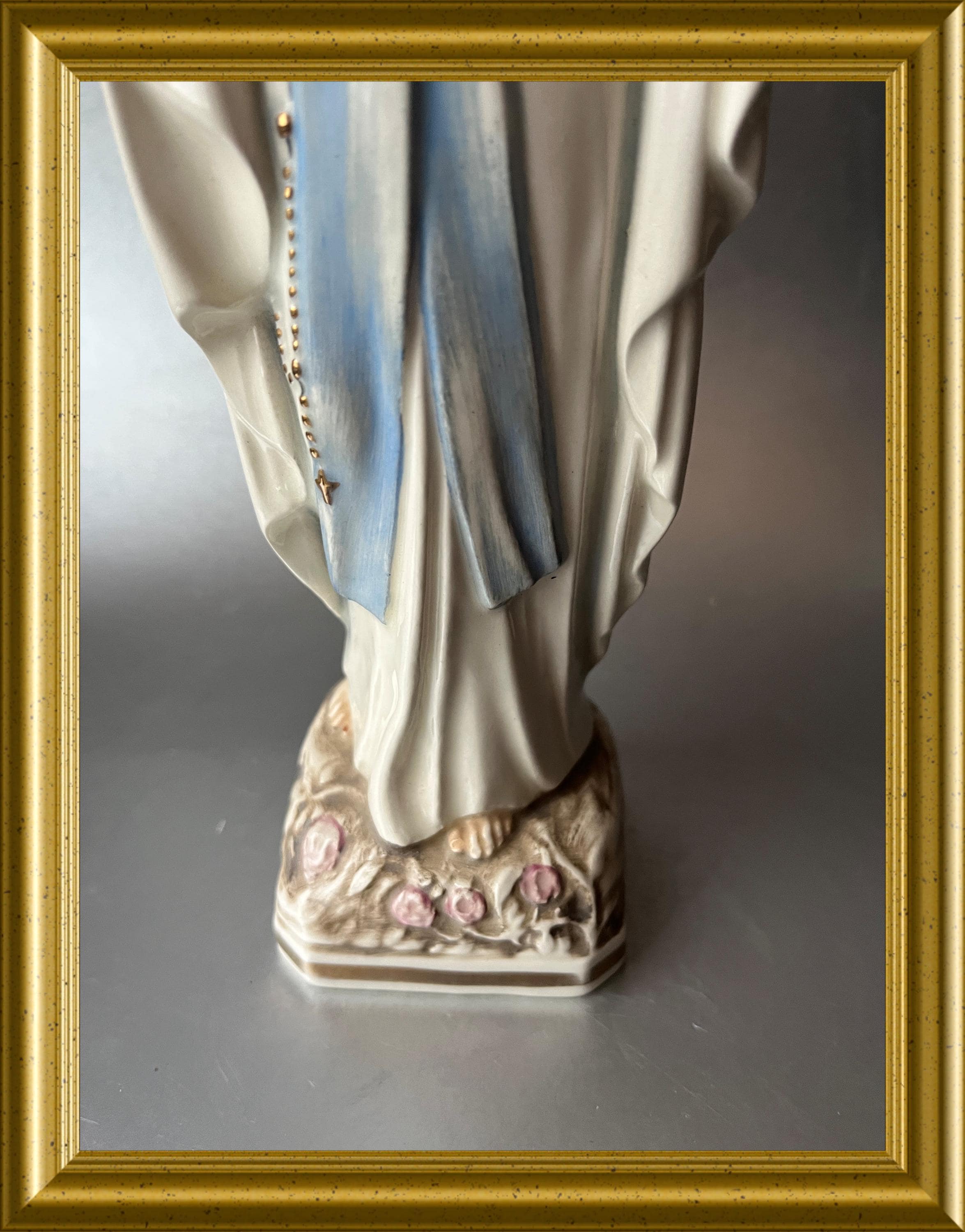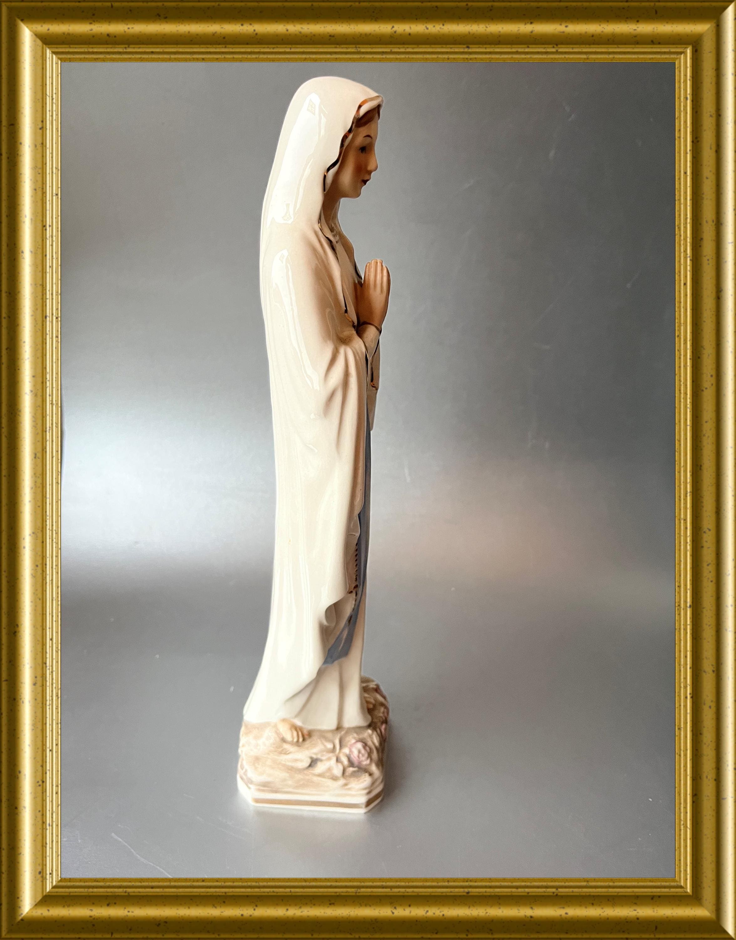 This devotional piece shows fine craftsmanship and serene detail, making it a meaningful addition to a religious collection or as a decorative item.