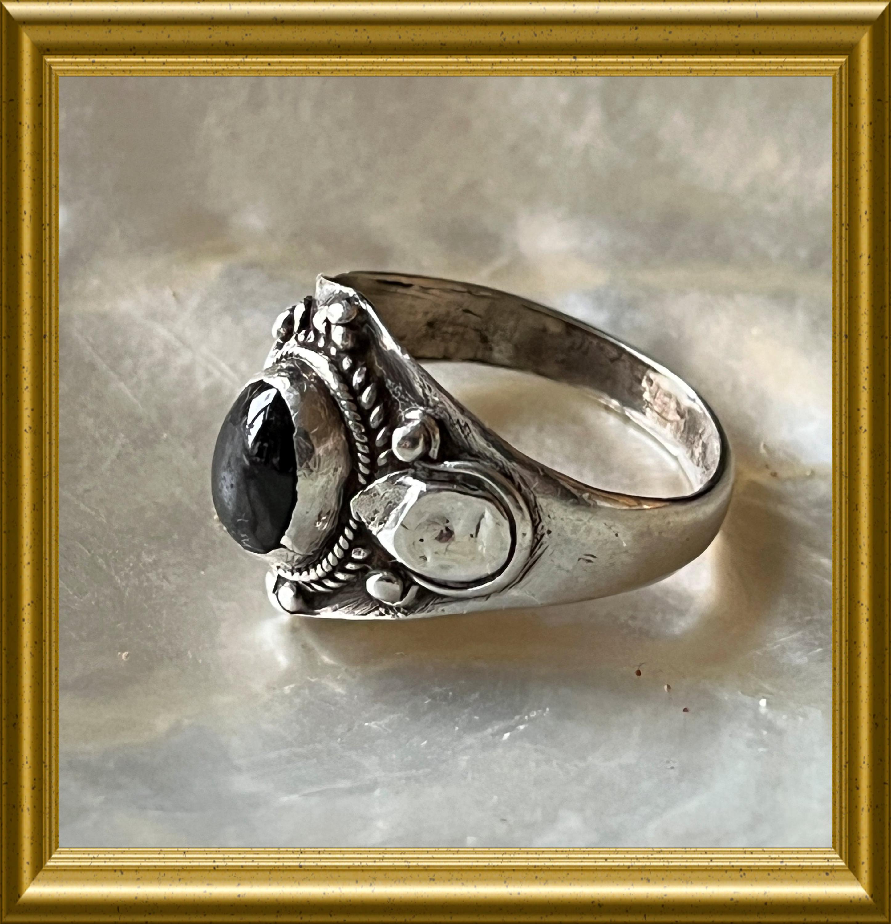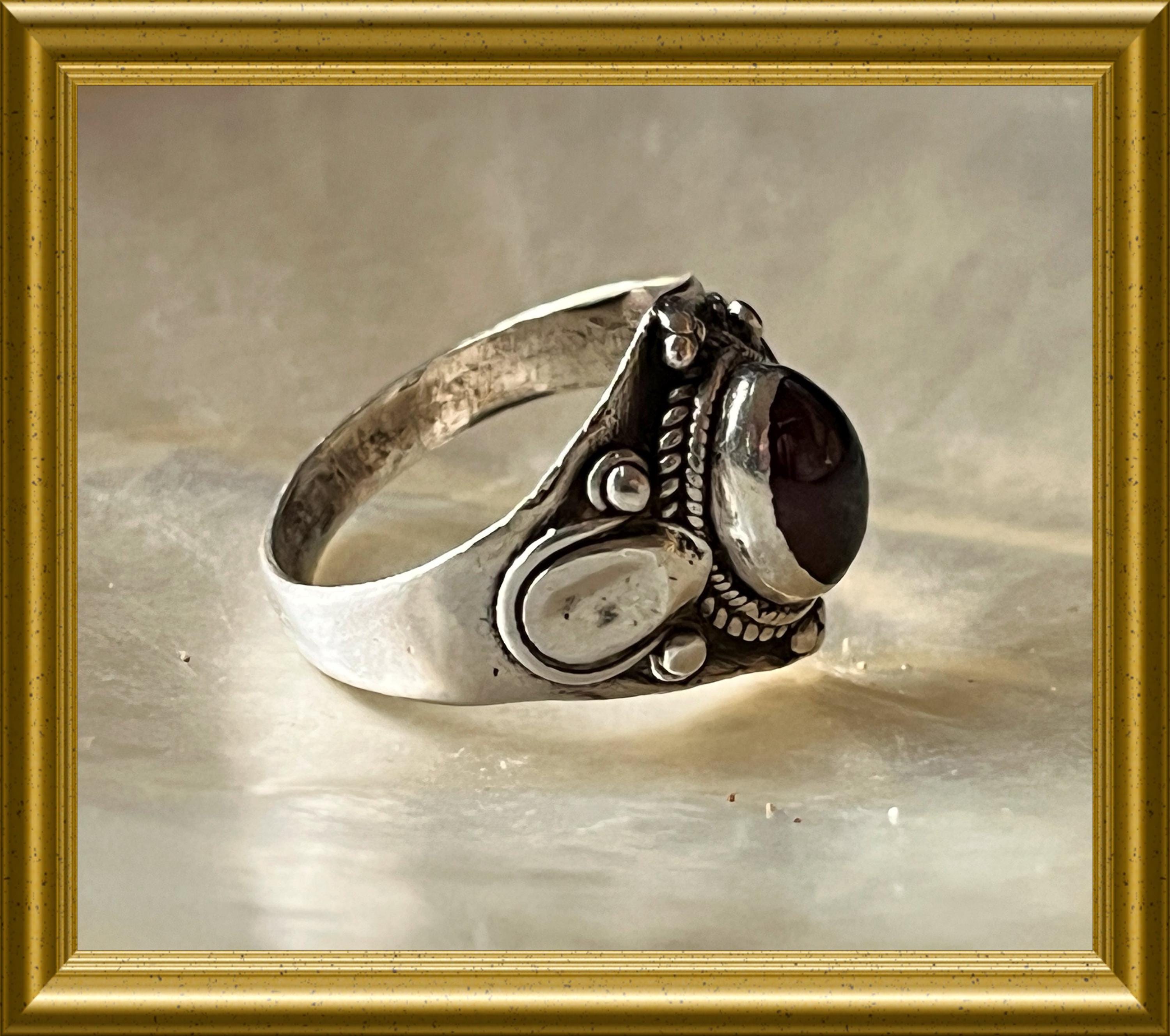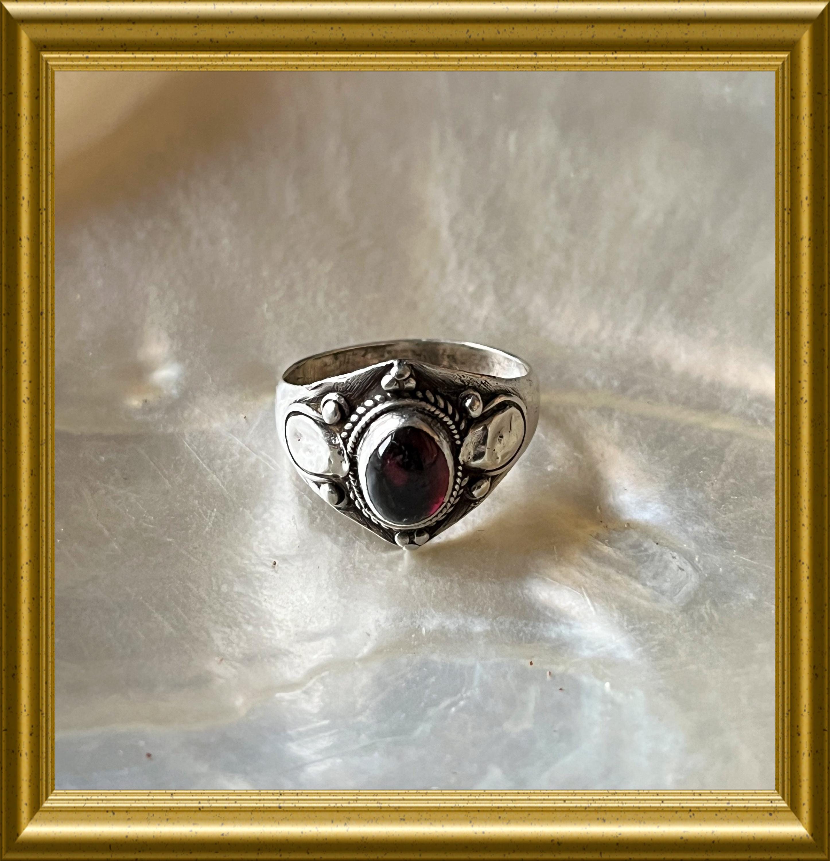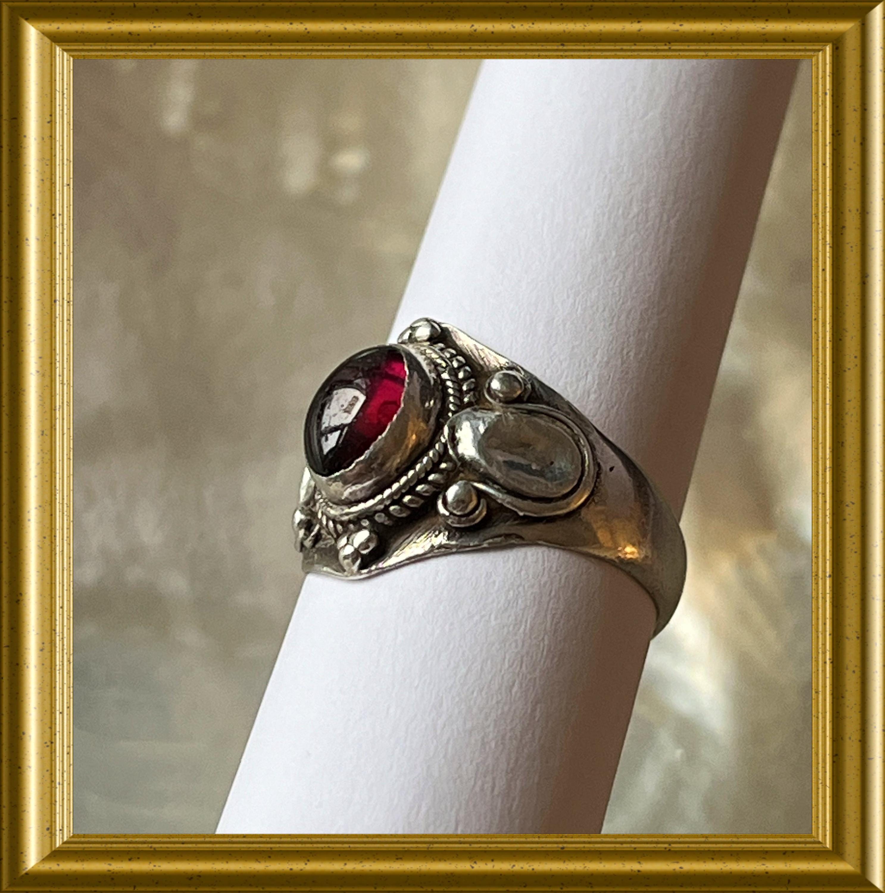 Beautiful silver ring with red stone.