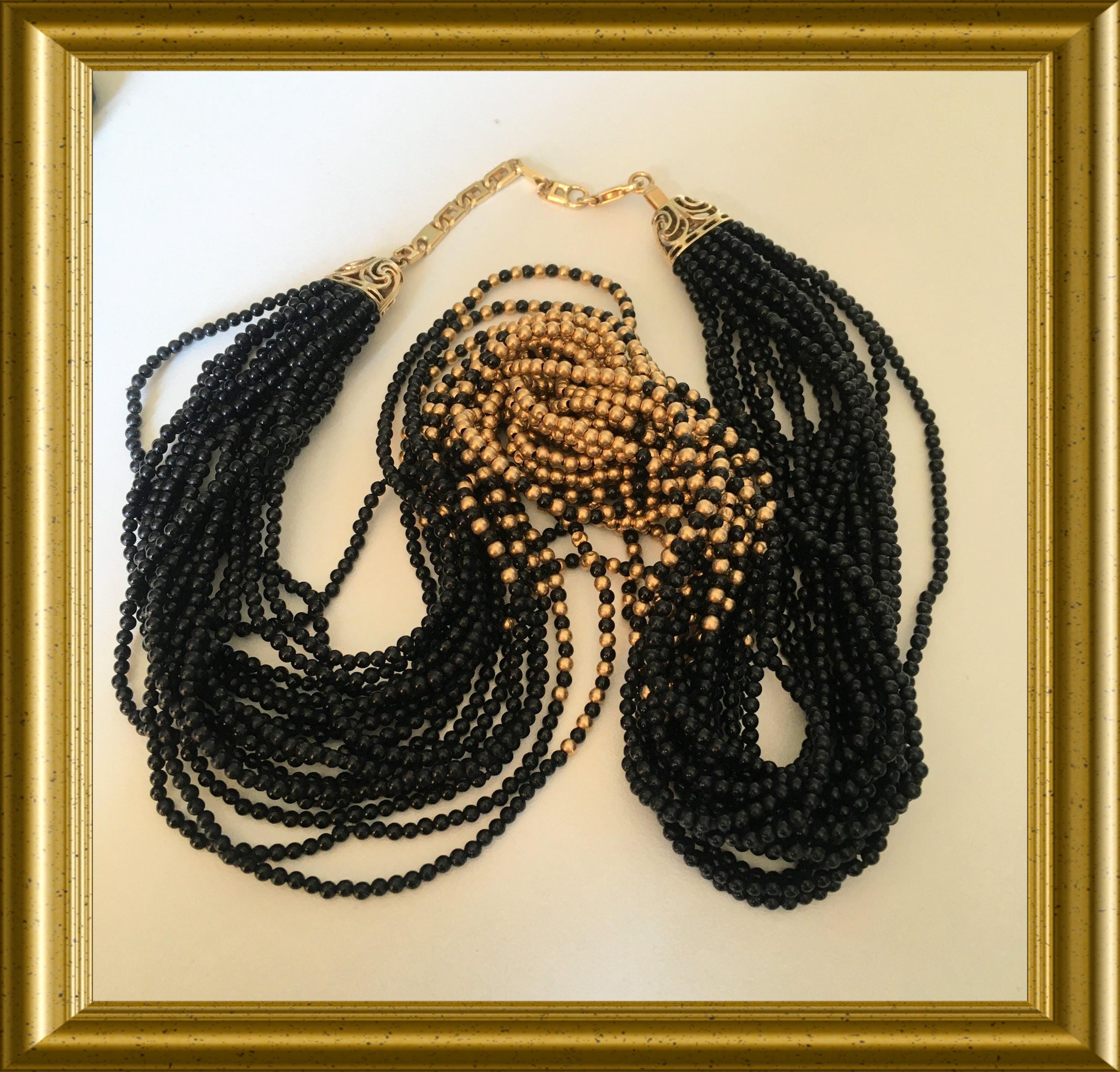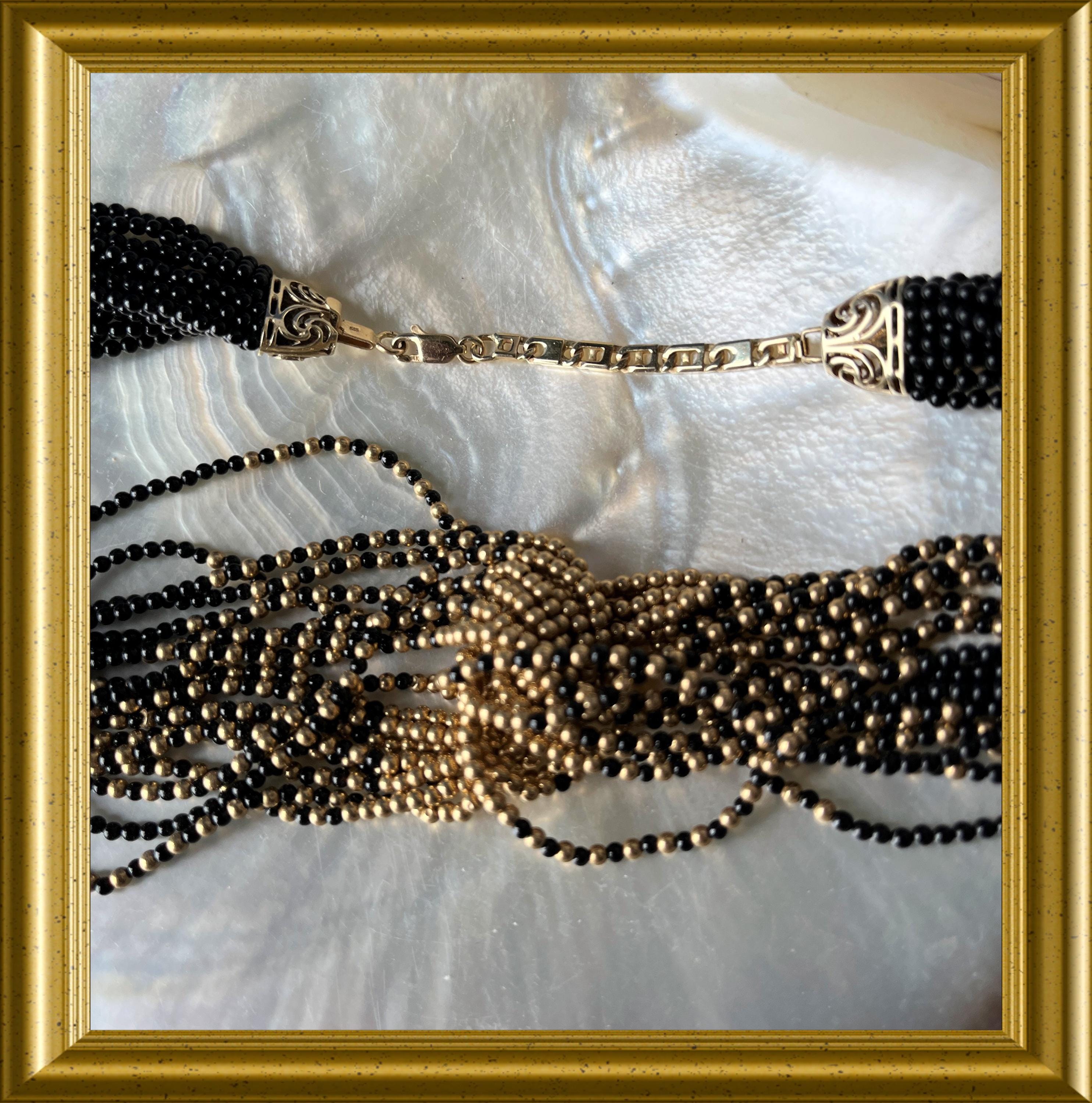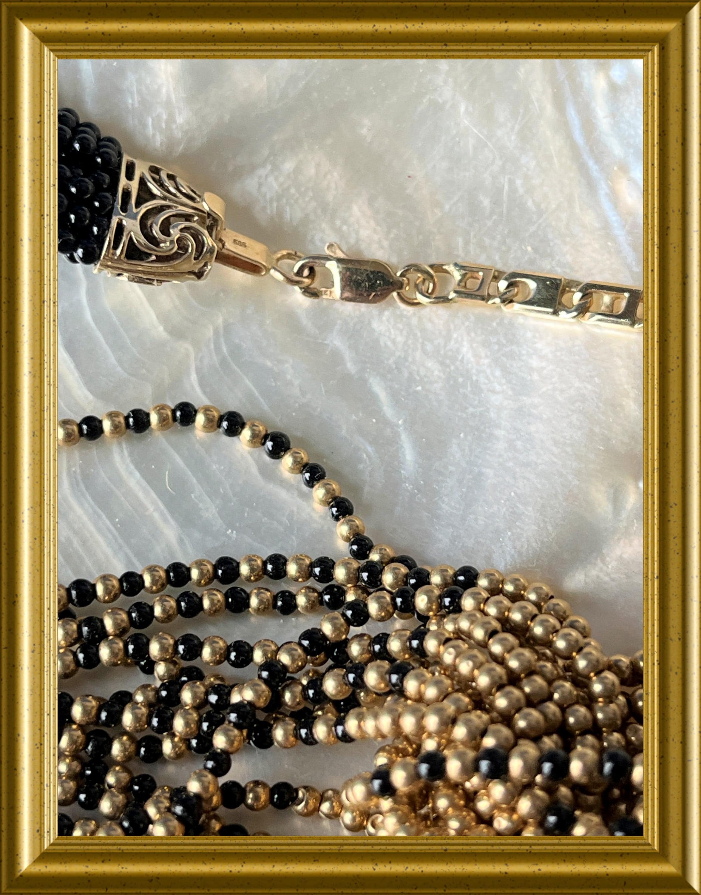 Necklace with black and 14‑carat gold beads (more than 700 pieces) and a 14‑carat (585) gold clasp.