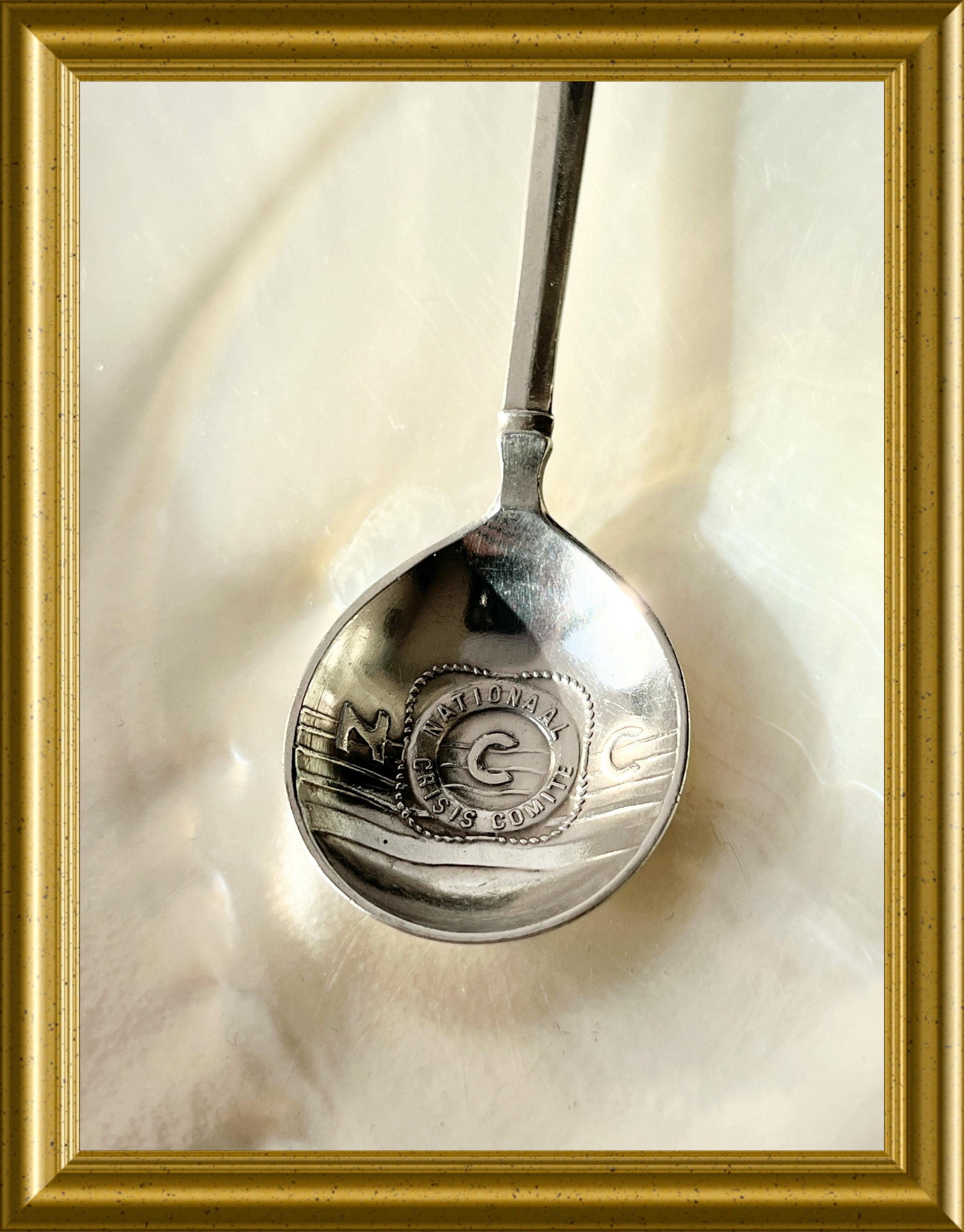 Vintage silver tea spoon: National Crisis Committee.