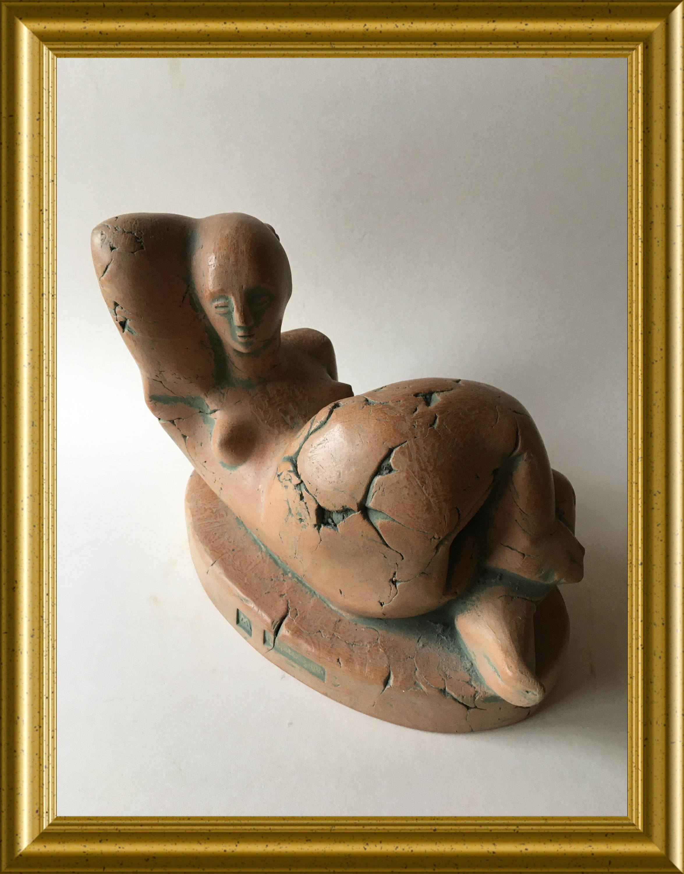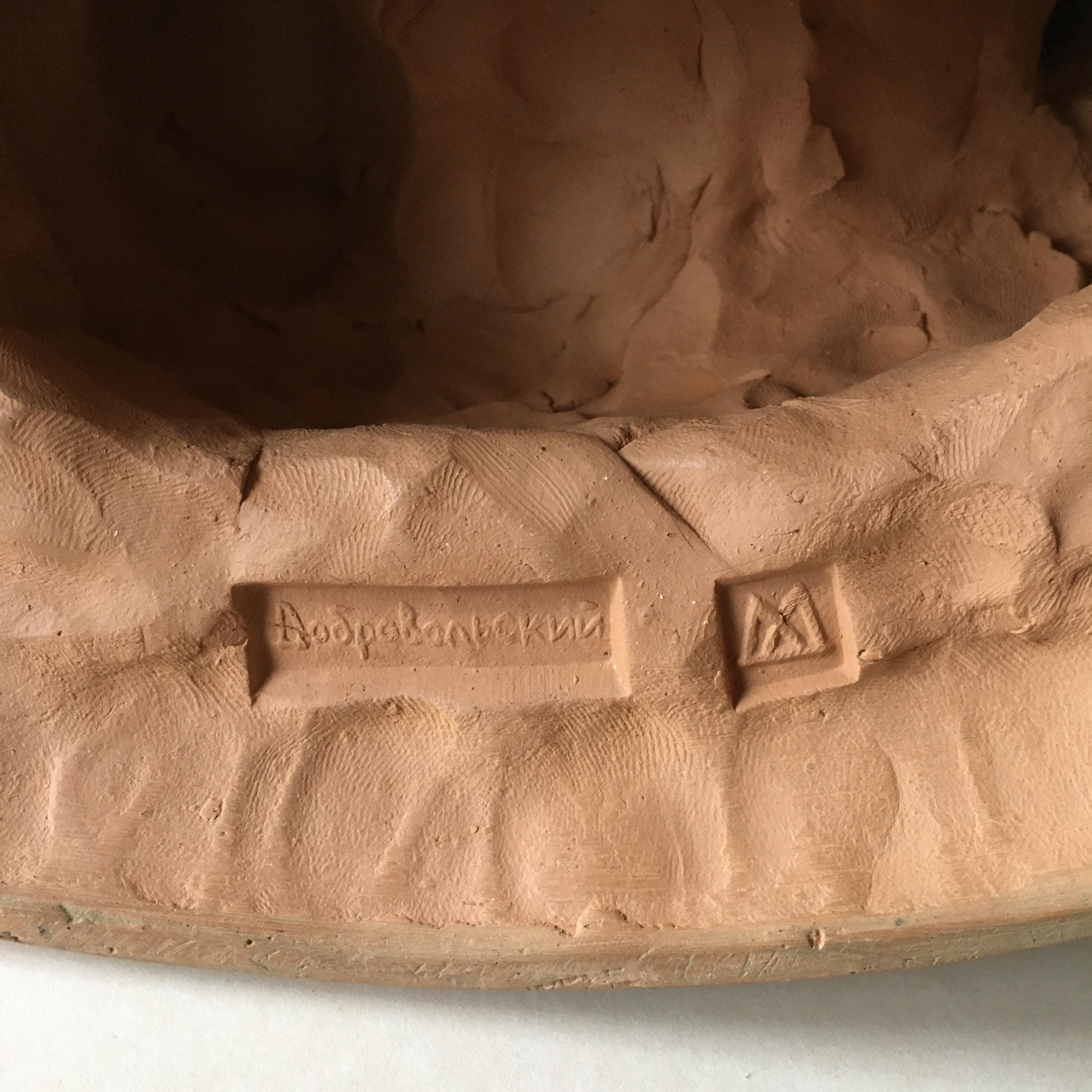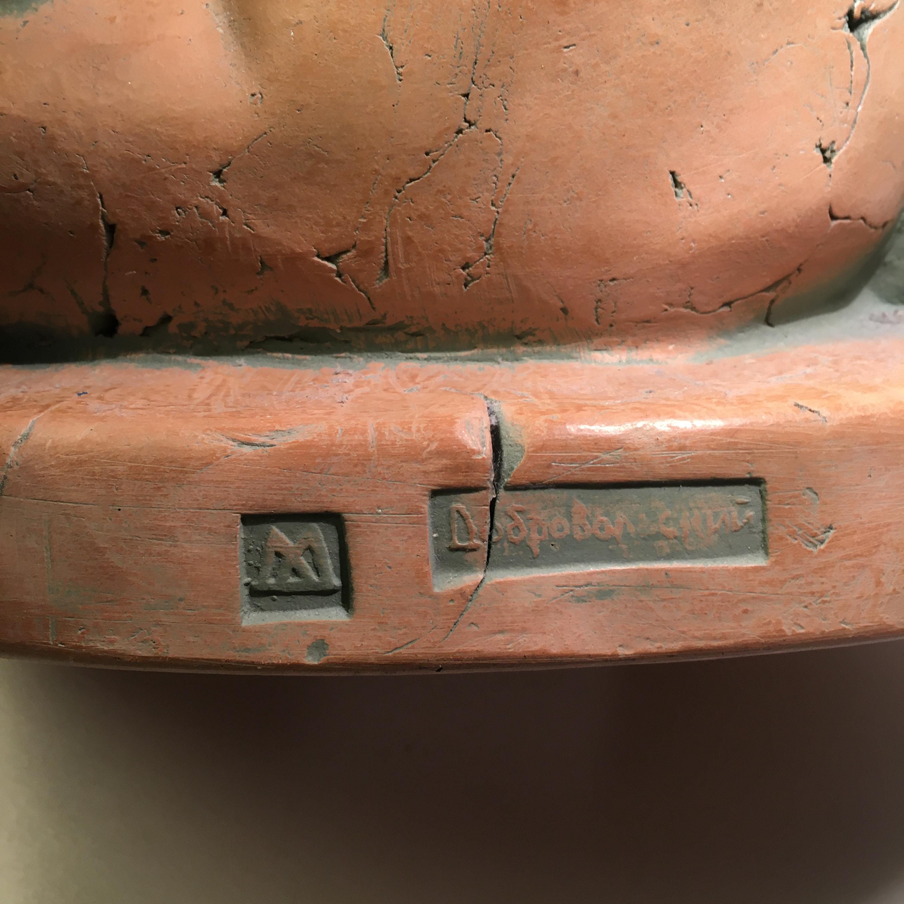 A beautifully crafted and expressive signed terracotta sculpture of a woman, created with a strong sense of form and gentle movement. The piece is signed Dobrovolski, giving it both artistic value and collectible appeal.