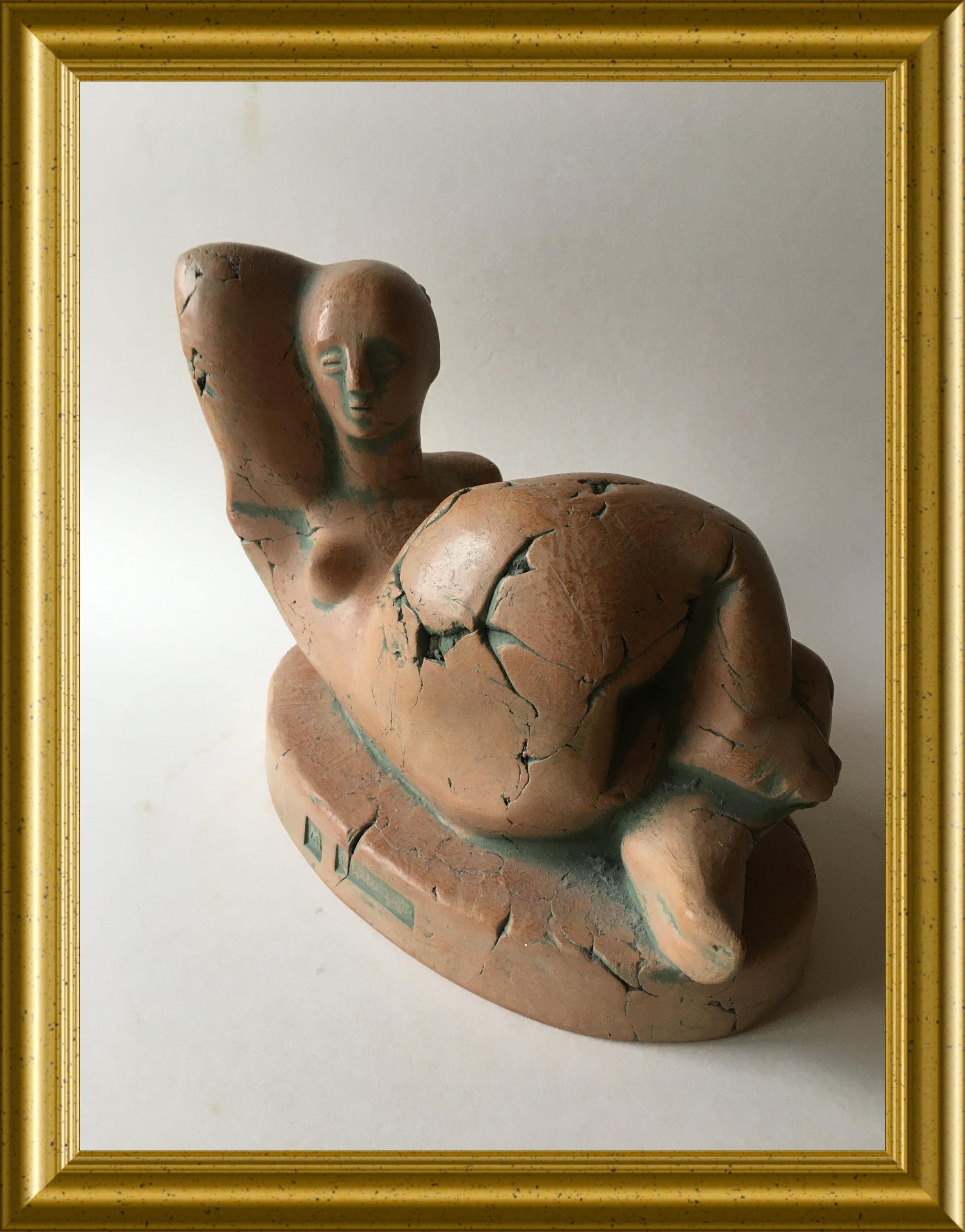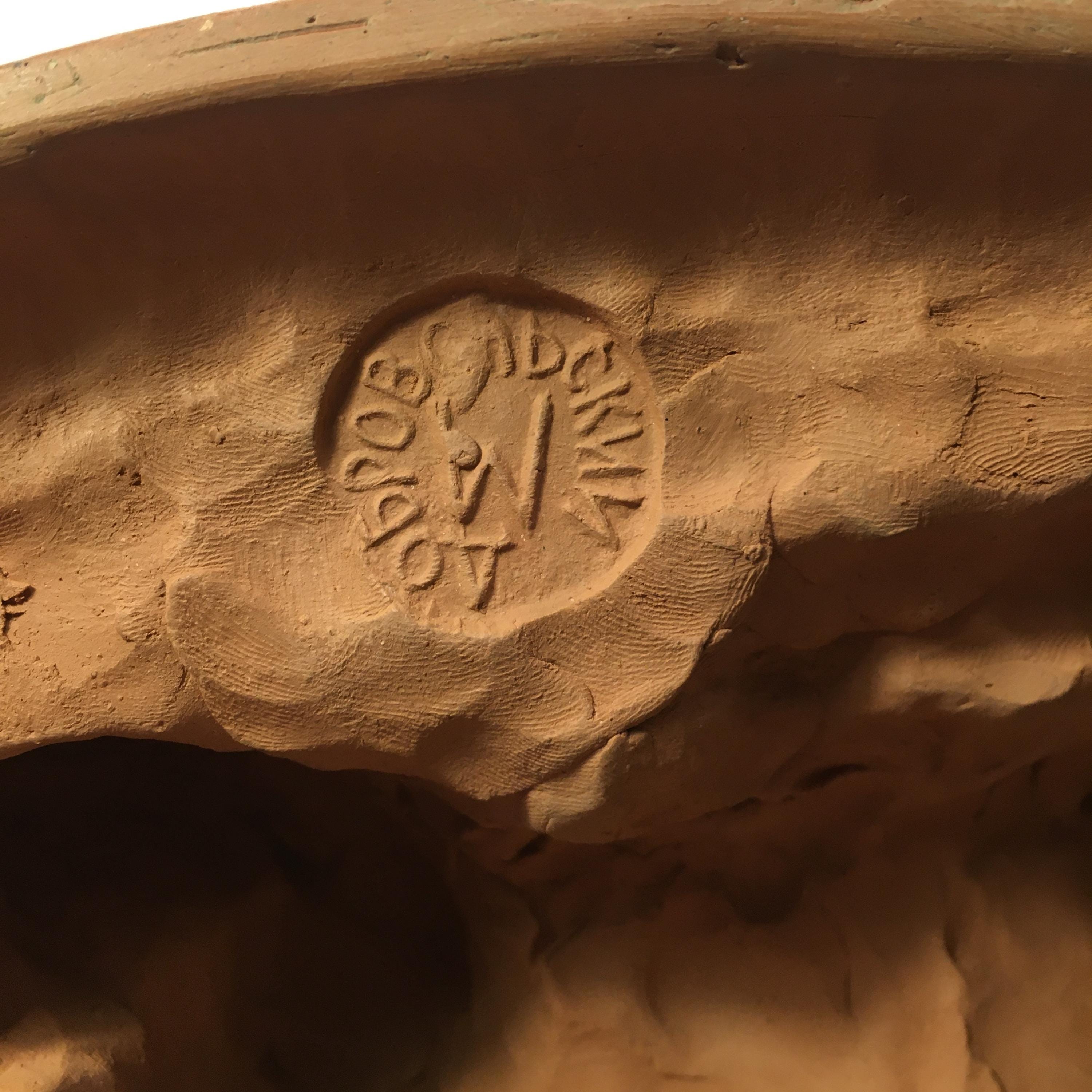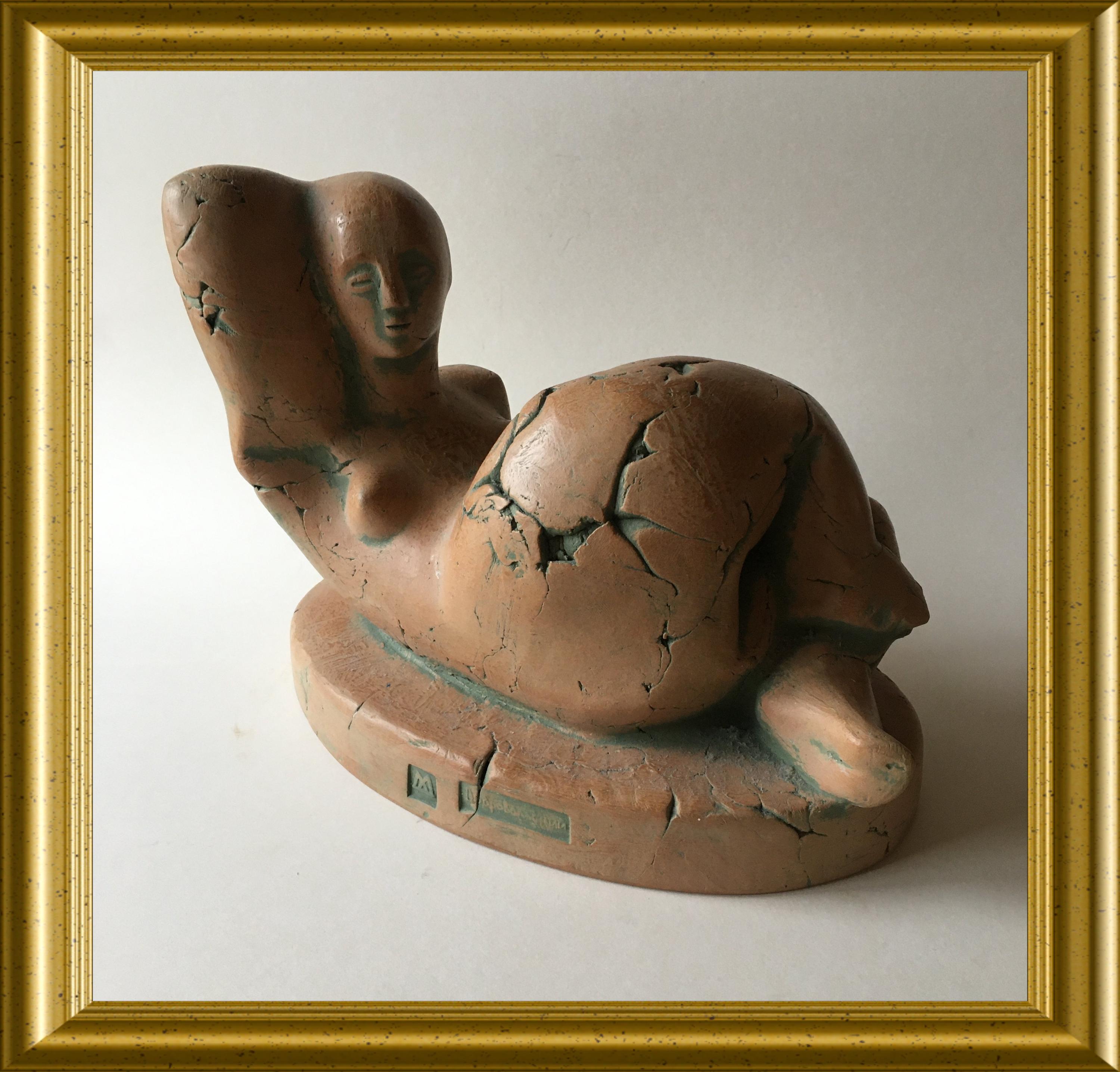 A beautifully crafted and expressive signed terracotta sculpture of a woman, created with a strong sense of form and gentle movement. The piece is signed Dobrovolski, giving it both artistic value and collectible appeal.