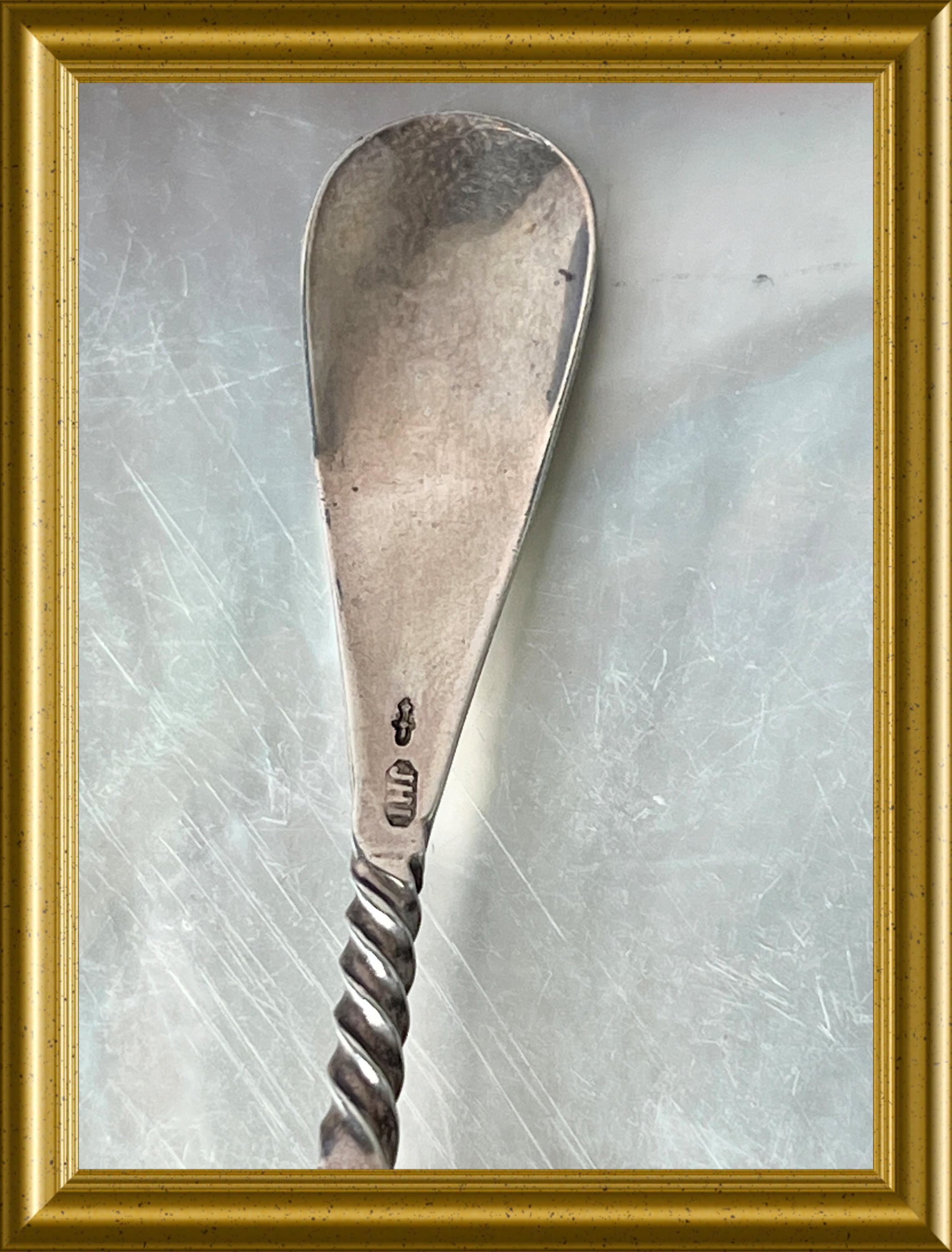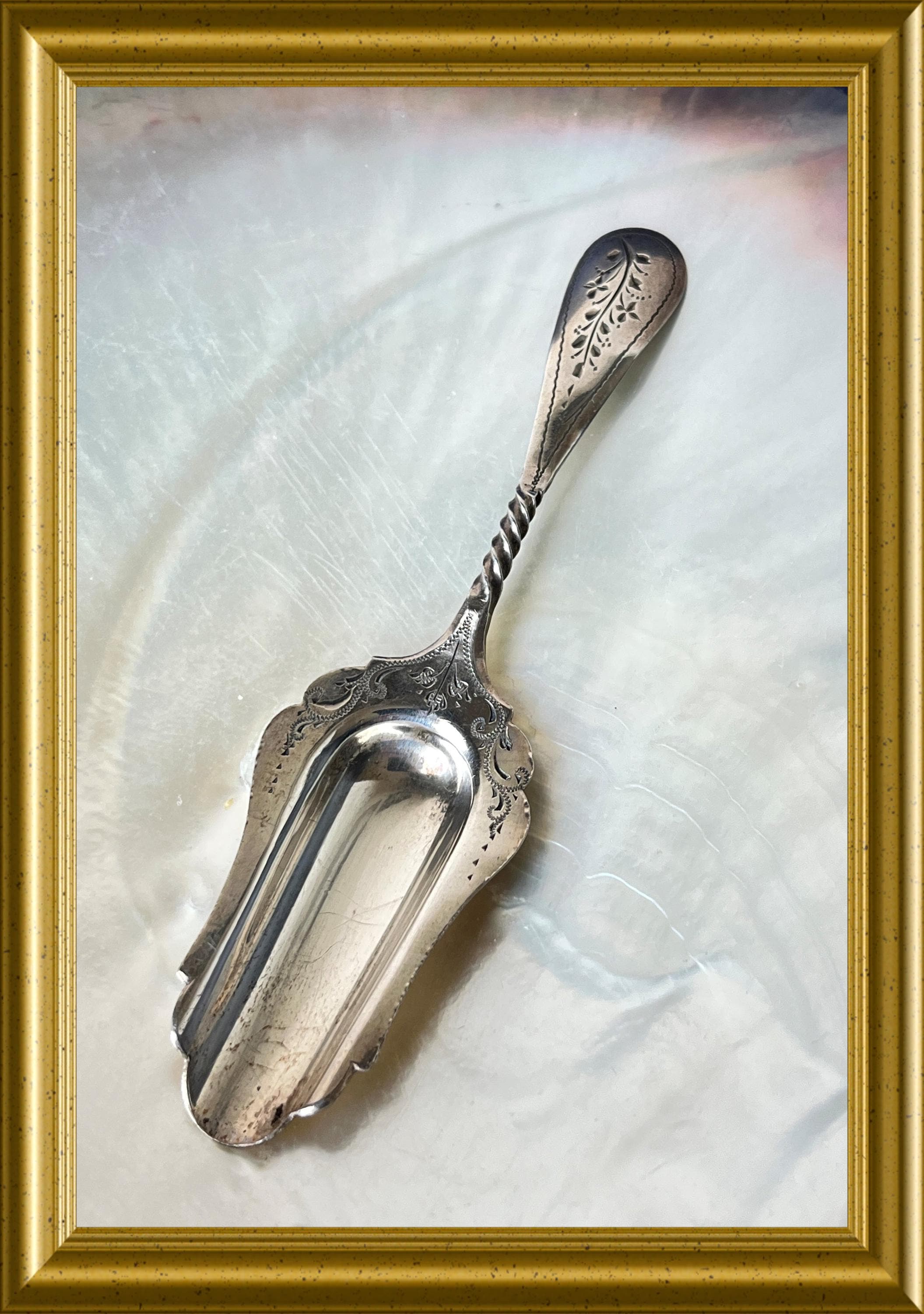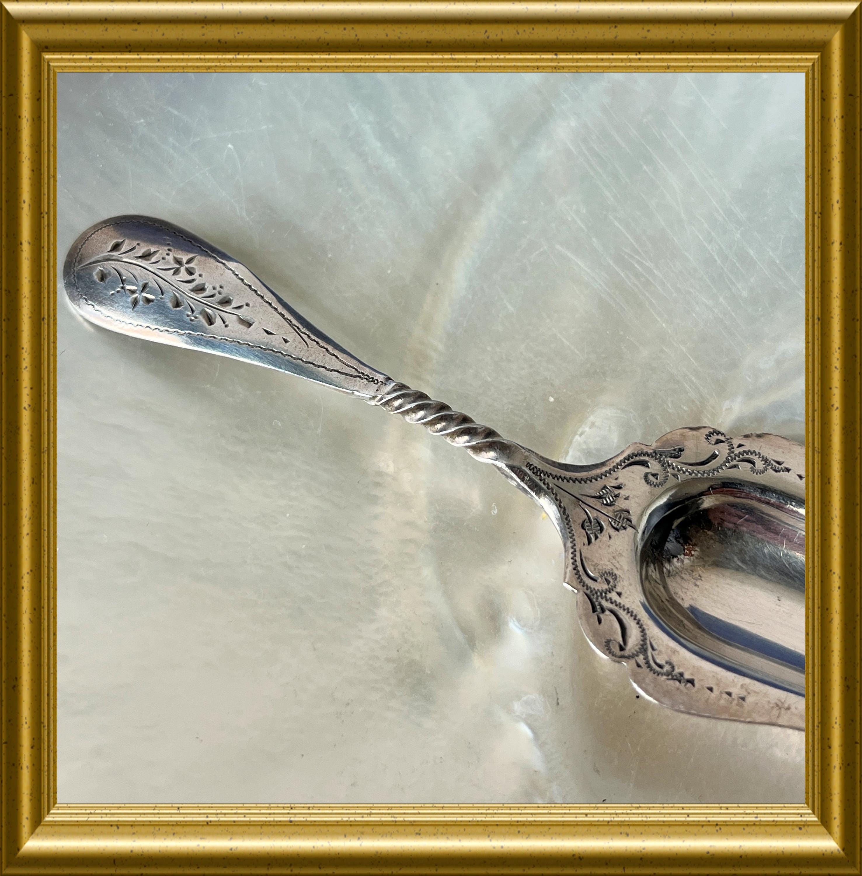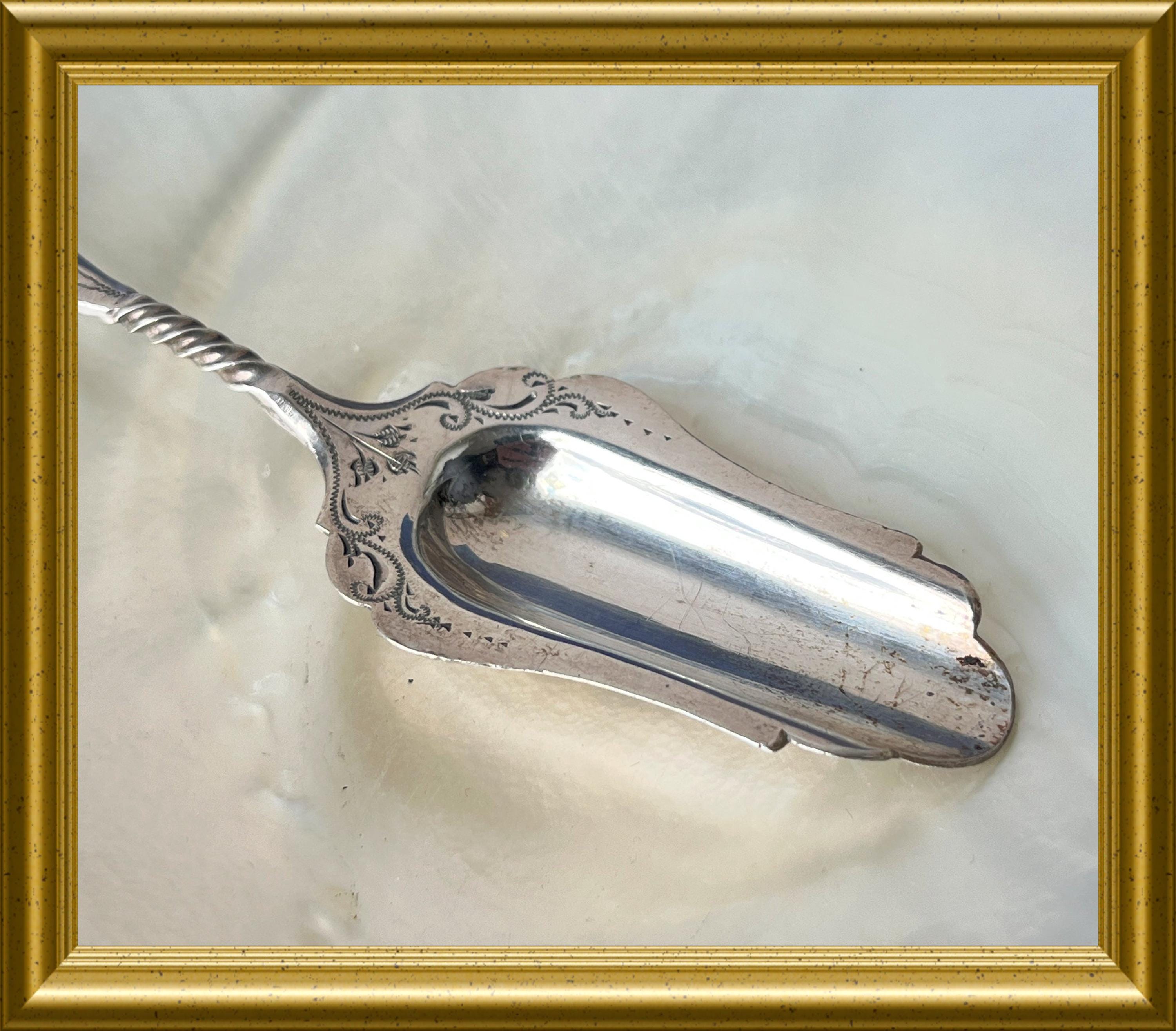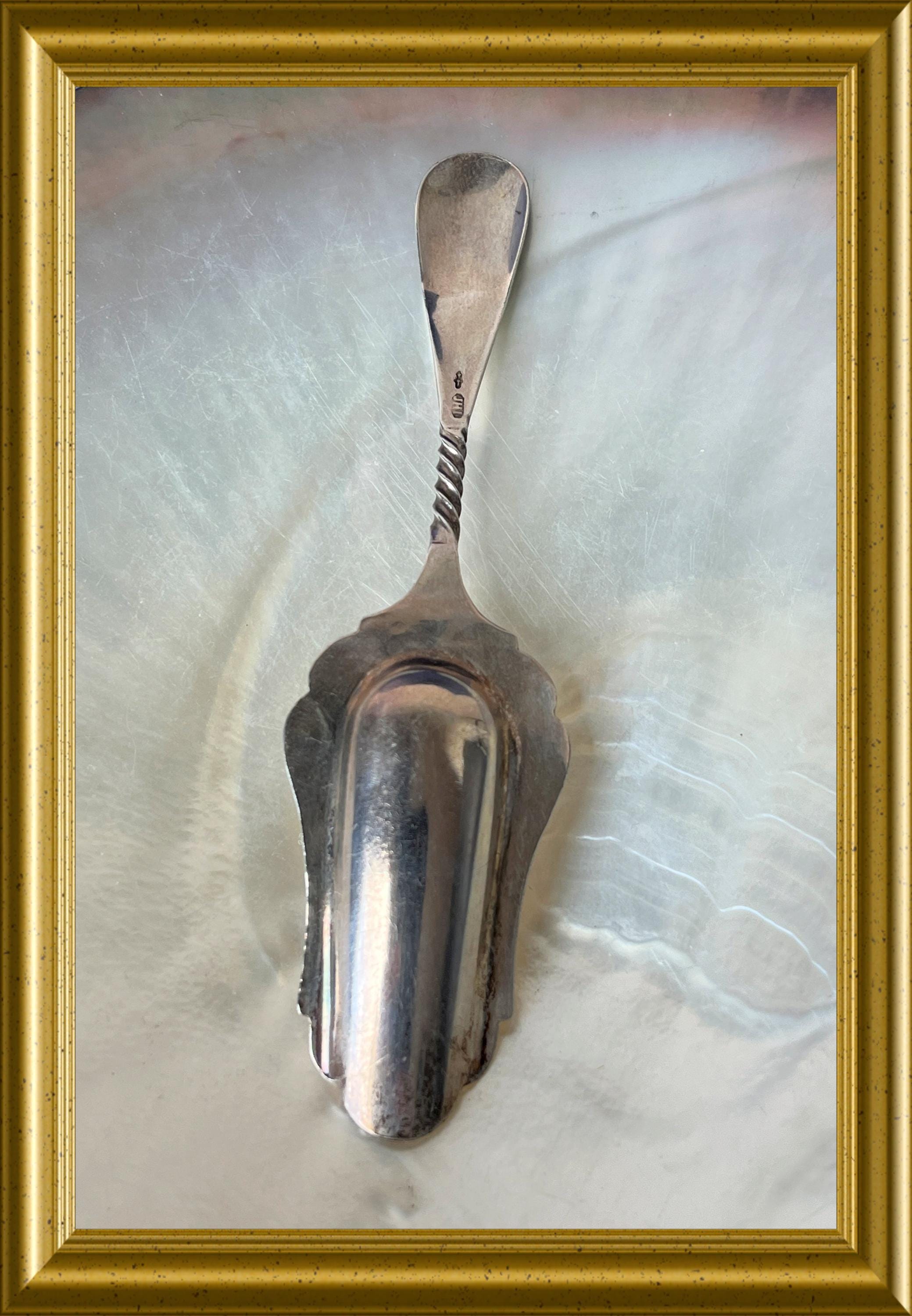 Antique Dutch silver sugar spoon with a charming, elegant design.