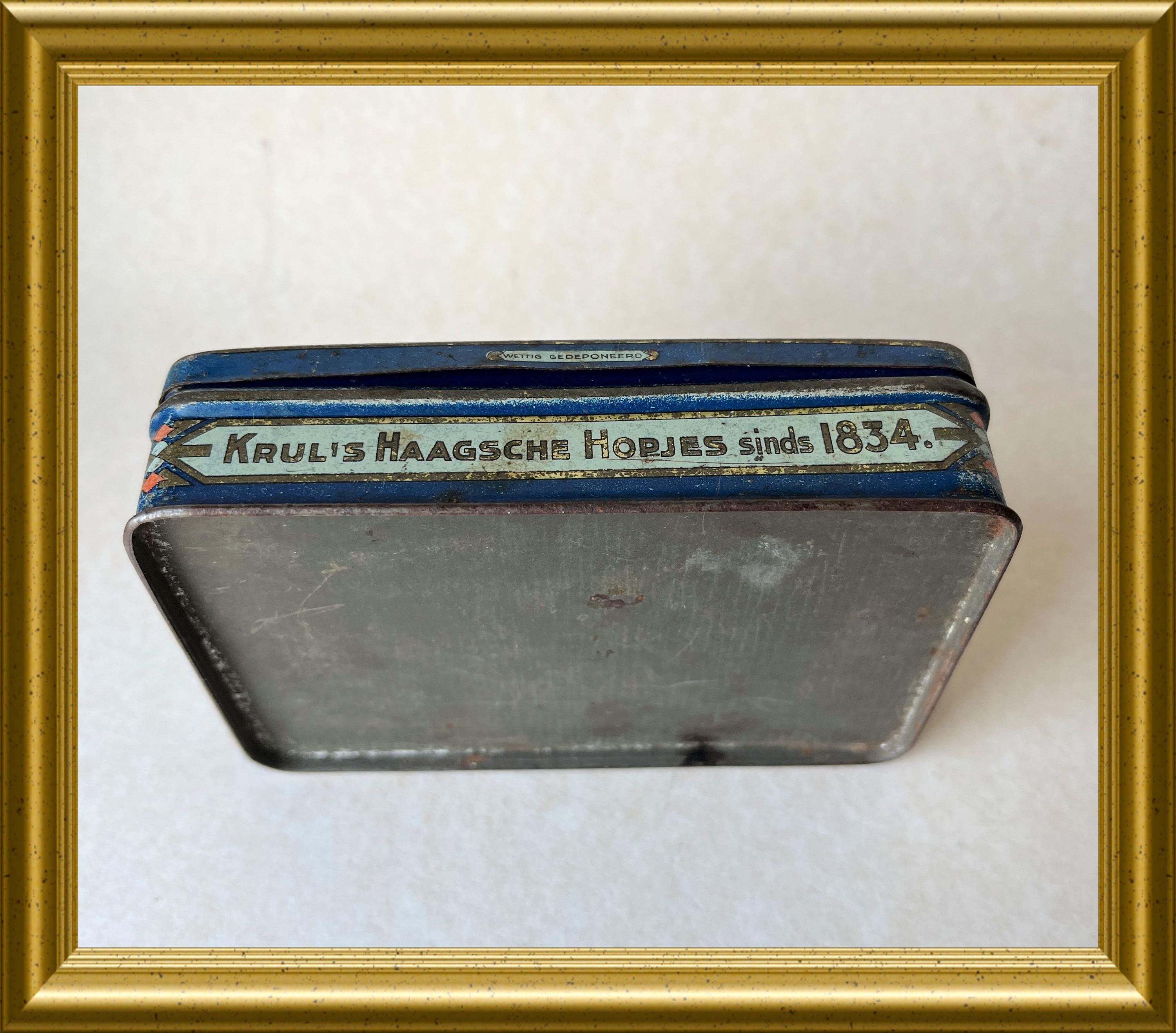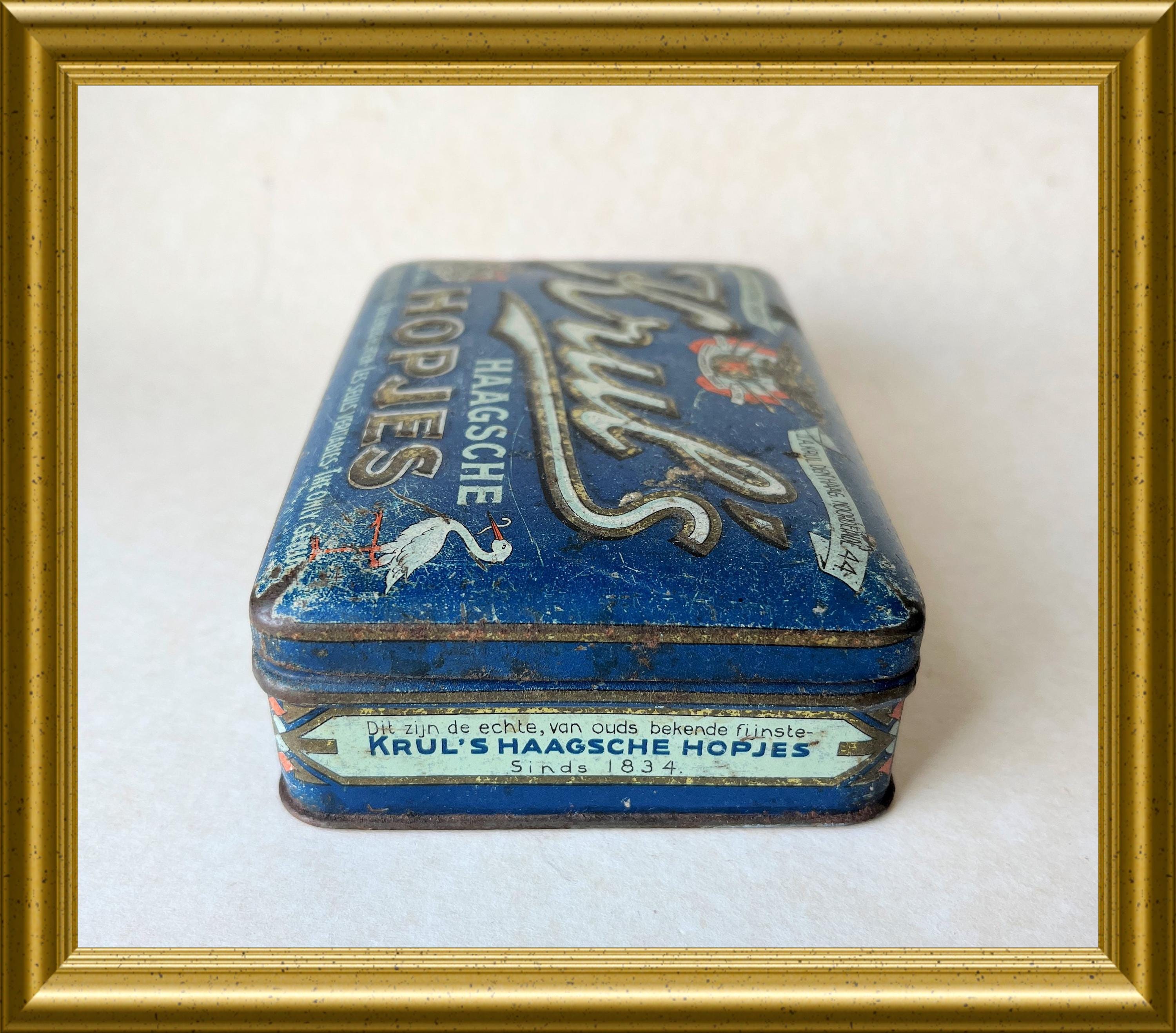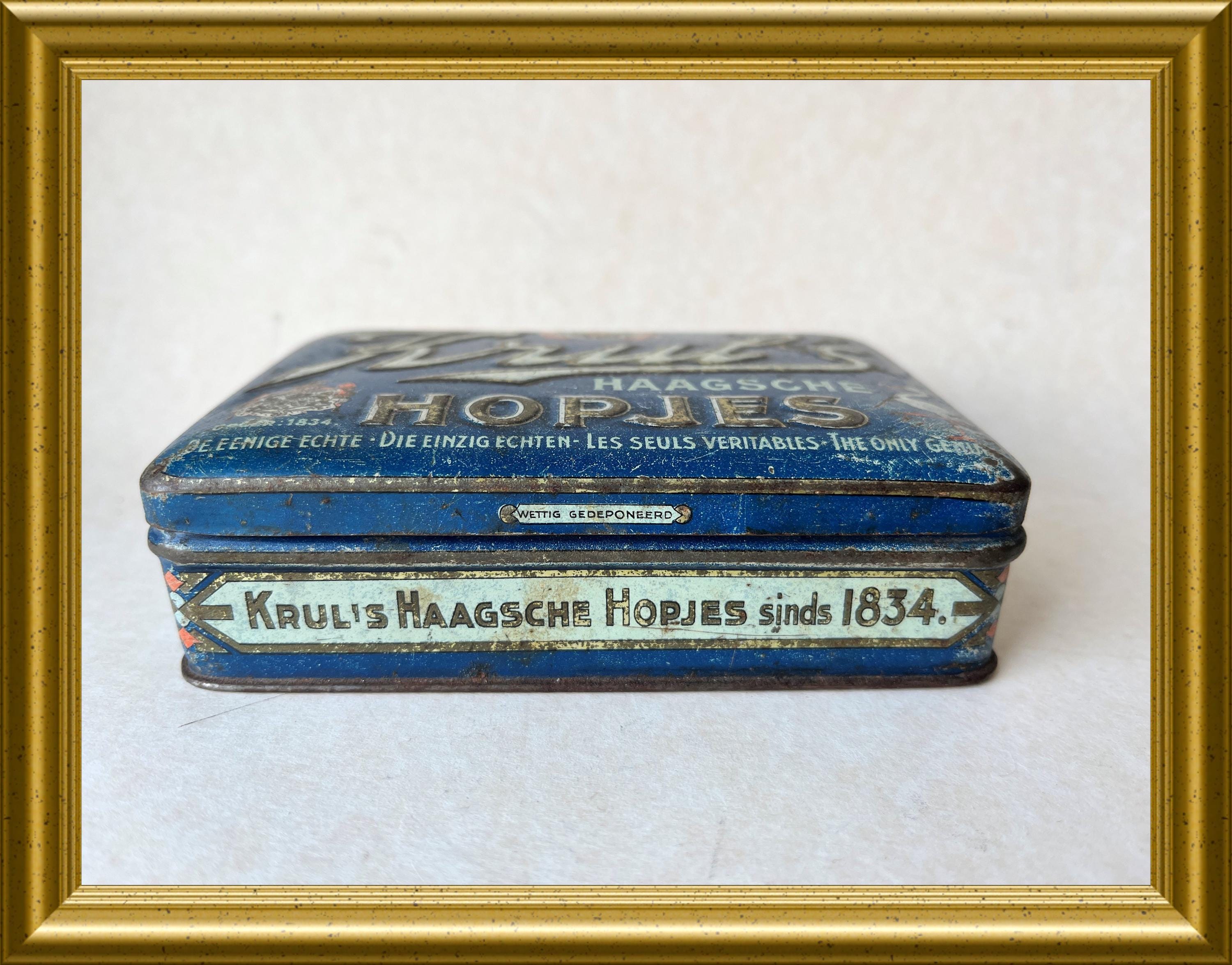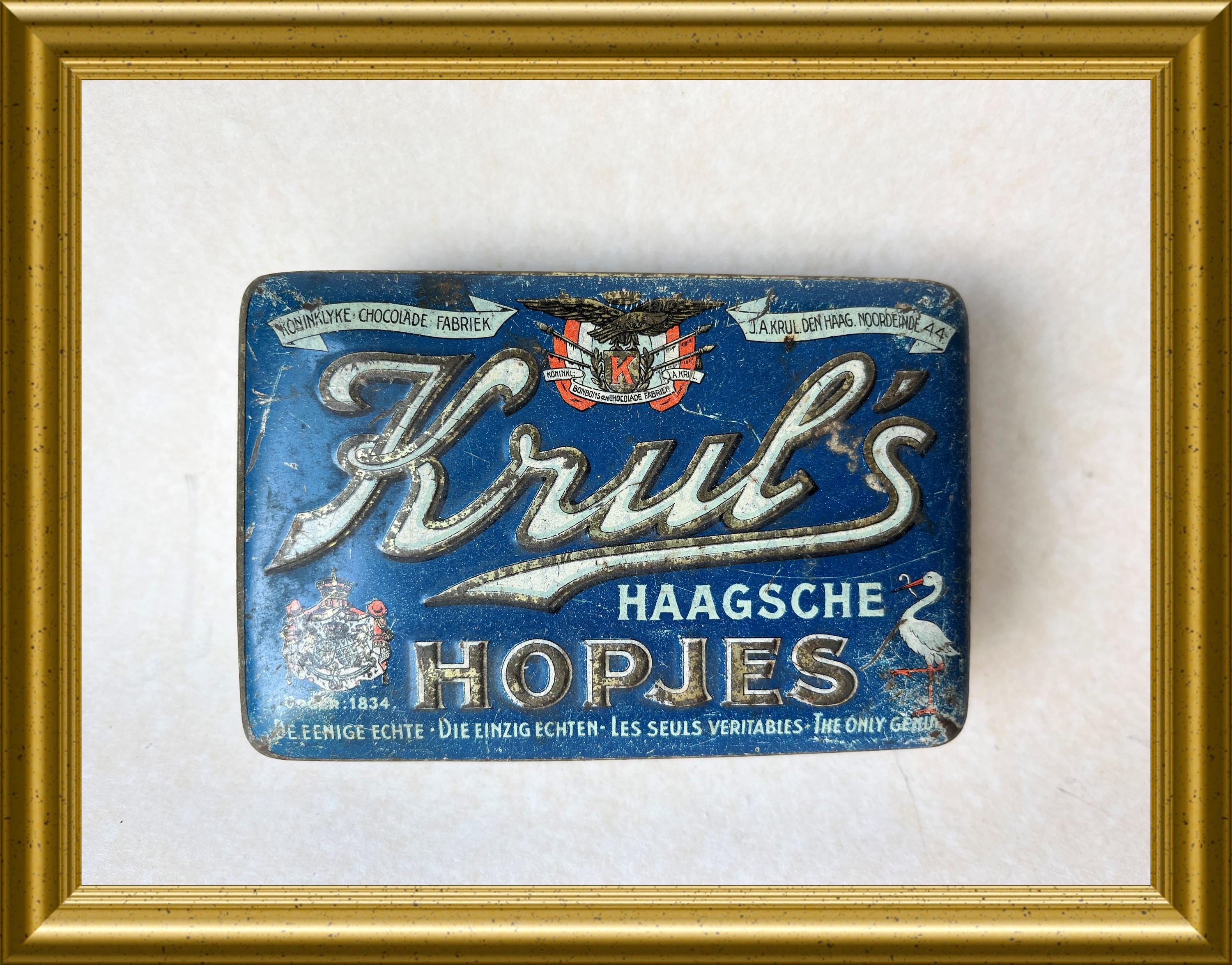 A charming antique tin for Krul’s Haagsche Hopjes, the classic Dutch coffee candies.