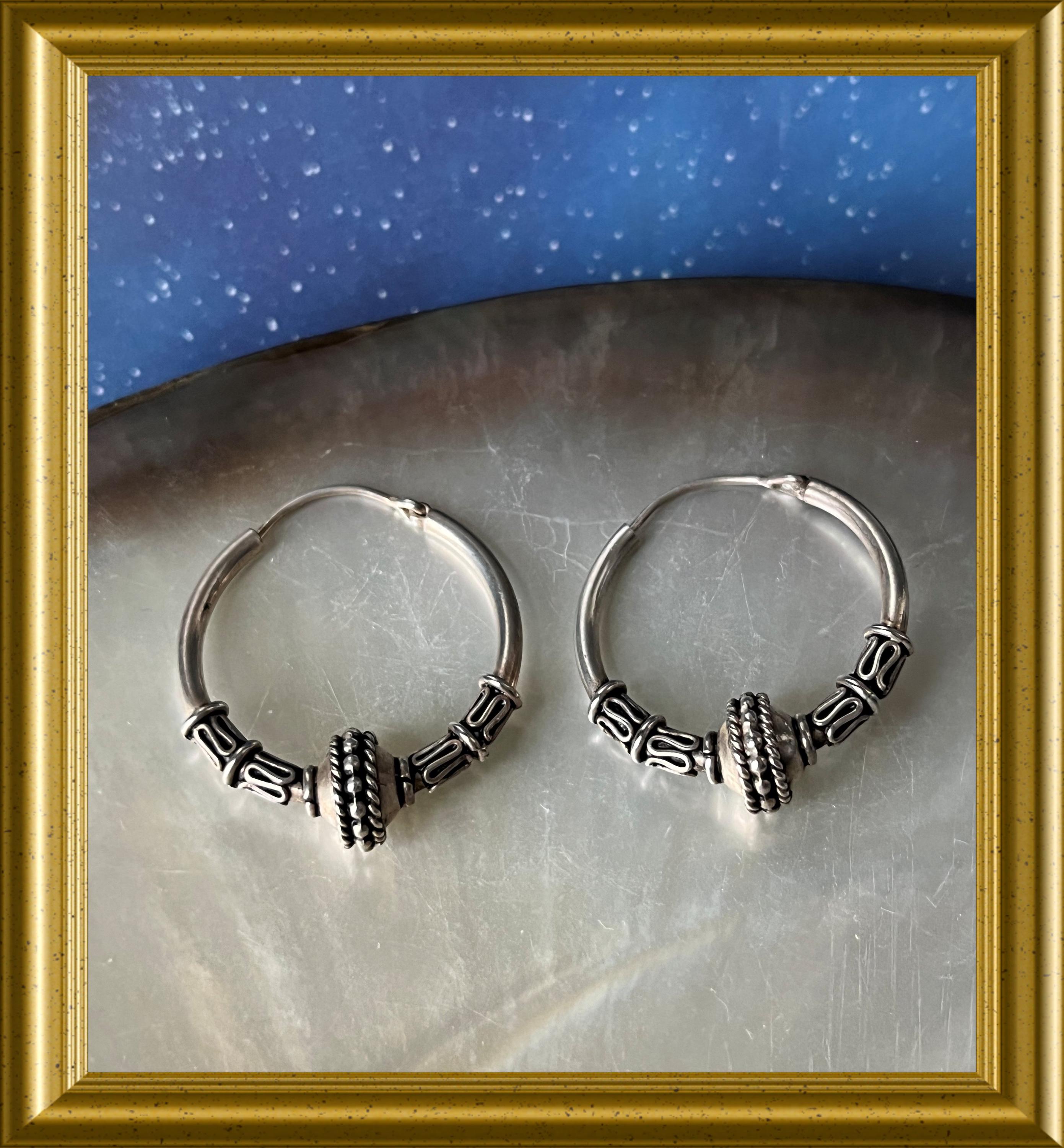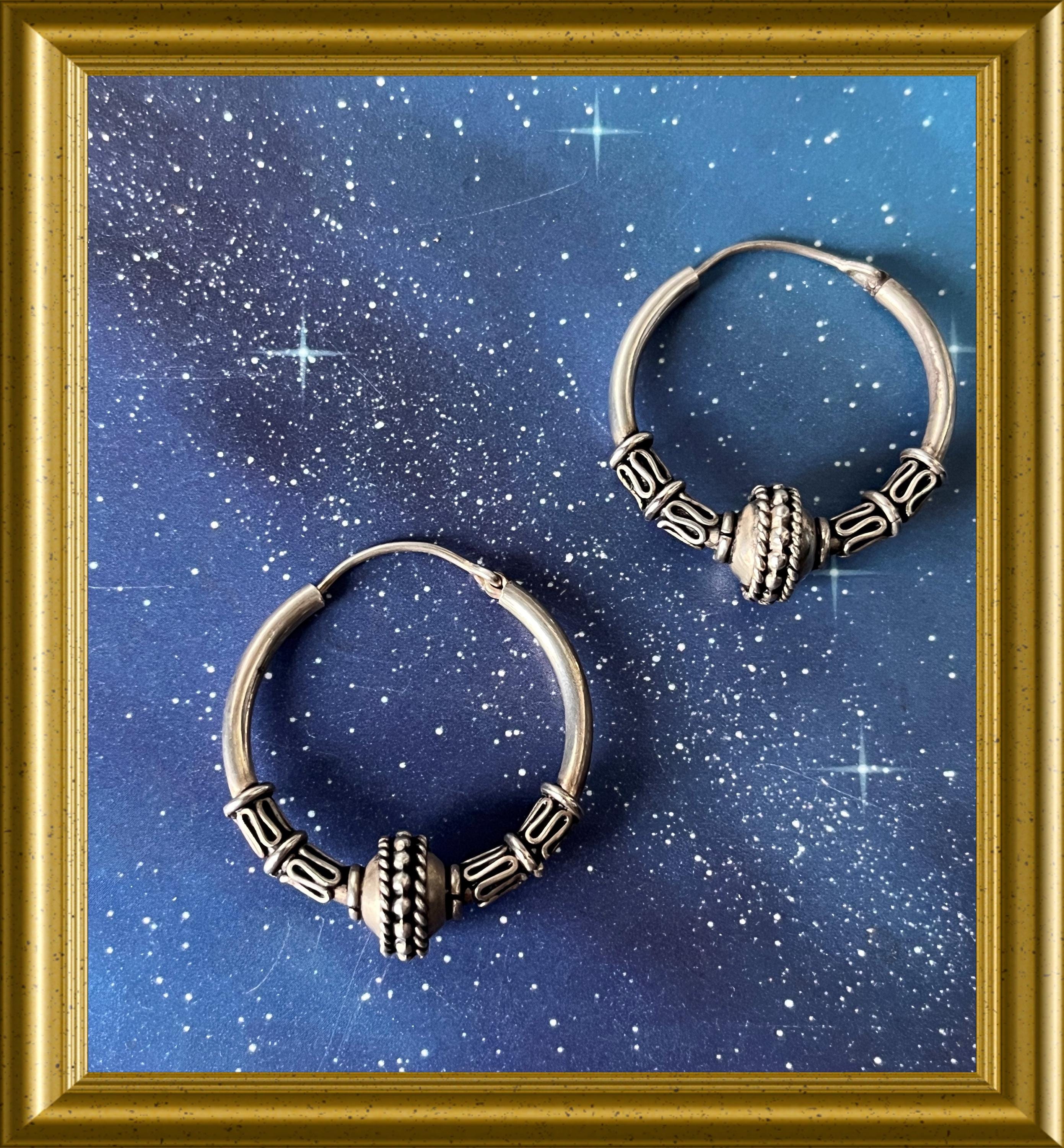 Silver earrings, creoles.