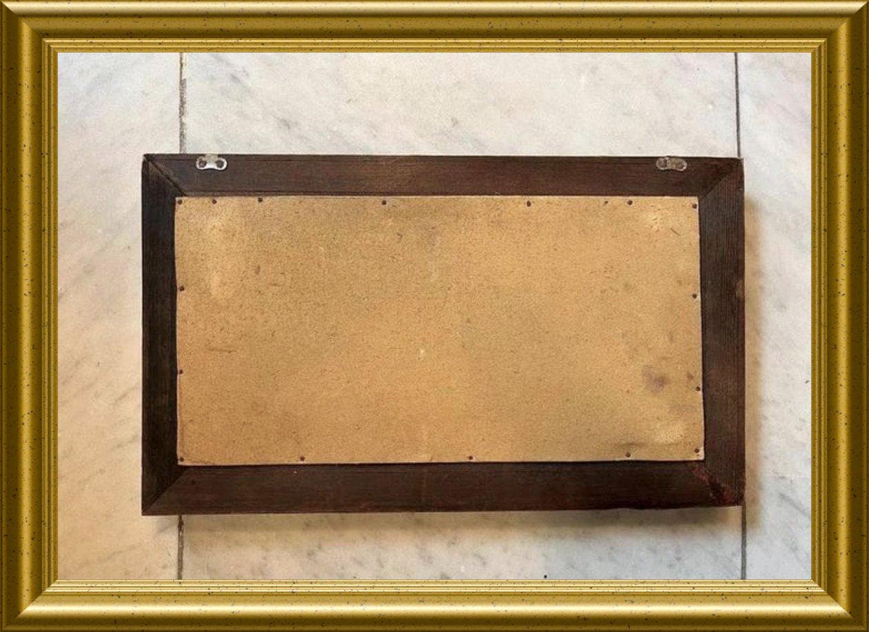 The scene is crafted in metal and set in a wooden frame, giving it a rustic and timeless look.