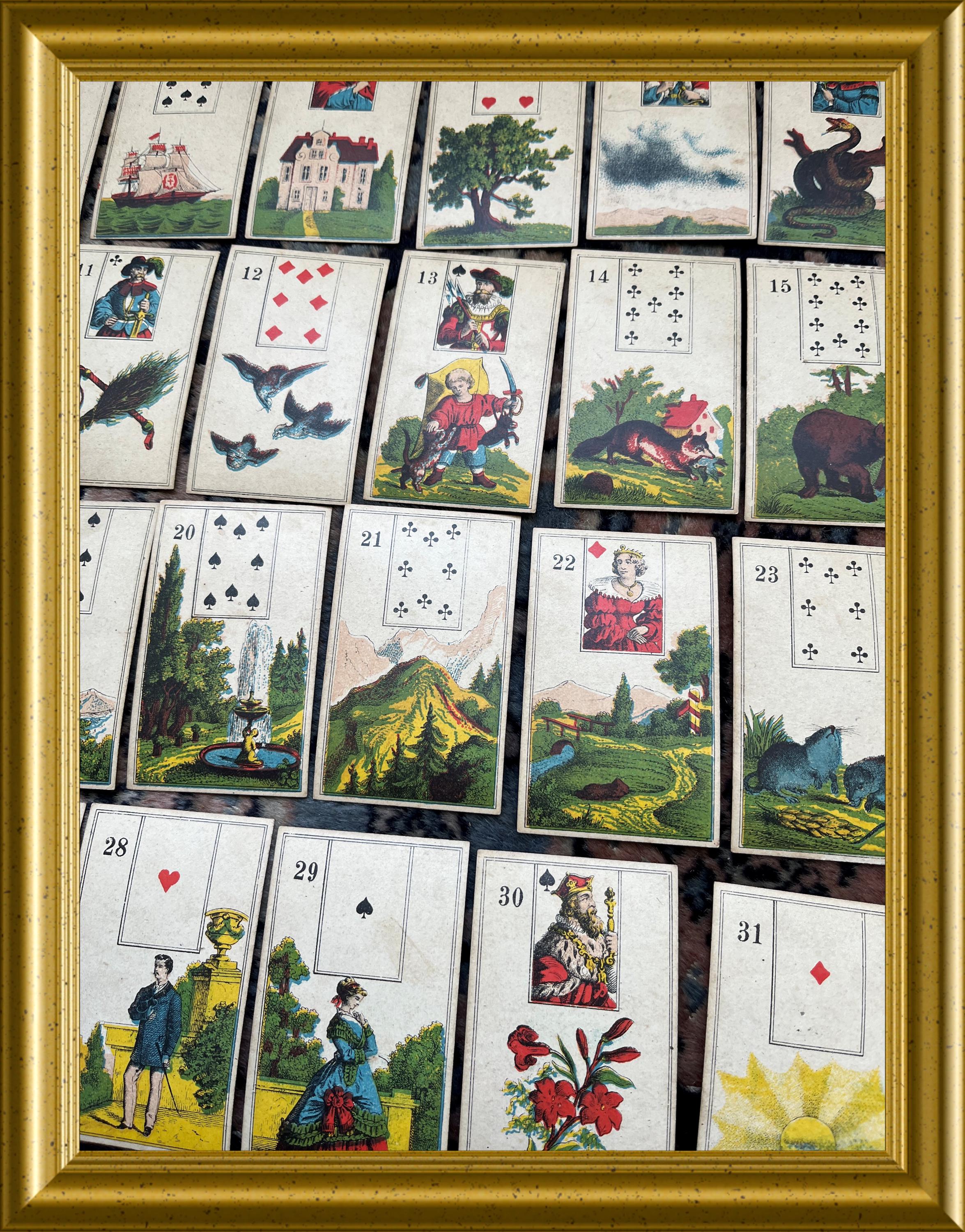 Beautiful antique Lenormand tarot cards, published by Verein Stralsunder.