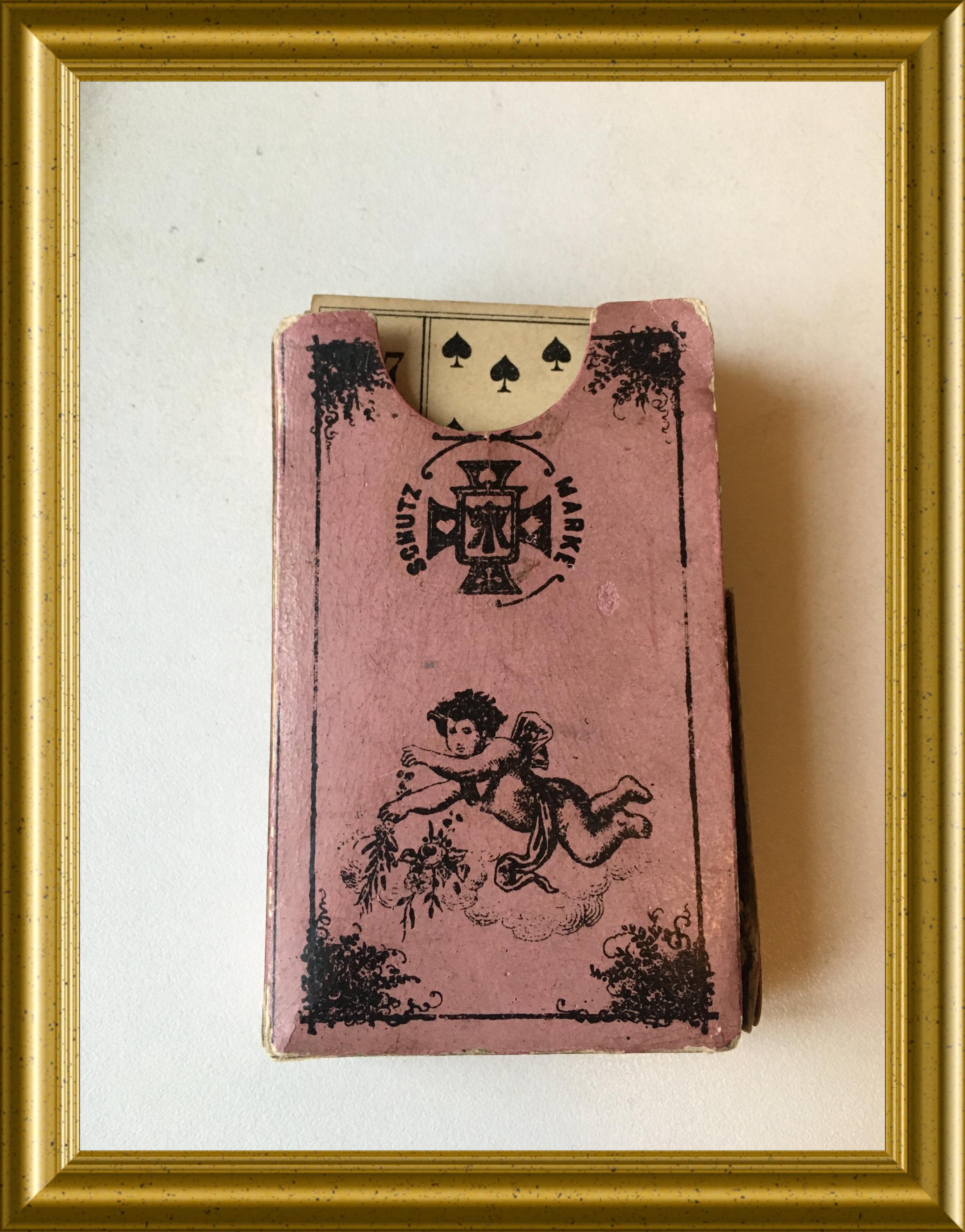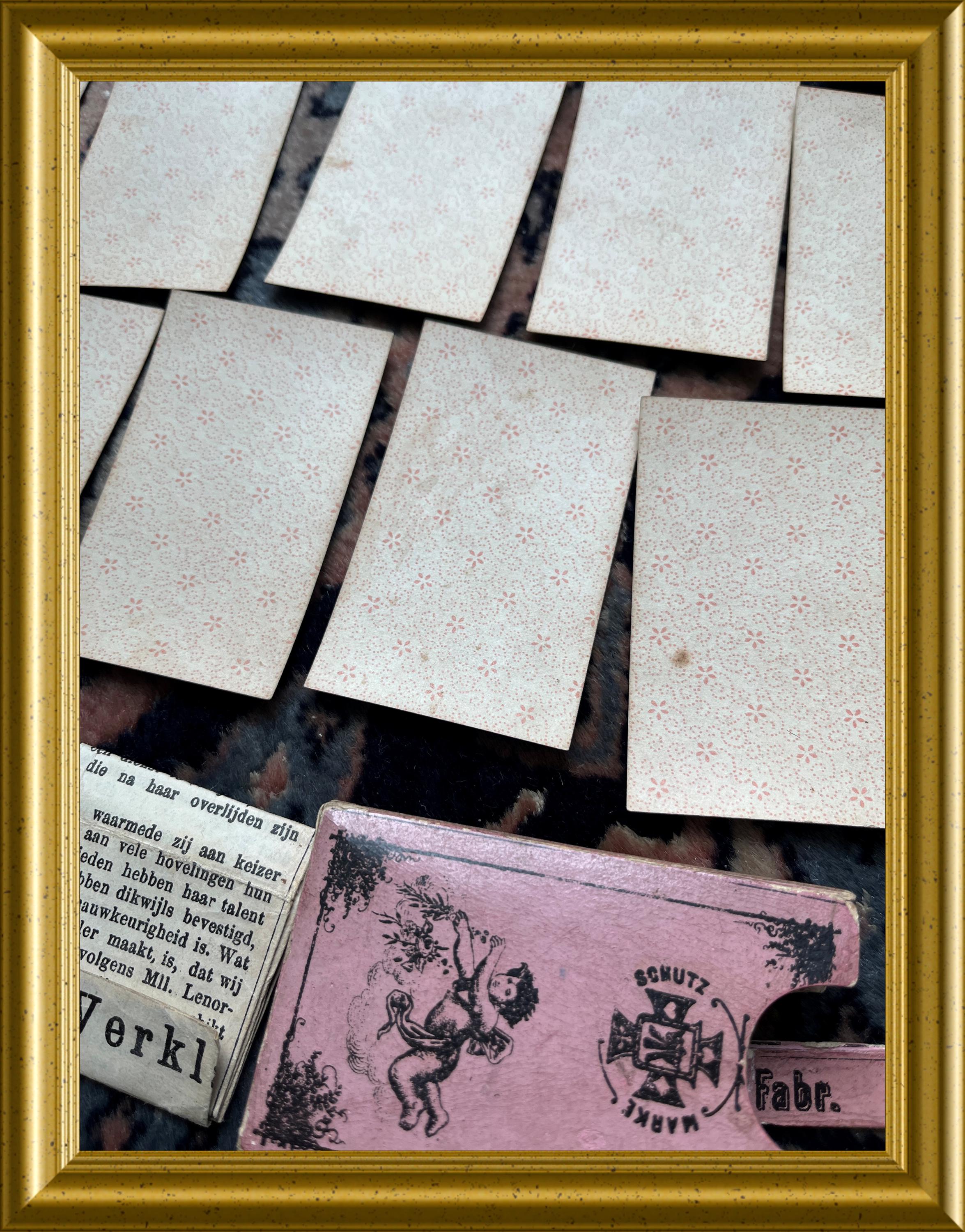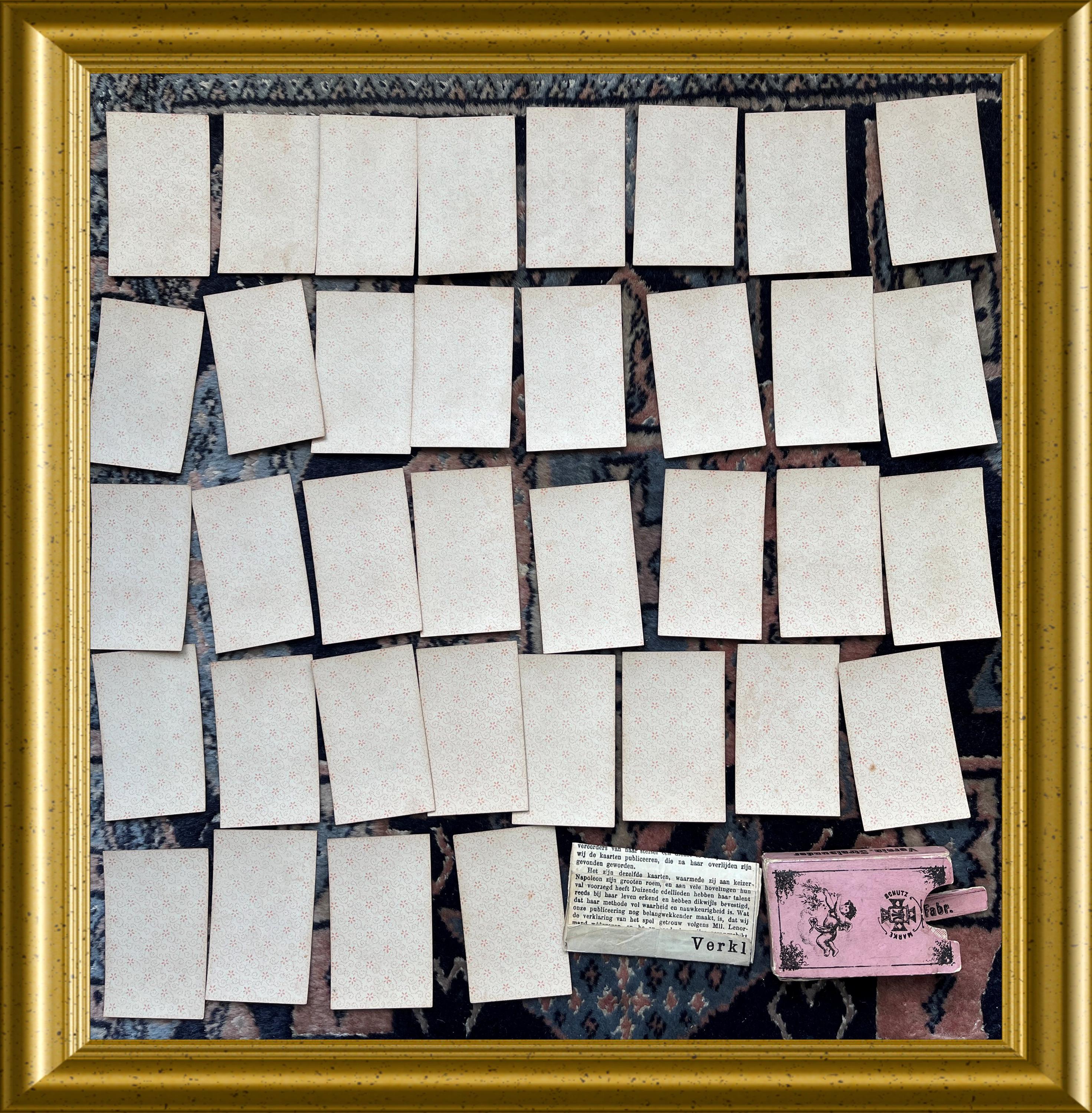 The original box shows damage (see photos), but the cards themselves are in good antique condition consistent with age.