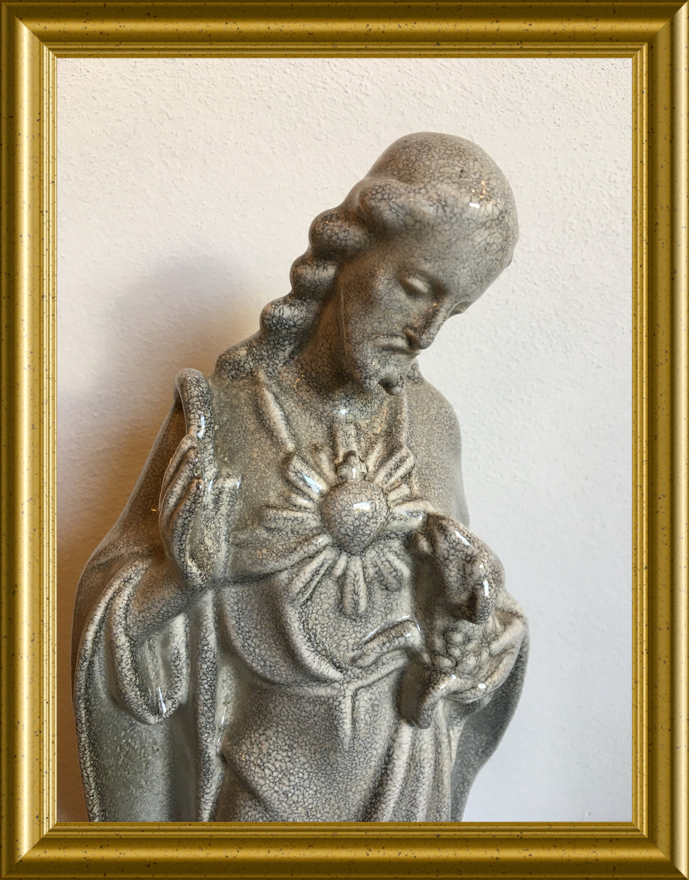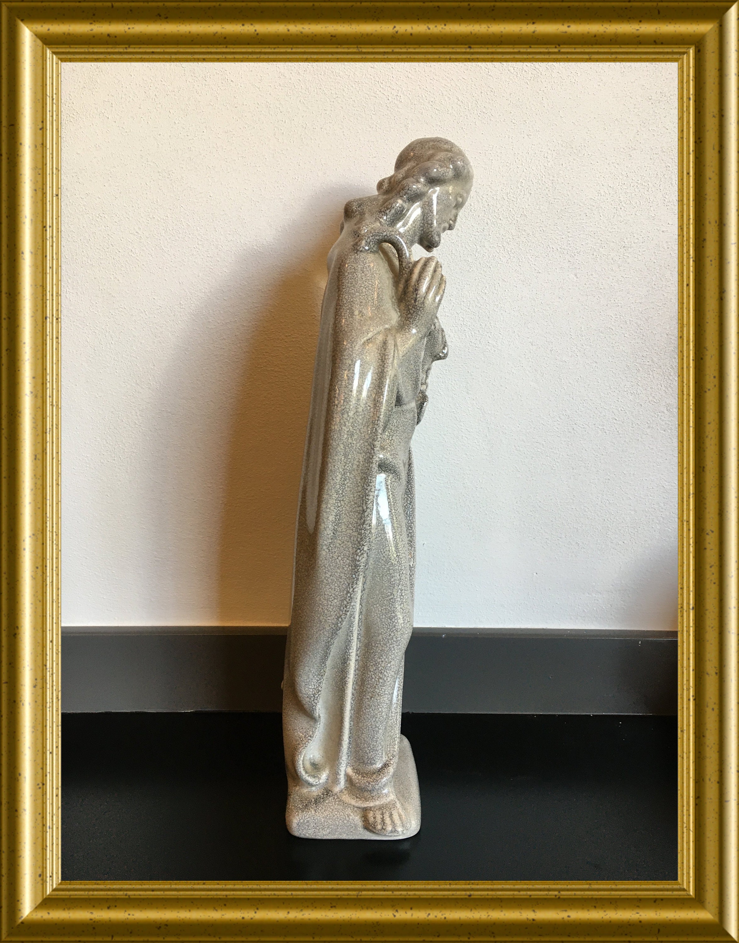 Vintage Jesus figurine: the good shepherd, art pottery Zuidholland Gouda.