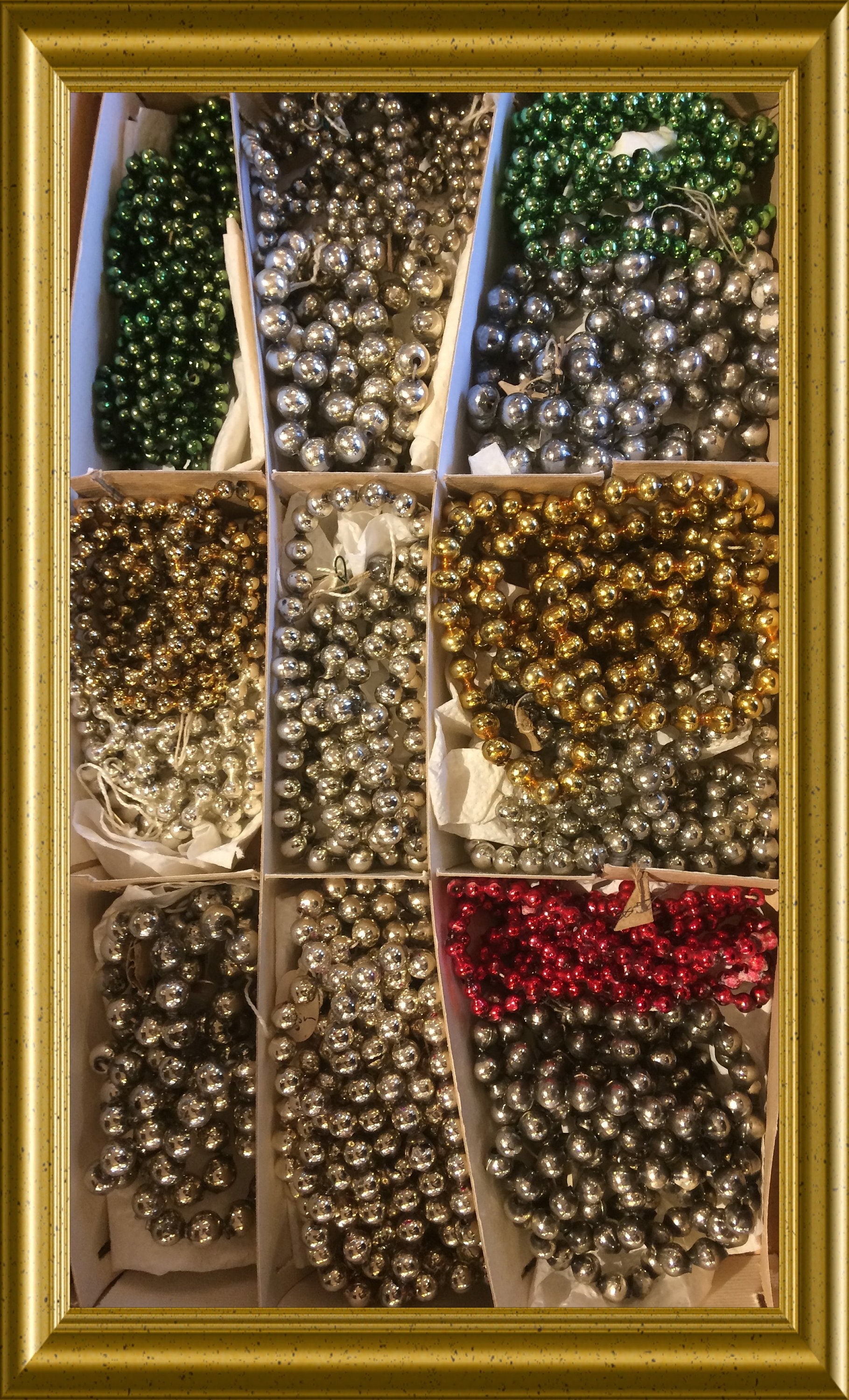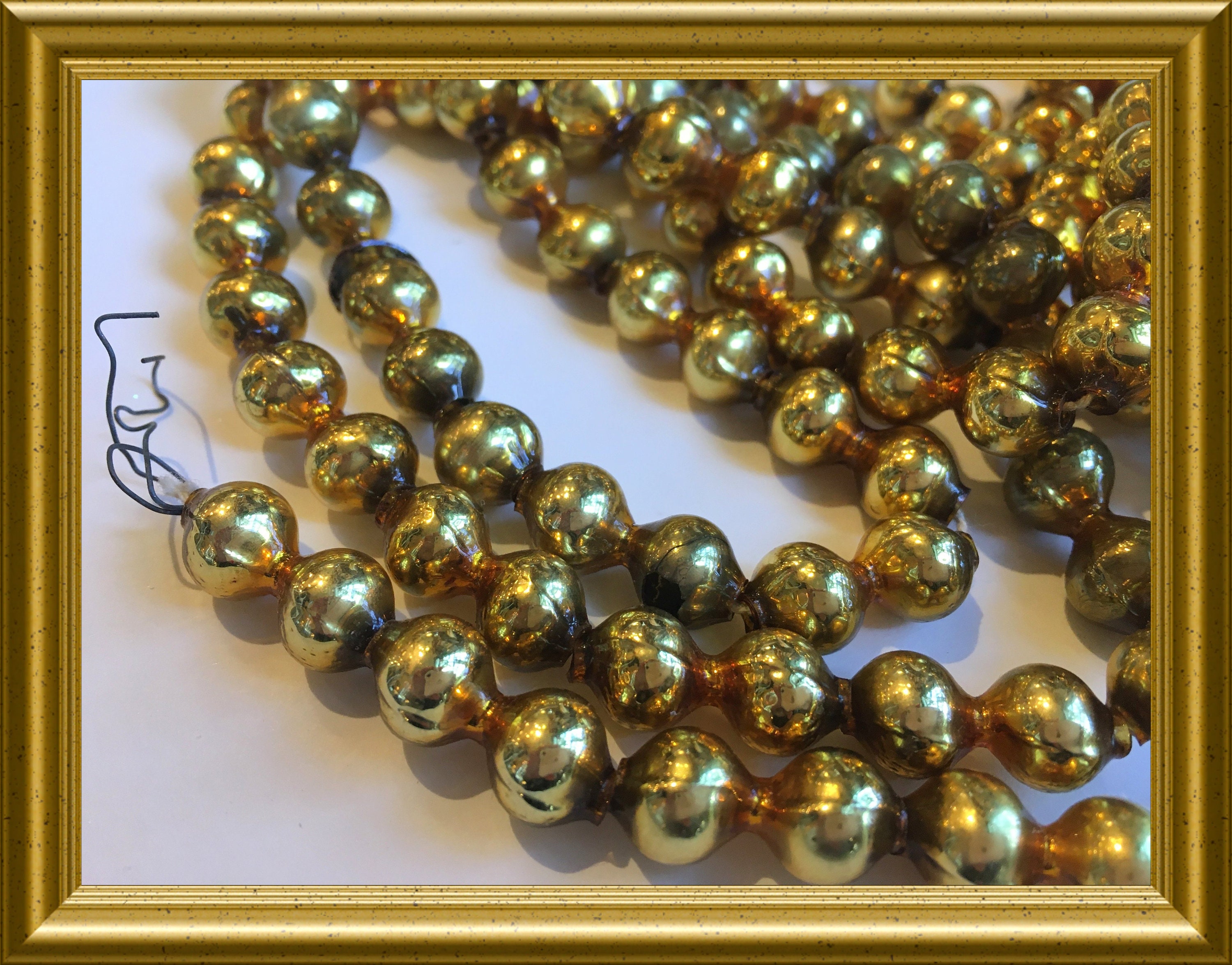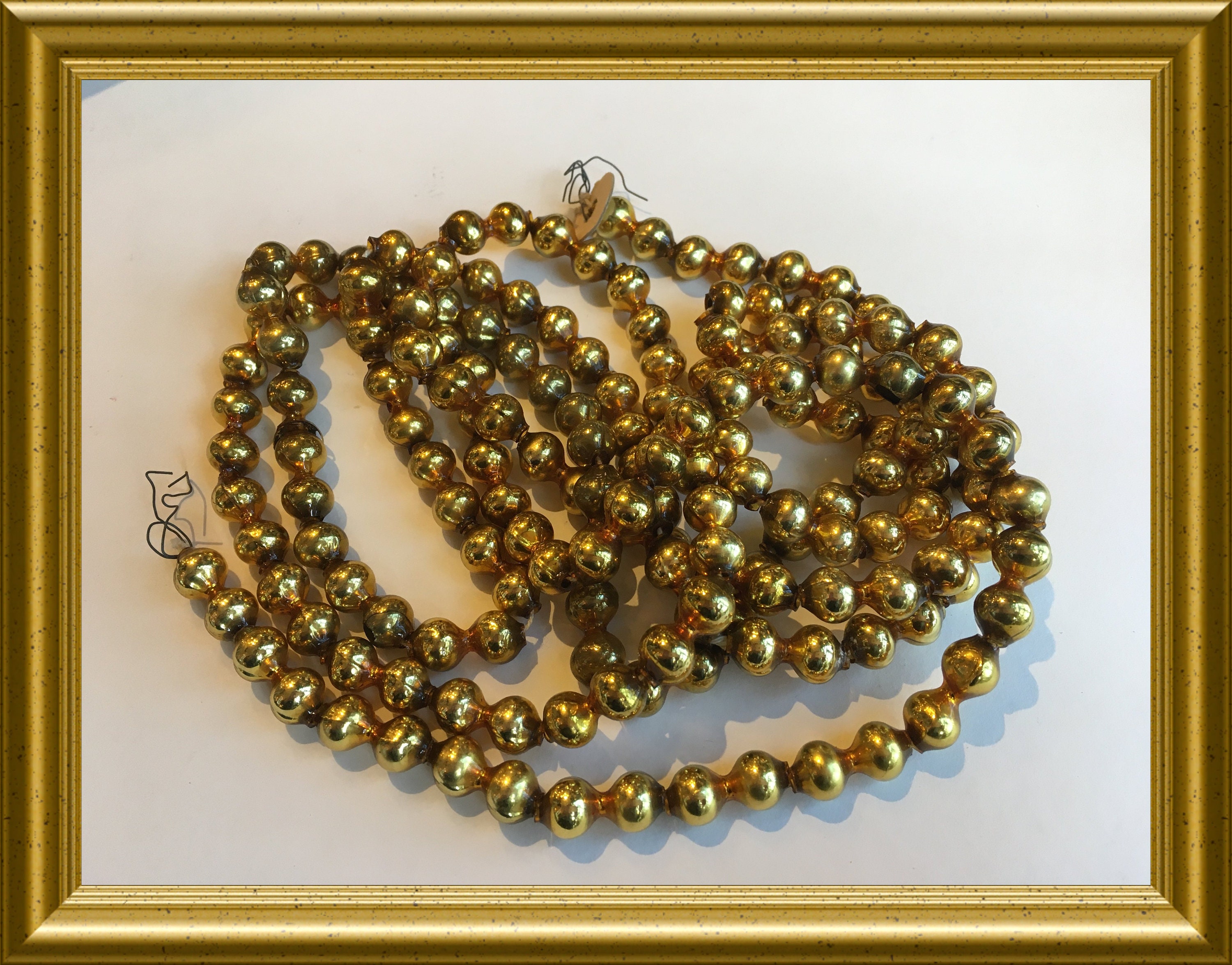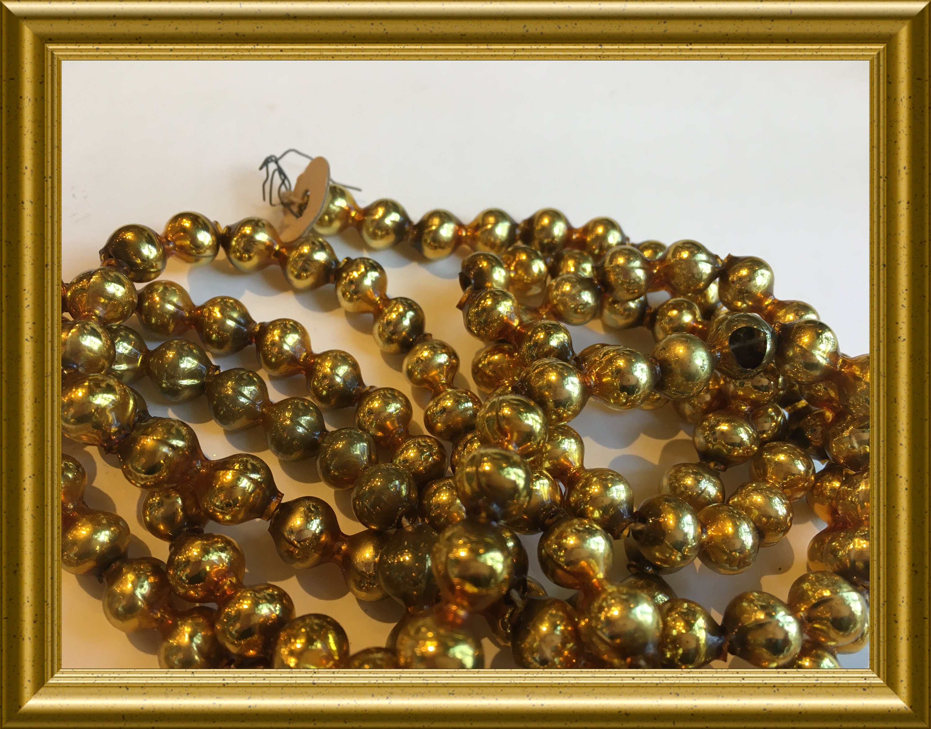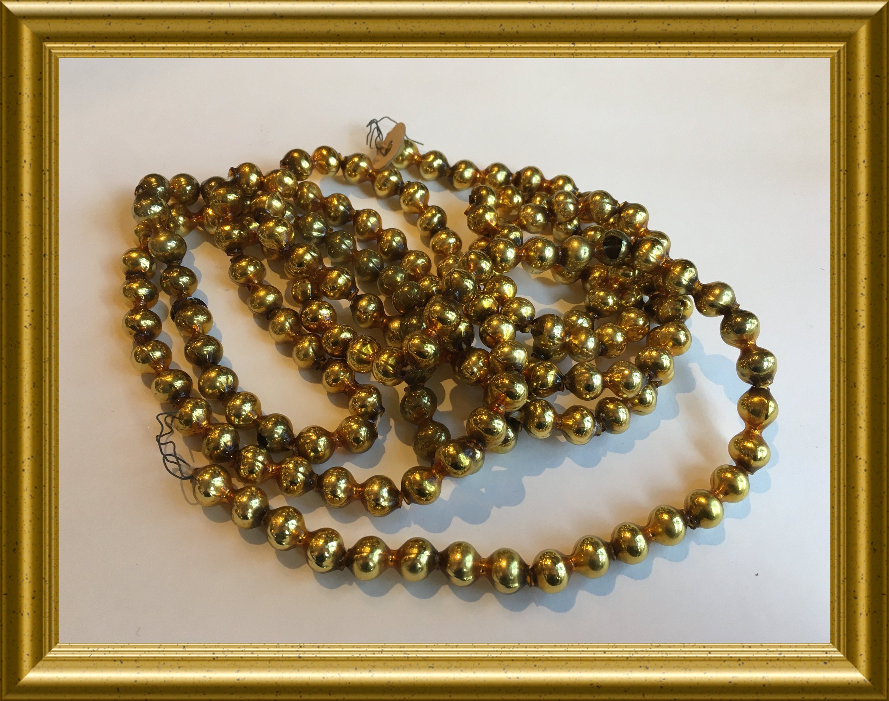 Antique golden beaded glass Christmas tree garland, 70 inch.